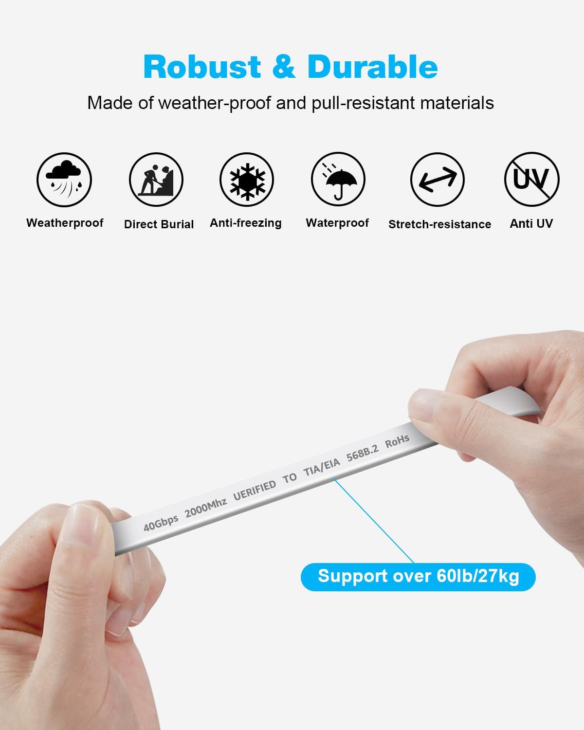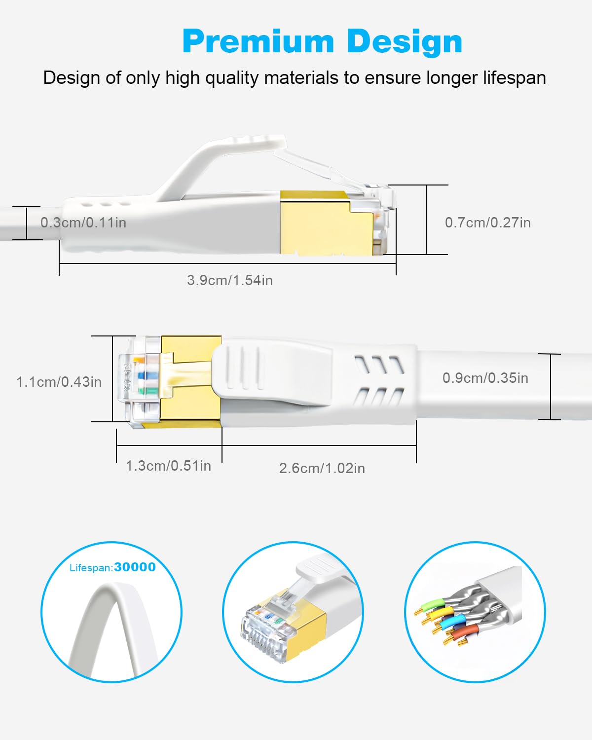 DDMALL CAT8 Ethernet Cable, 3 Meter High Speed 40Gbps 2000MHz Flat CAT 8 Patch Cord, Gigabit Internet Network LAN Cable with Gold Plated RJ45 Connector for Gaming, Modem, Router, PC (3 m White)