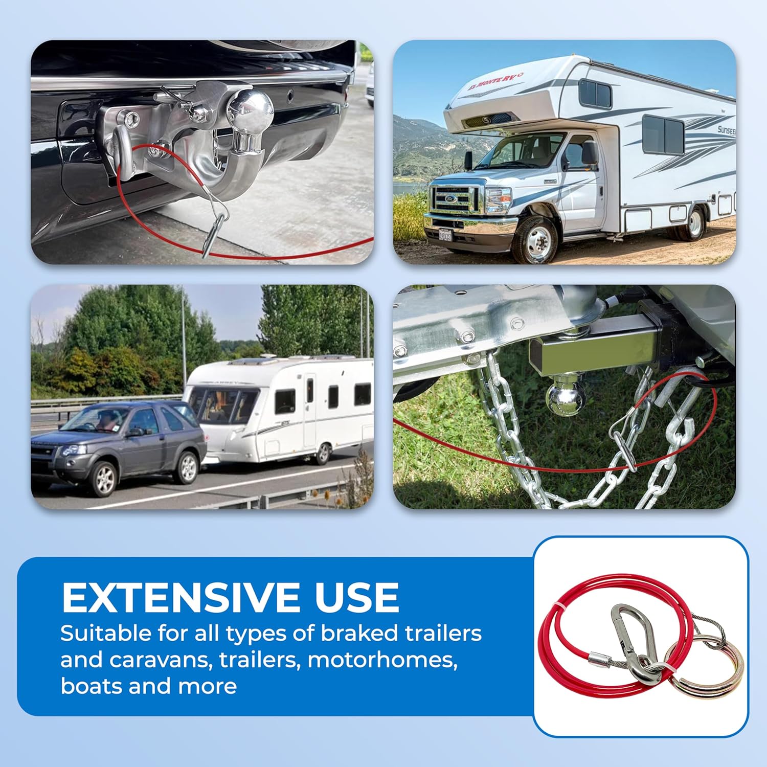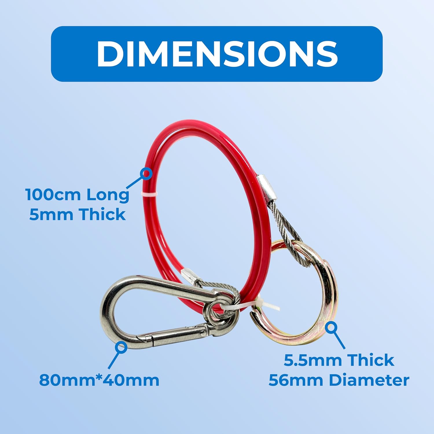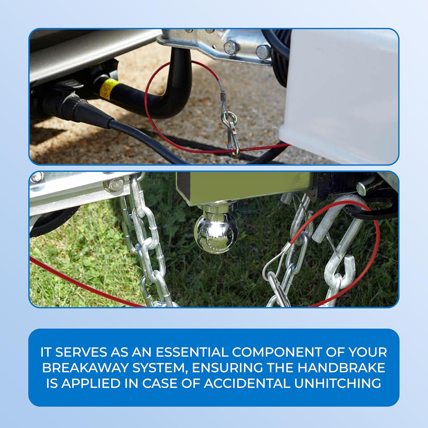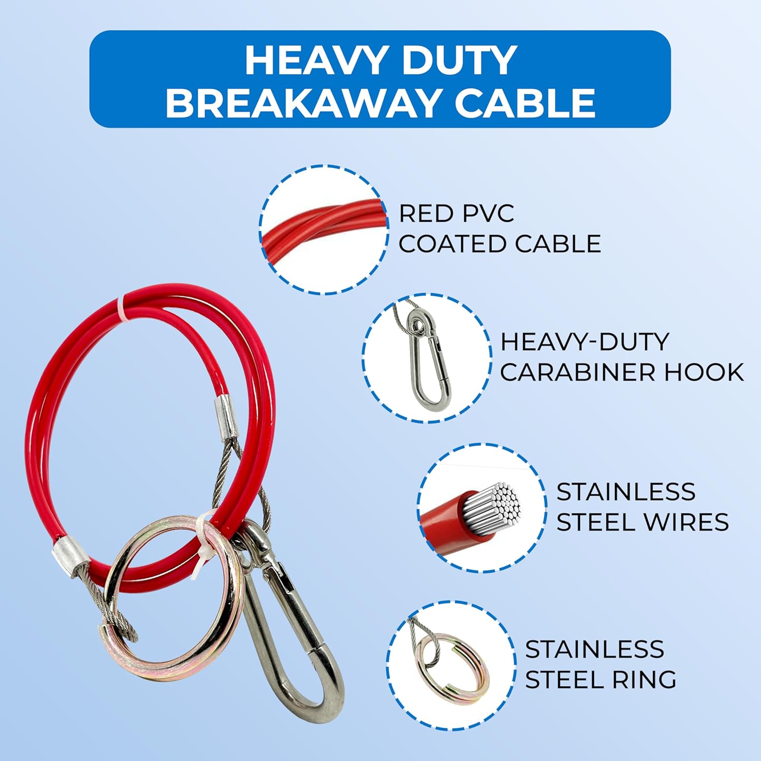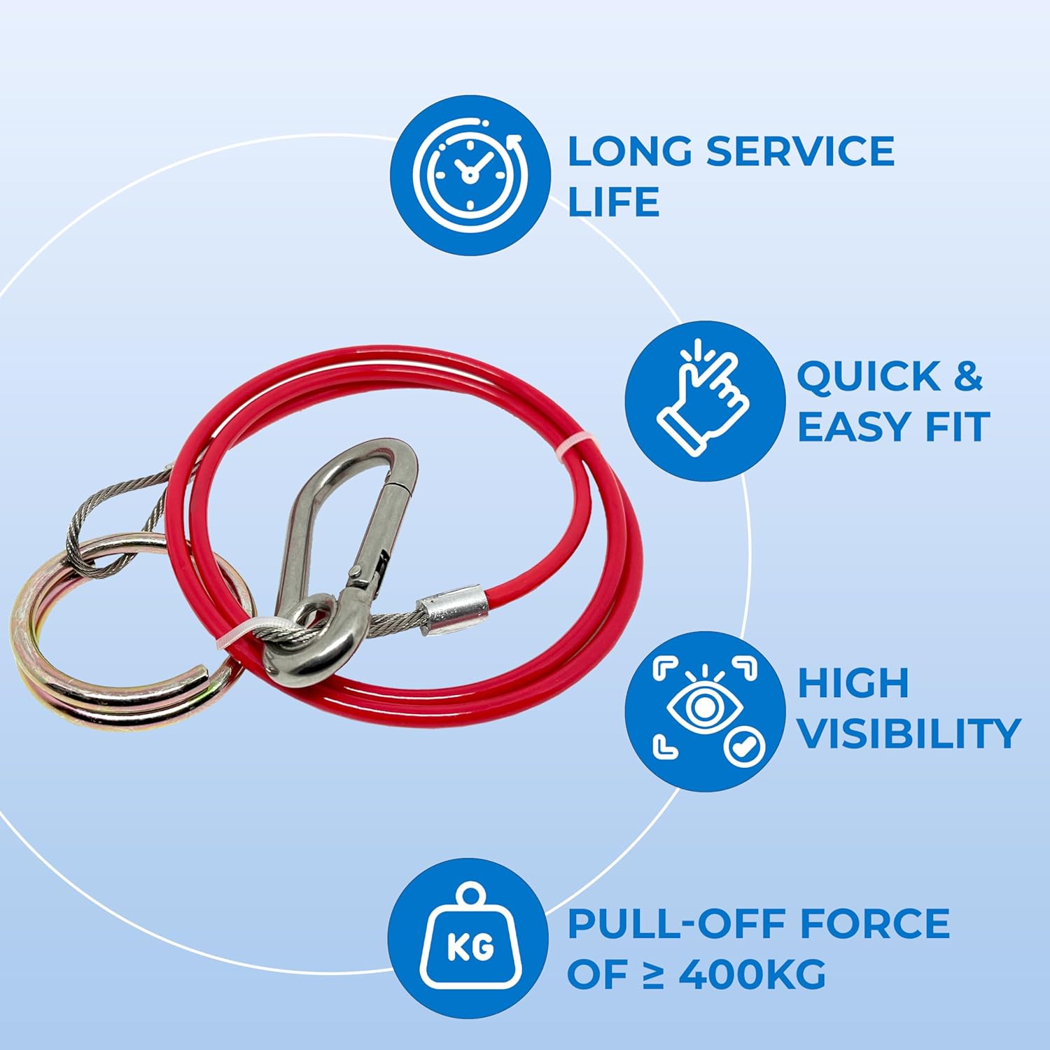 Double Dragon Heavy Duty Trailer Caravan Breakaway Break Away Cable, Durable, Williams Caravan Horsebox Boat Plant Coupling Safety Cable, Burst Ring, 1M Stainless Steel Cable, Pull-off Force ≥ 400kg