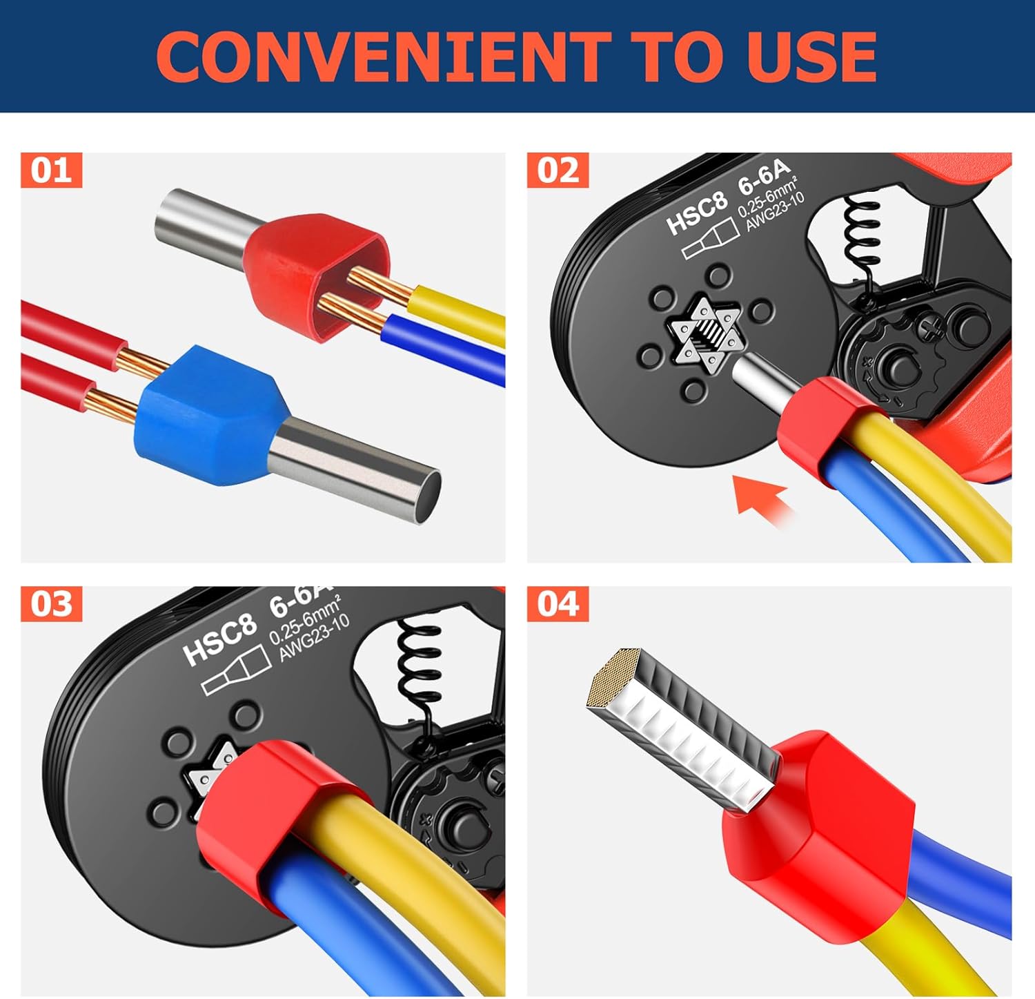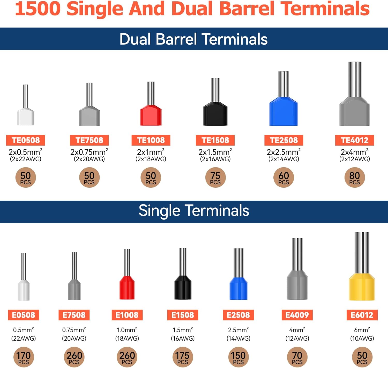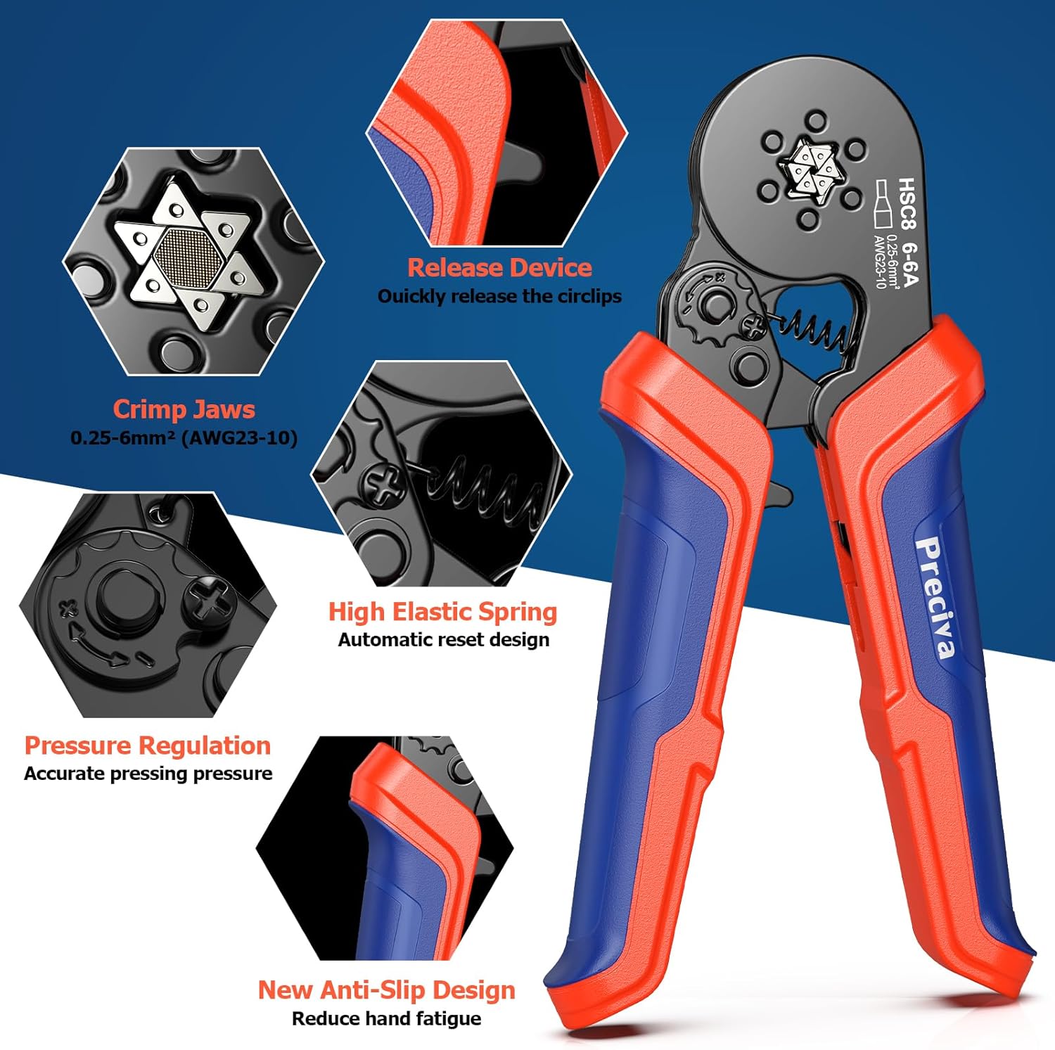 Dual Bootlace Ferrule Crimping Tool, 0.25-6mm² Hexagonal Crimping Tools, Preciva Self-Adjsutable Ratchet Crimping Tool, 1500pcs Terminals