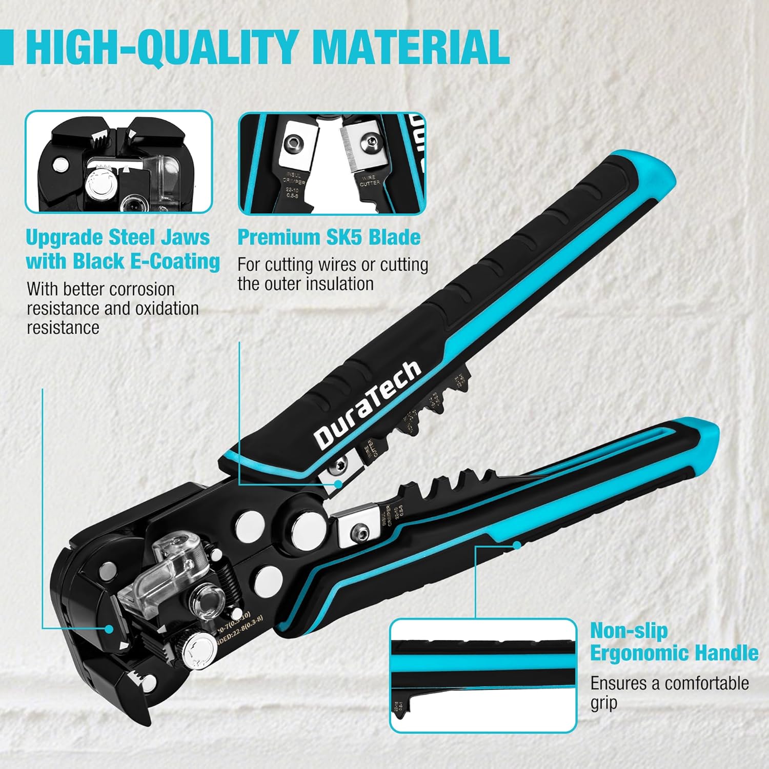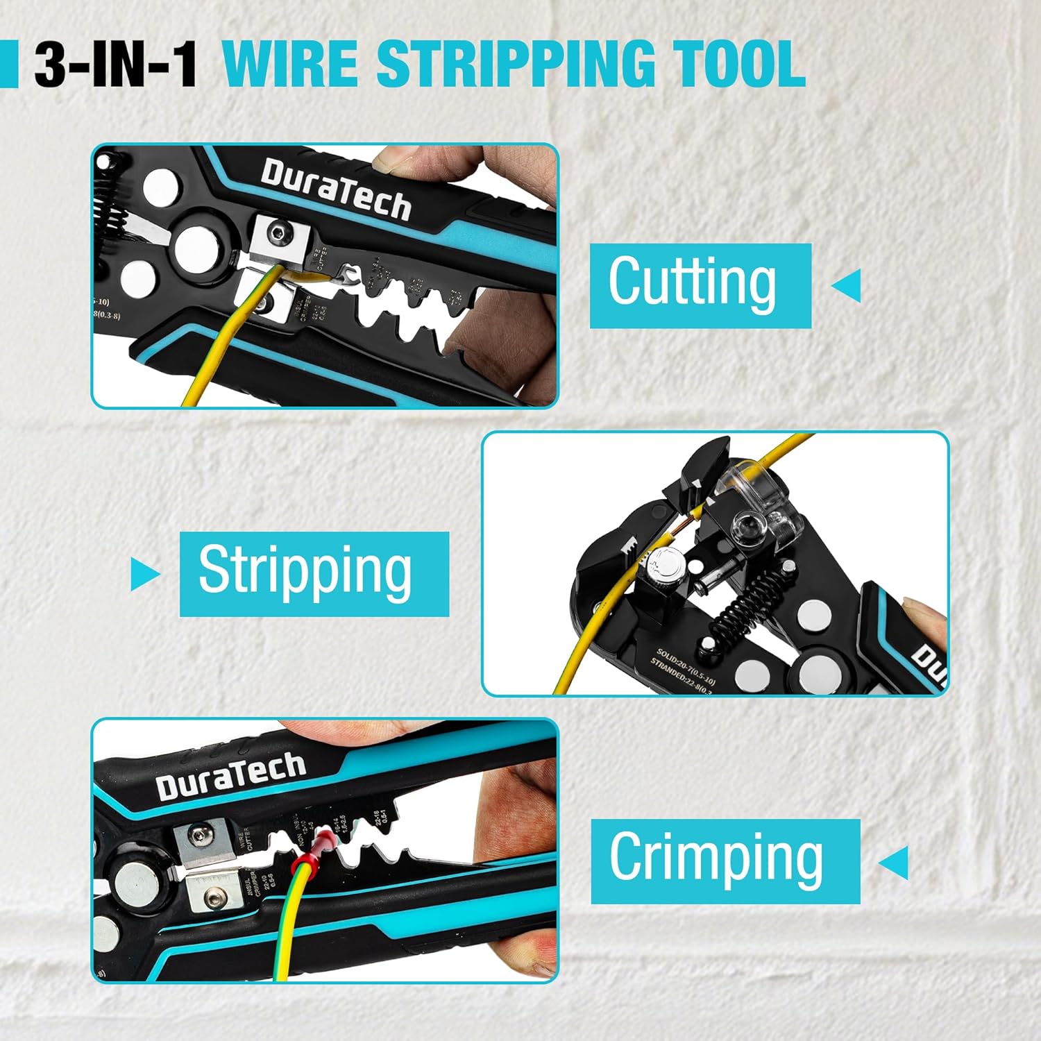 DURATECH Self-Adjusting Wire Stripper, 3-in-1 Automatic Wire Stripping, Cutting & Crimping Tool, for 0.5–10 mm² Solid Wire and 0.3–8 mm² Stranded Wire, for Electrical Work