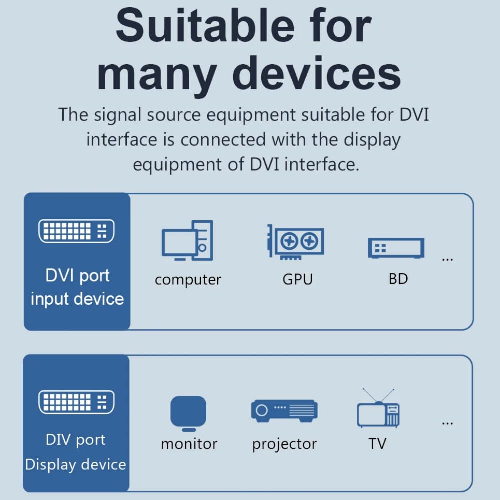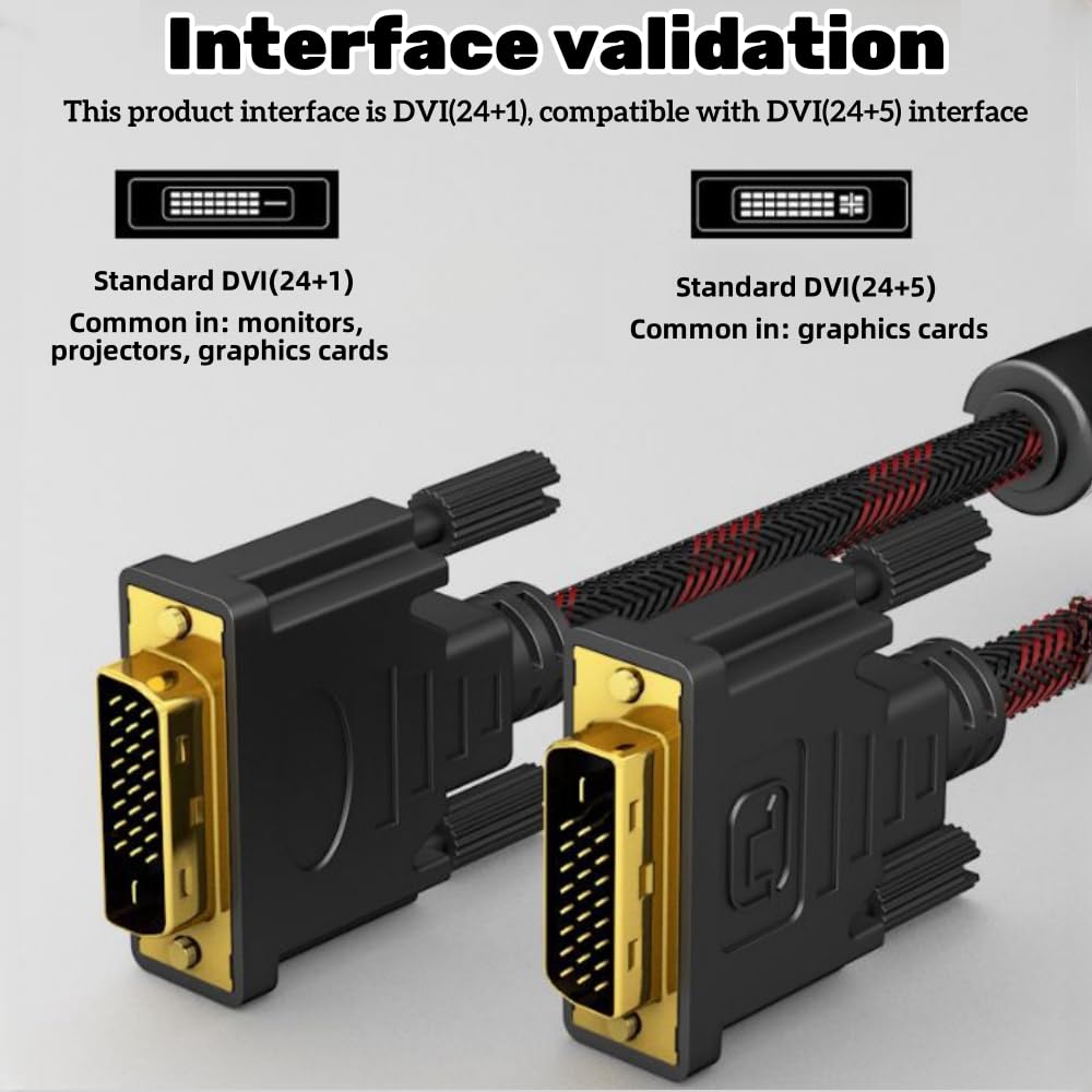 DVI to DVI Cable DVI-D 24+1 Gold Plated Cable Dual Link Support Video Cable Converter Supports Monitor PC TV Gaming Projector -1080p Full HD 60Hz(1.5m)