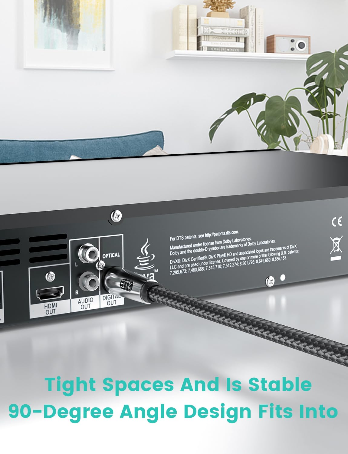 EMK 90 Degree Optical Cable 360 Degree Free-Rotating Fiber Optic Cable Toslink Male to Male Cable for Home Theater, Soundbar, Gaming Console, Speaker (90 Degree to Straight, 1.5FT/0.5M)