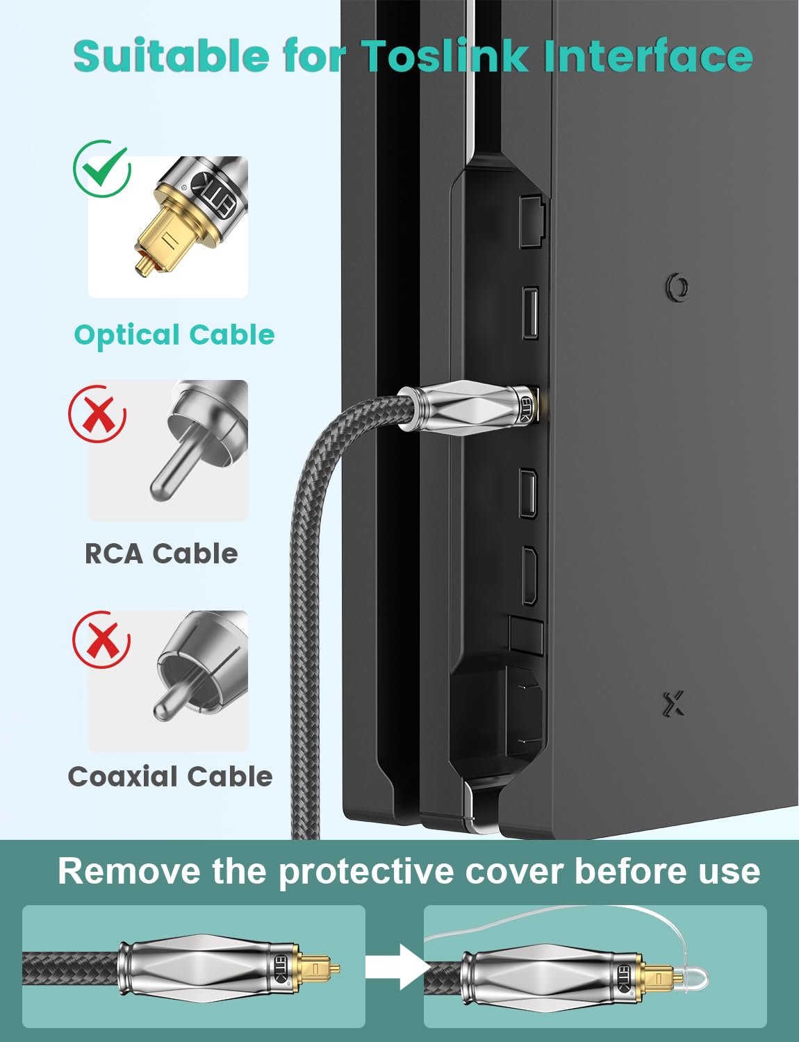 EMK Digital Optical Audio Cable (24K Gold Plated Connectors,Aluminum Alloy Shell,Braided Jacket) S/PDIF Toslink Optical Cable Fiber Optic Cable for Home Theater,Soundbars,Gaming Consoles (1.5 metres)