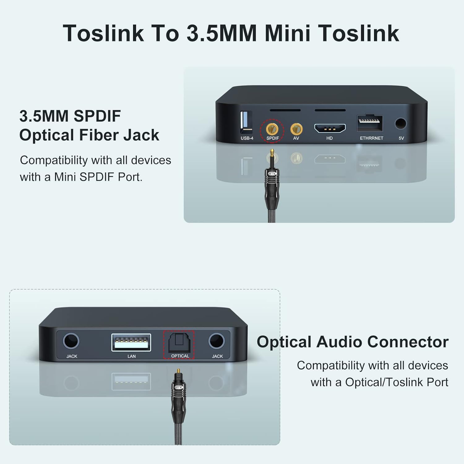 ![EMK Digital Sound Toslink to Mini Toslink Cable 3.5 SPDIF Optical Cable [Not a 3.5mm Aux] Optical Audio Cable (Straight Black, 1M) - Image 3](https://cdn-ilejibi.nitrocdn.com/aLMkxGeezOyADDSKKbCOLsAsREKZjSPM/assets/images/optimized/rev-223319f/cables.co.uk/wp-content/uploads/2026/02/71fjcUtz%205L._SL1500_.jpg)