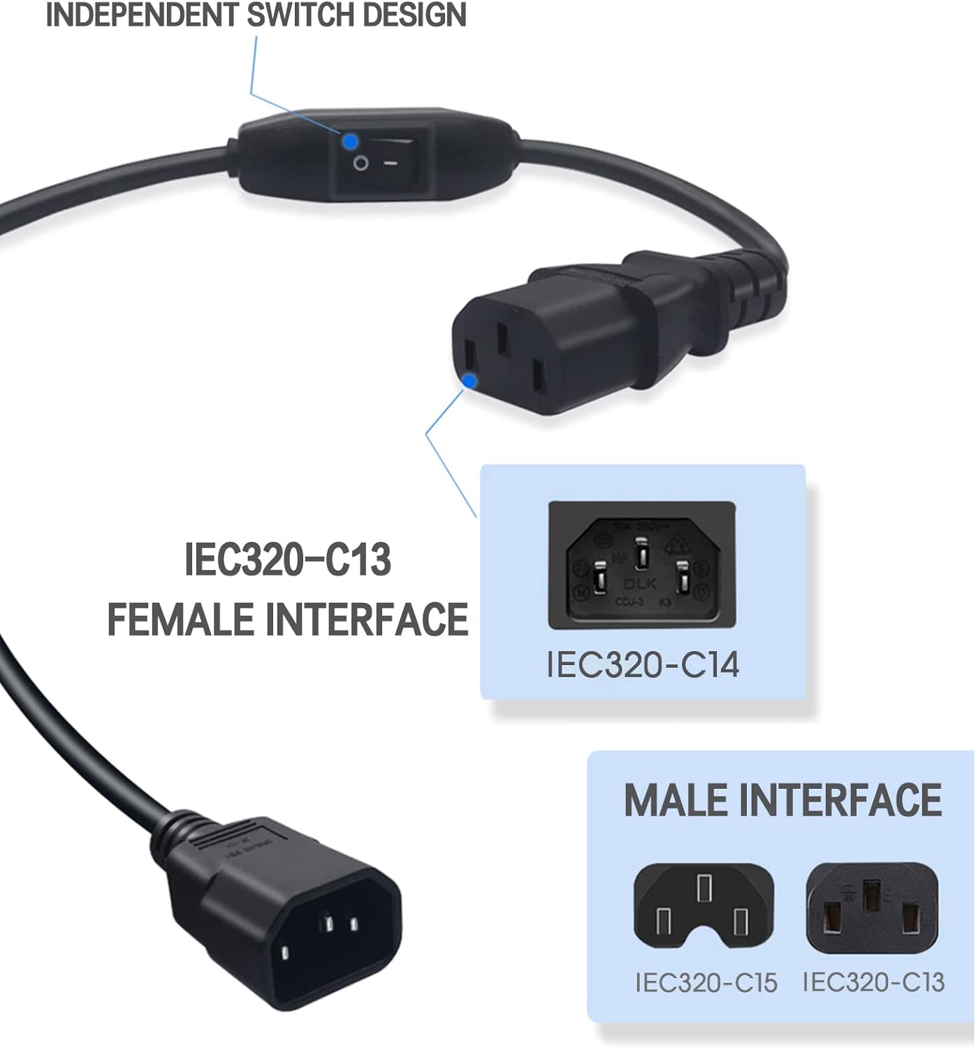 Eonvic PDU UPS Power Cord Cable, IEC 320 C14 to C13 with On/Off Switch 30cm