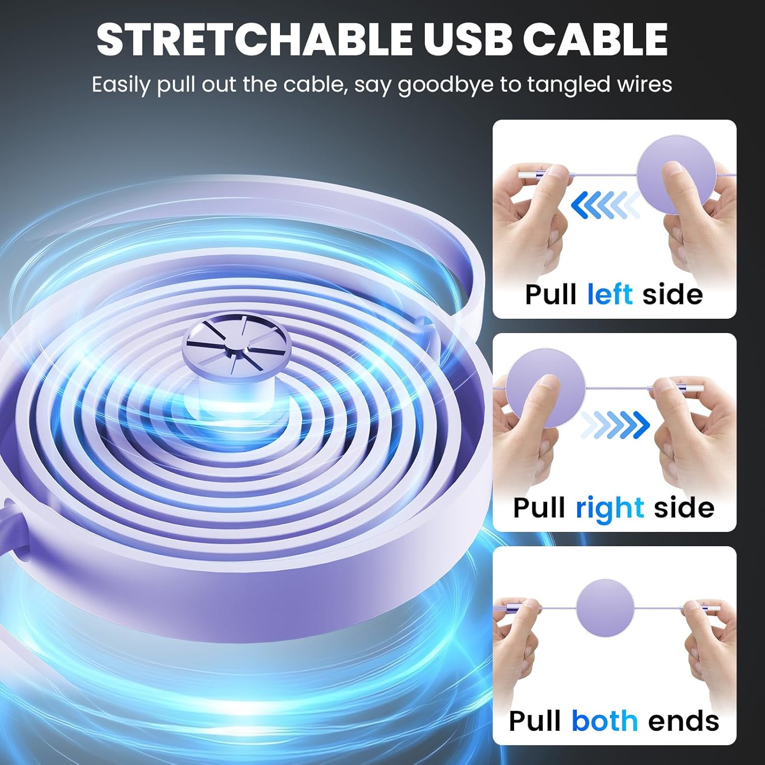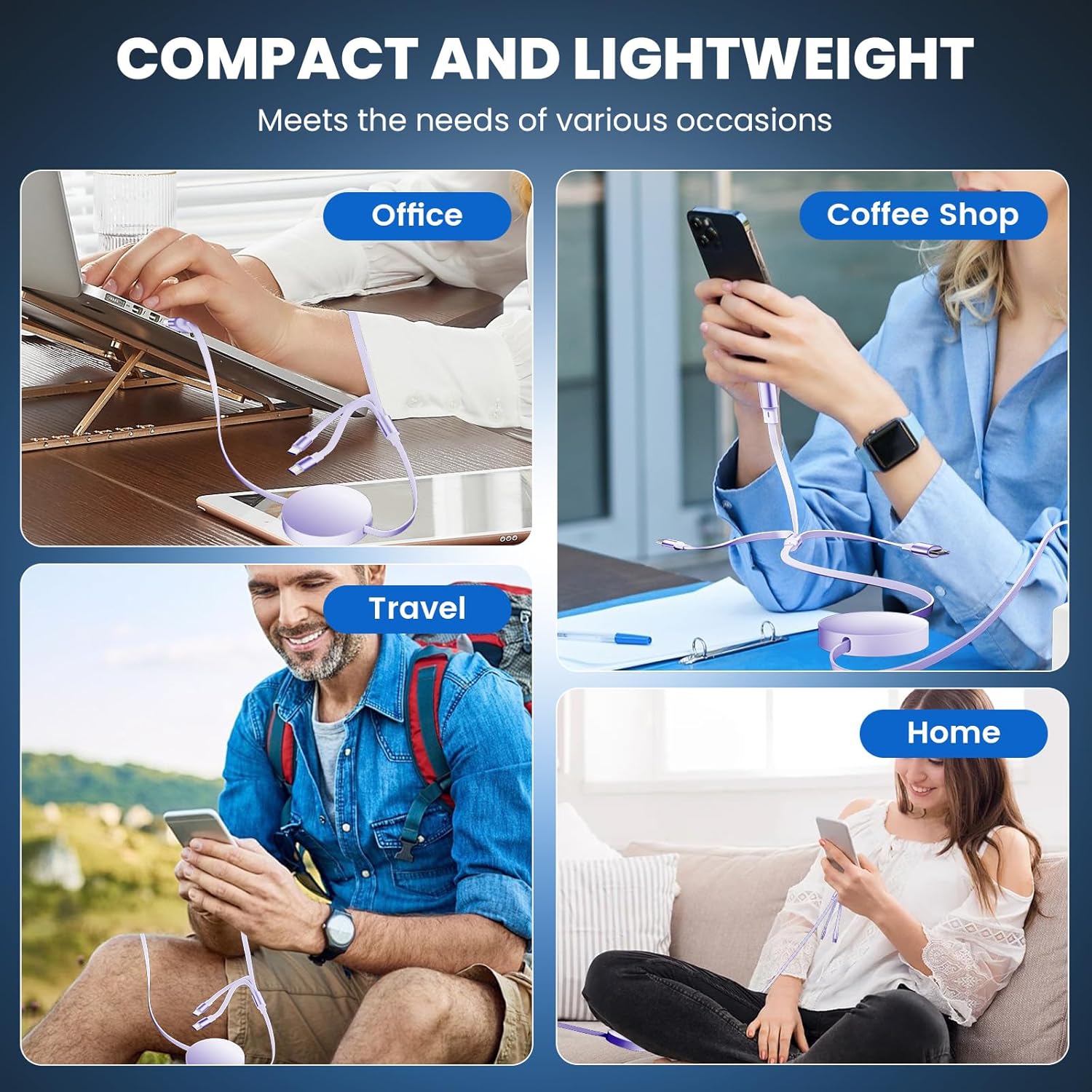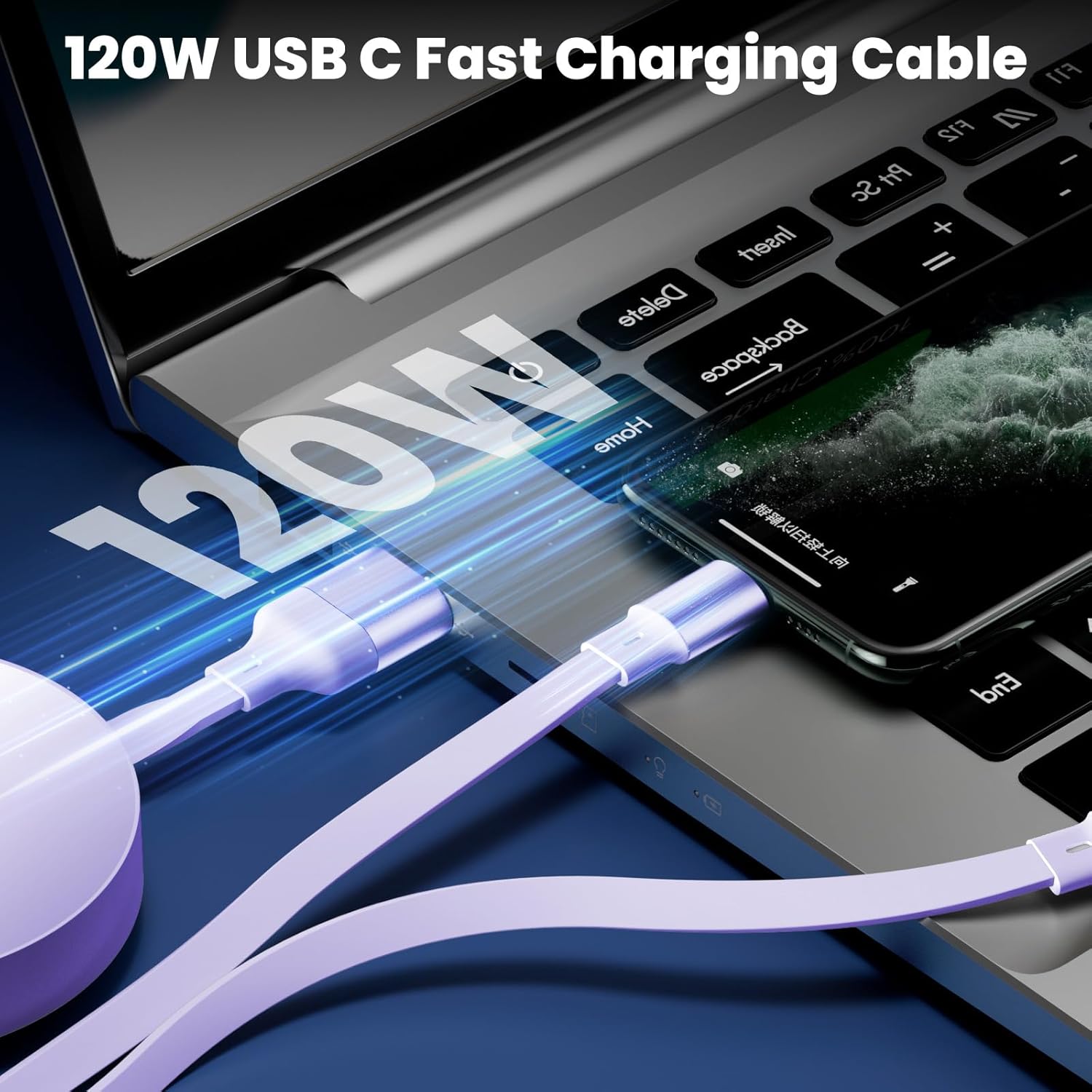 Fast USB Multi Charger Cable, 120W 3 in 1 Multi Charging Cable with USB A/C, Charging Cable for Multiple Devices, Retractable Charger Cable Compatible for Phone, Pad, Laptop, Galaxy (Purple)