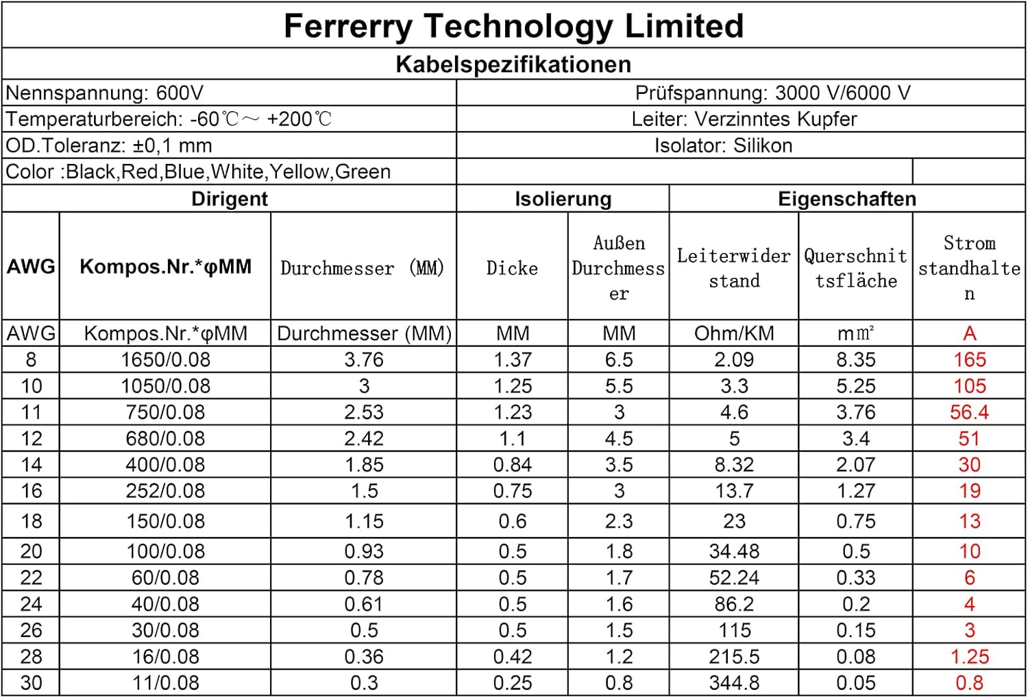 Fermerry 20 AWG Electrical Wire 0.5mm² Flexible Silicone Tinned Copper Wire Hook up Kit Stranded Wire Spool 10ft 3 Meter Each 6 Colors Gauge