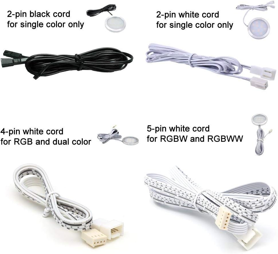 Flexible Extendable cables for AIBOO RF Wireless Control LED Under Cabinet Lighting Kit Black Cords 1.5m (60 inch) Extension Cords (4 Packs)