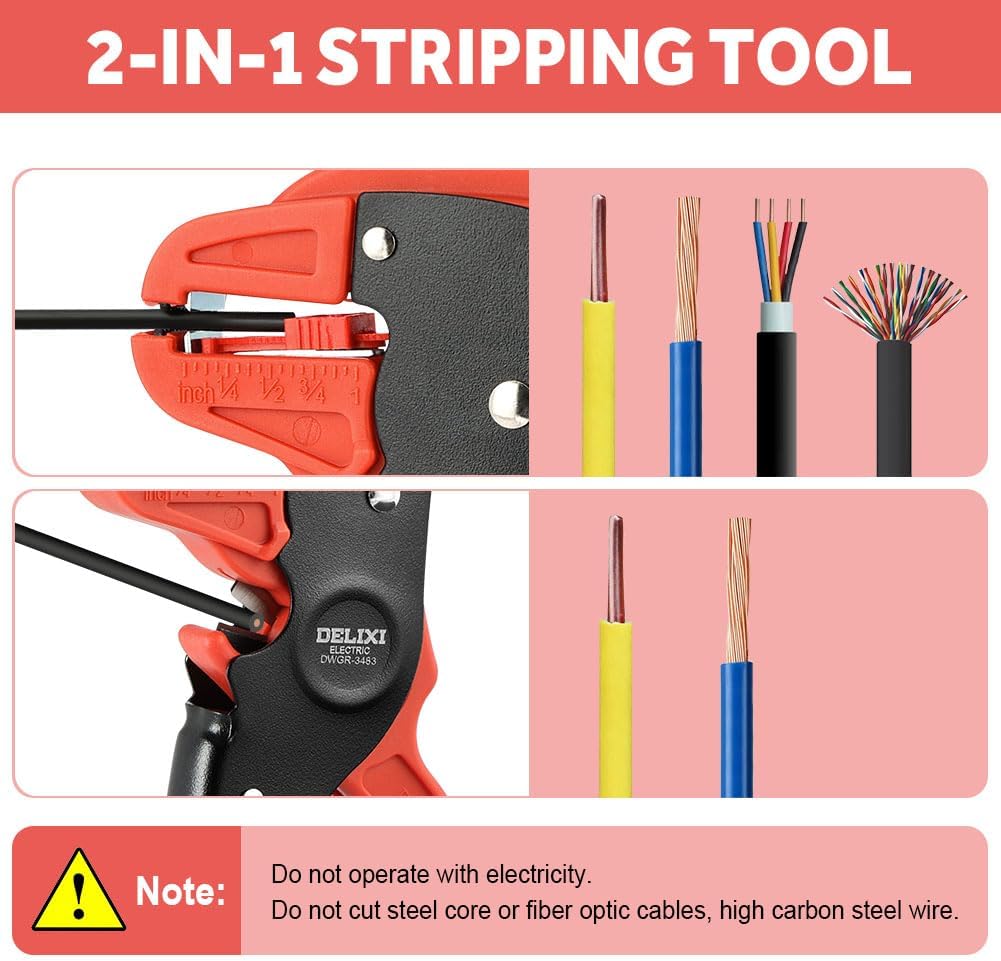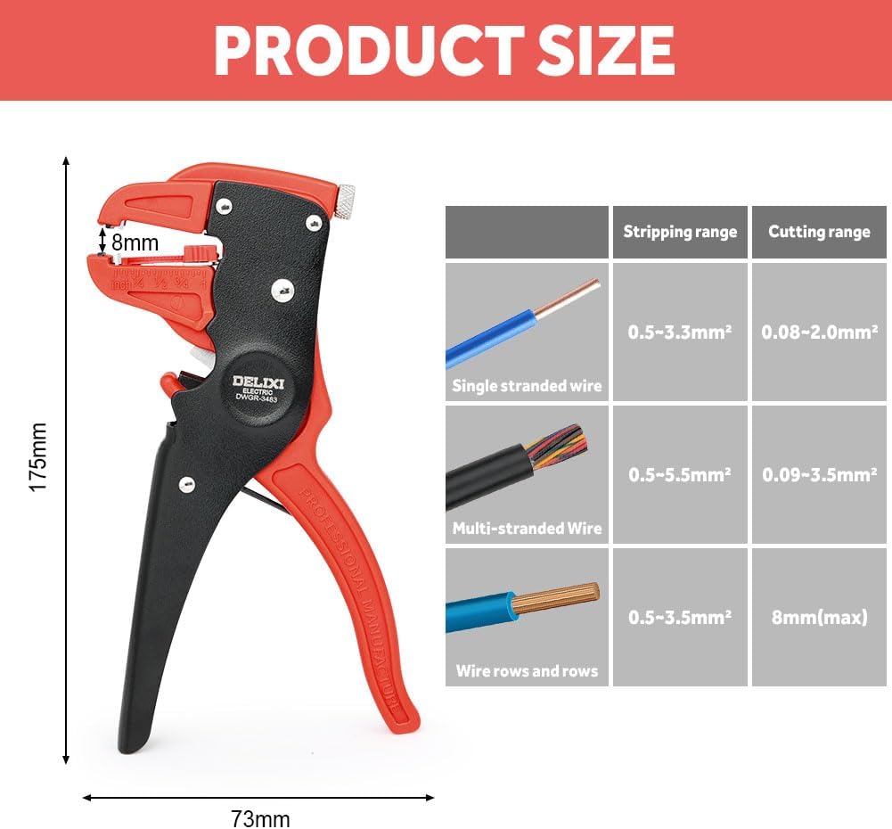 Flintronic Automatic Wire Stripper and Cutter, 7 Inch Cable Stripping Tool, Adjustable Wire Cutter with Eagle Nos (for 14-24 AWG Cables), for Industrial and Home Automotive Electrical Repair
