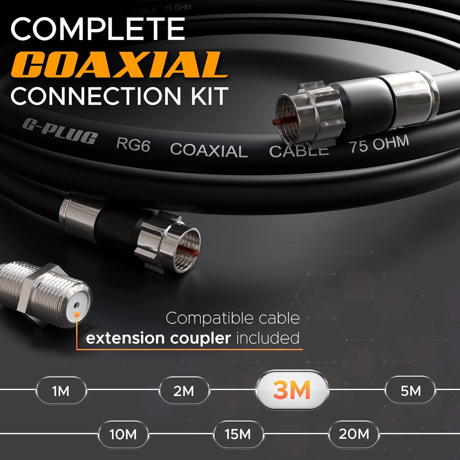 G-PLUG RG6 Coaxial TV Aerial Cable 3m with F-Type Connectors, 75 Ohm – for Freeview, Sky, Virgin Media, Satellite & Broadband (Black)