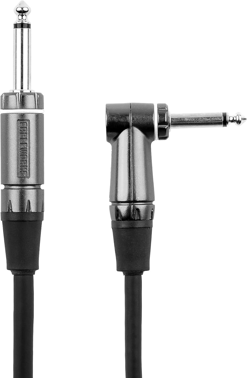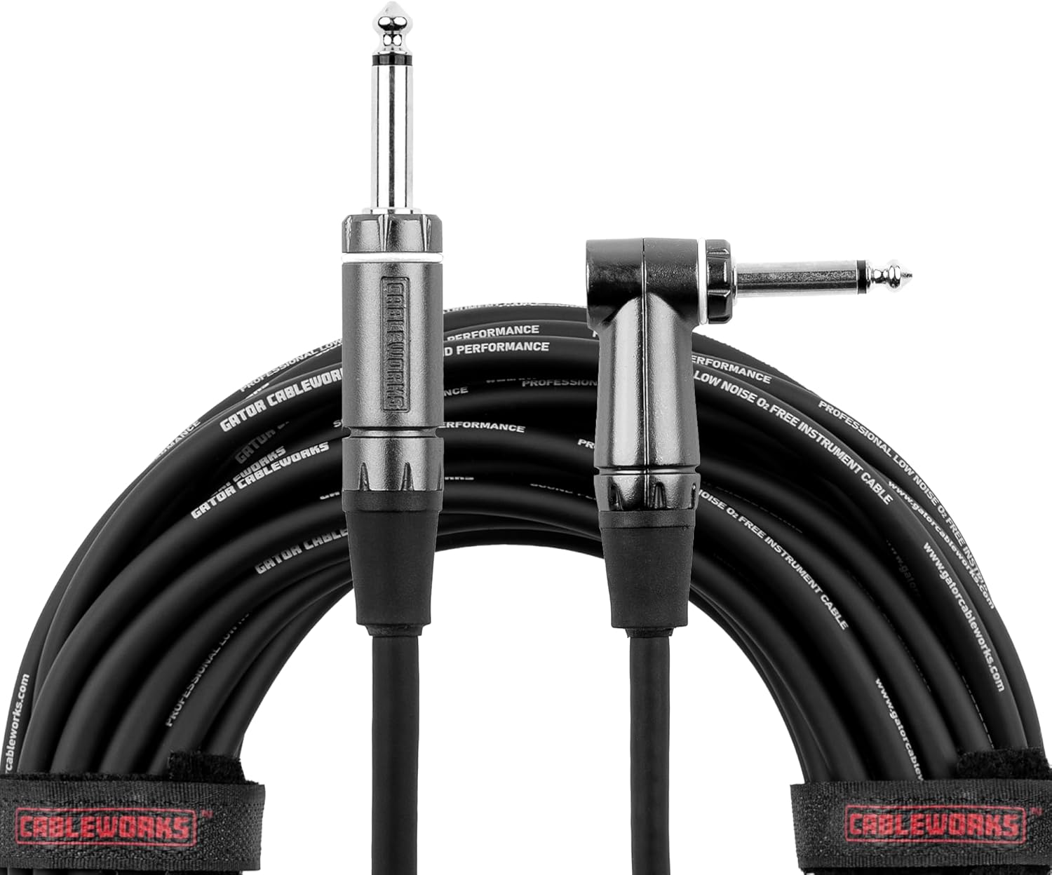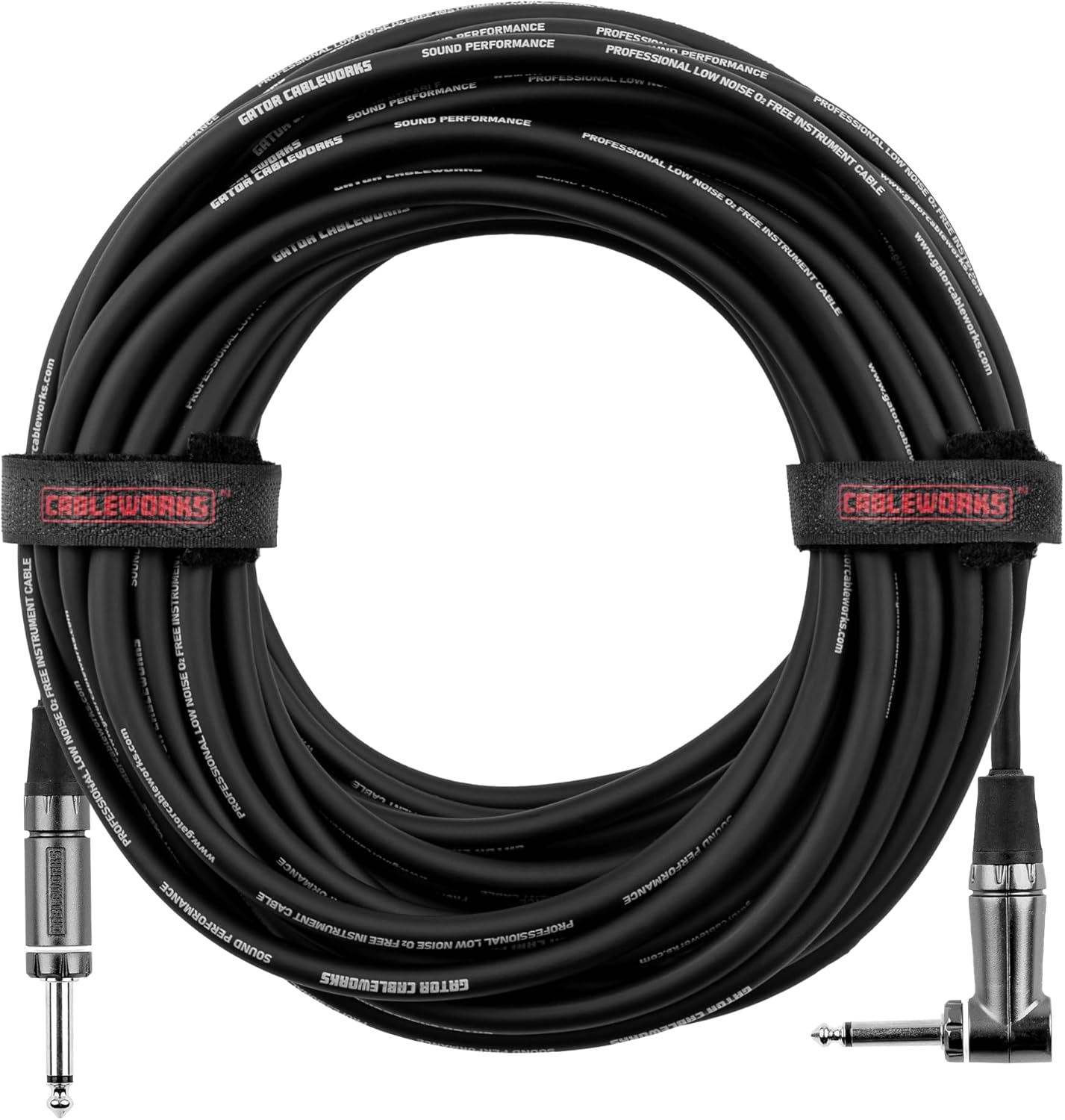 Gator Cableworks GCWC-INS-30RA 30ft Straight-to-Right-Angle Instrument Cable, Low Capacitance, OFC Conductor, Spiral Shielding for Studio & Stage Use