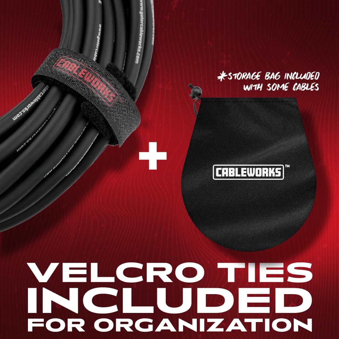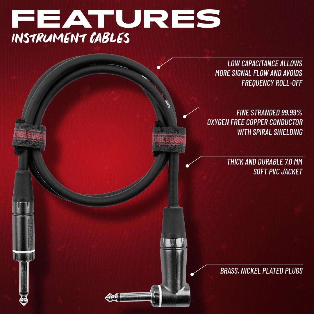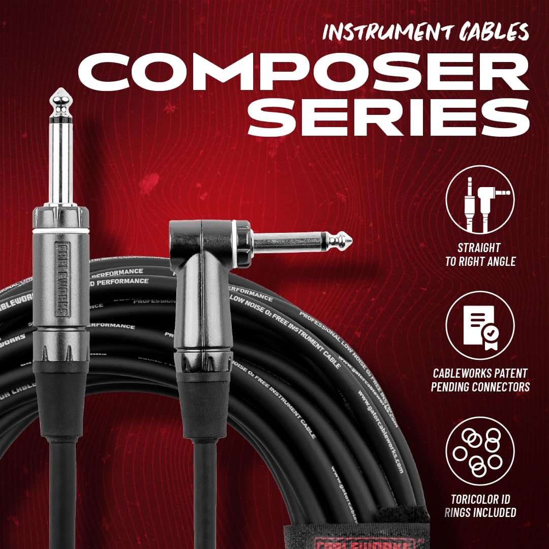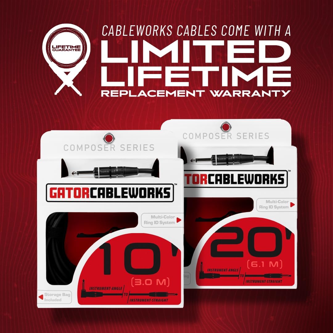 Gator Cableworks GCWC-INS-30RA 30ft Straight-to-Right-Angle Instrument Cable, Low Capacitance, OFC Conductor, Spiral Shielding for Studio & Stage Use