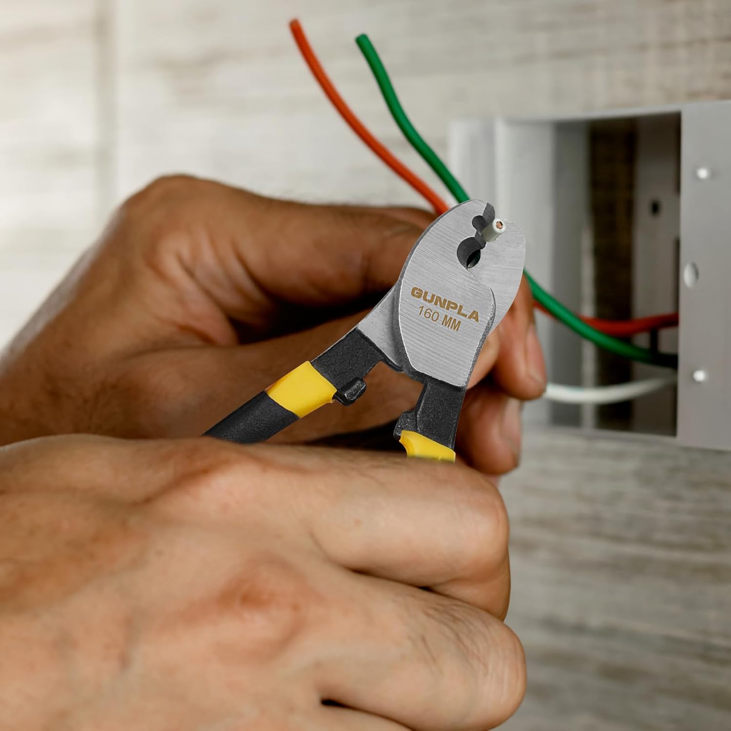 Gunpla 150mm Wire Cutter Heavy Duty Electronics Grip Coaxial Cable Cutter Electricians Wires Cables Cutting Plier with Cable Gripping Jaws for Aluminum Copper Communications Cable 6 inch