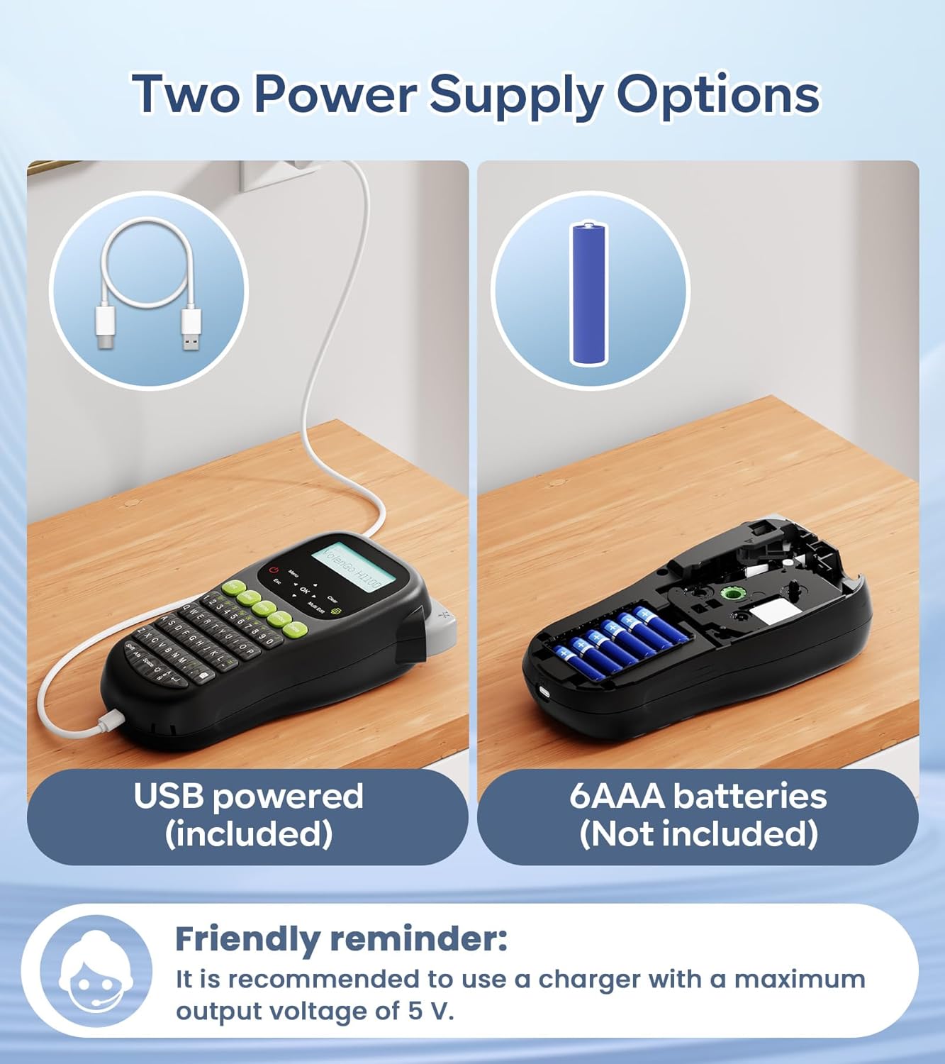 H1100 Label Maker, Handheld Backlit Label Maker Machine, with Waterproof White Tape(12mm), Replacement for Brother Label Printer, QWERTY Keyboard & 3 Cable Modes, For Home & Office