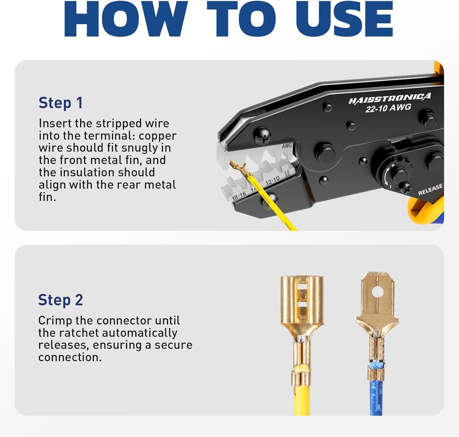 haisstronica Crimping Tool for Non-Insulated Open Barrel Terminals Receptacles 0,5-6m㎡(AWG 22–10) Crimper,Wire Crimping Tools for Spade Connectors
