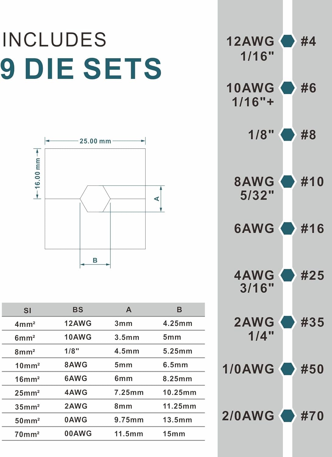 Hand Operated Hydraulic Crimping Tool Range 12 AWG-2/0 AWG for Cable lugs Hydraulic Crimping Crimper Wire Terminal Lug Tool with 9 Pairs Dies
