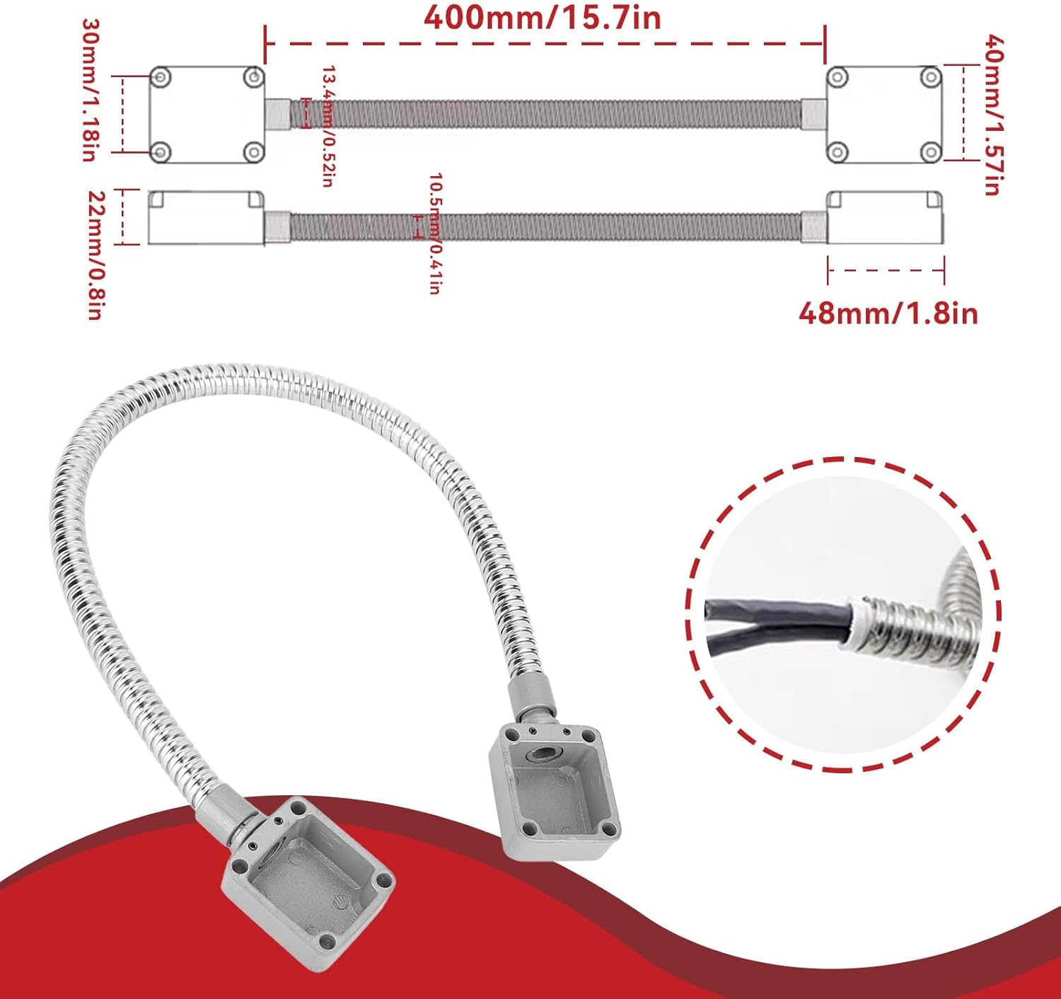 HERCHR Flexible Door Loop Wire Protection Sleeving with Ends 8mm Inner Dia Telescopic Armored Door Loop Electric Exposed Mounting Protection Cable Wire Sleeve Access Control Cable Line