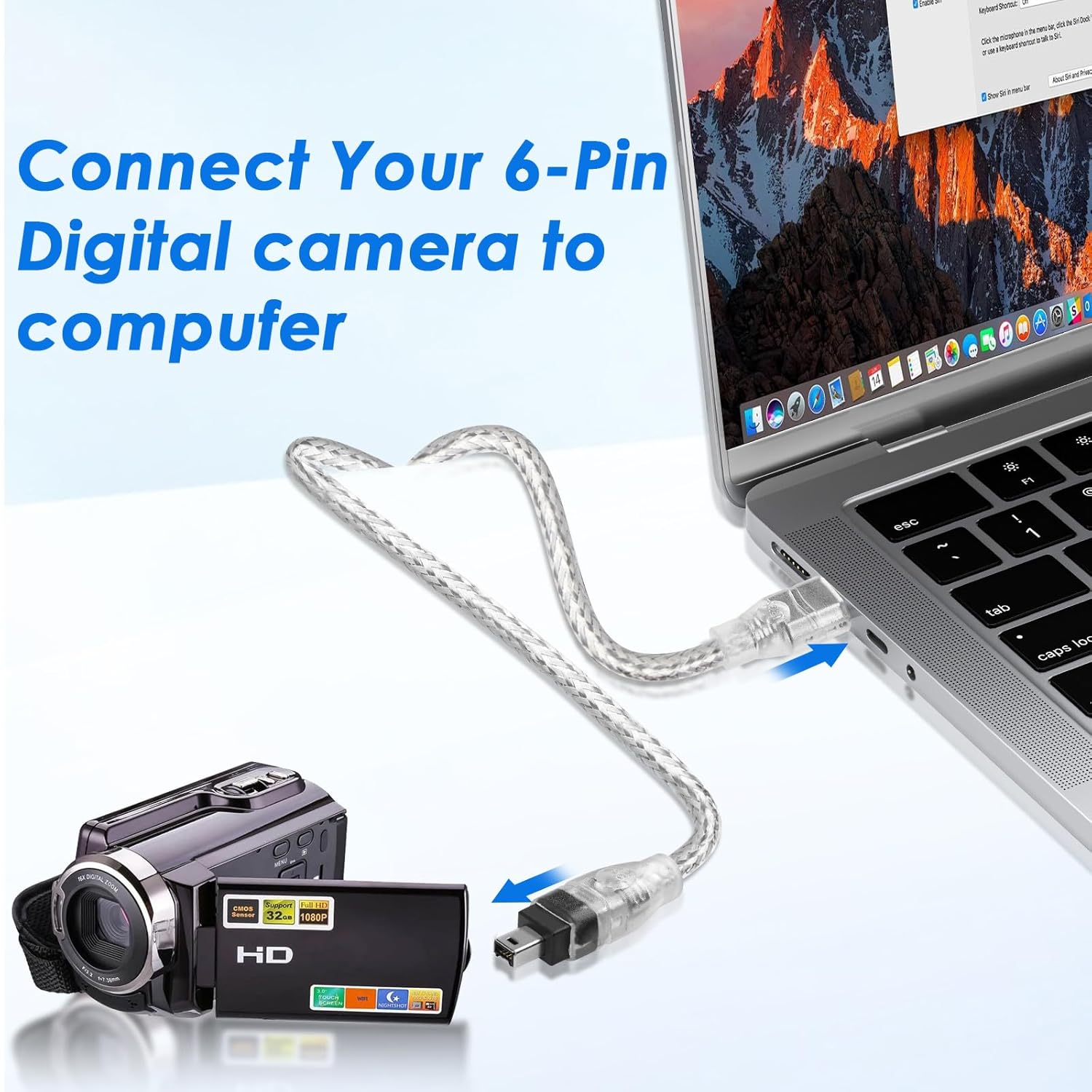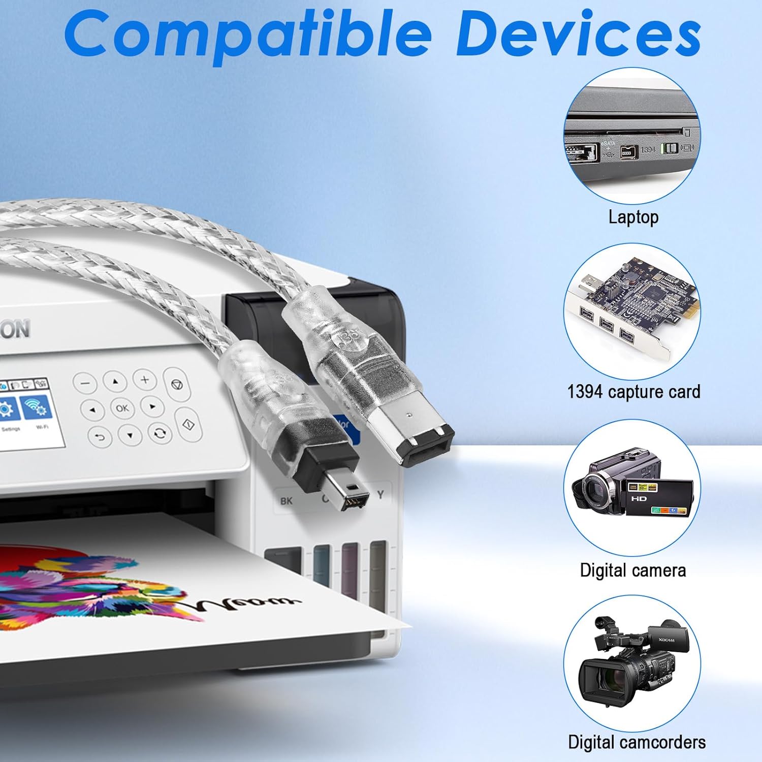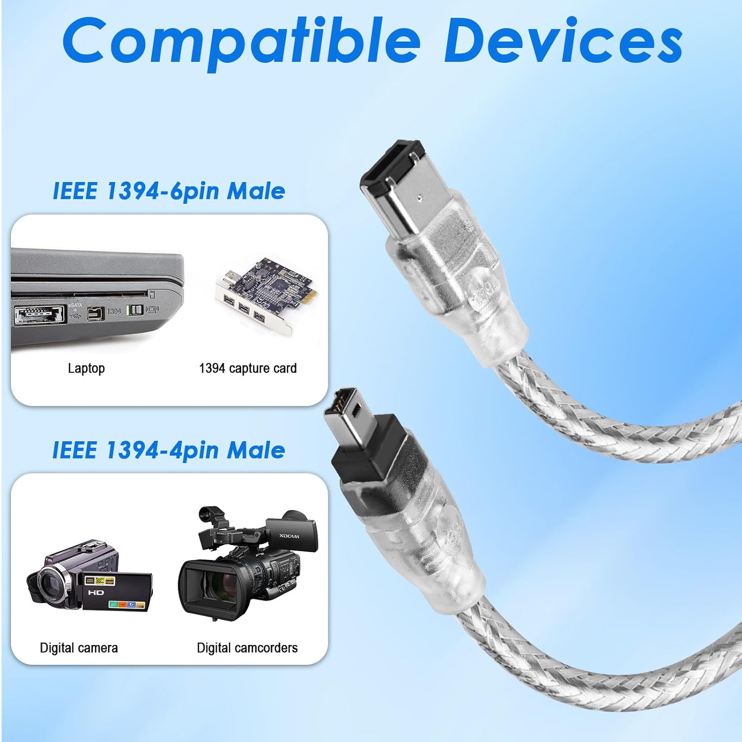 Herfair FireWire IEEE 1394 Cable,4 Pin to 6 Pin Male to Male Cord,Data Transfer Adapter,FireWire 400 DV iLink Converter for Laptop to Camcorder,DV Camera to Computer Cable 1.8m