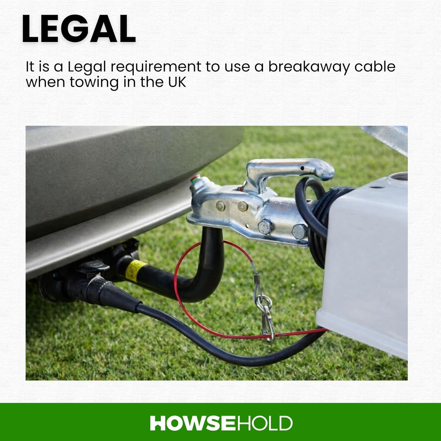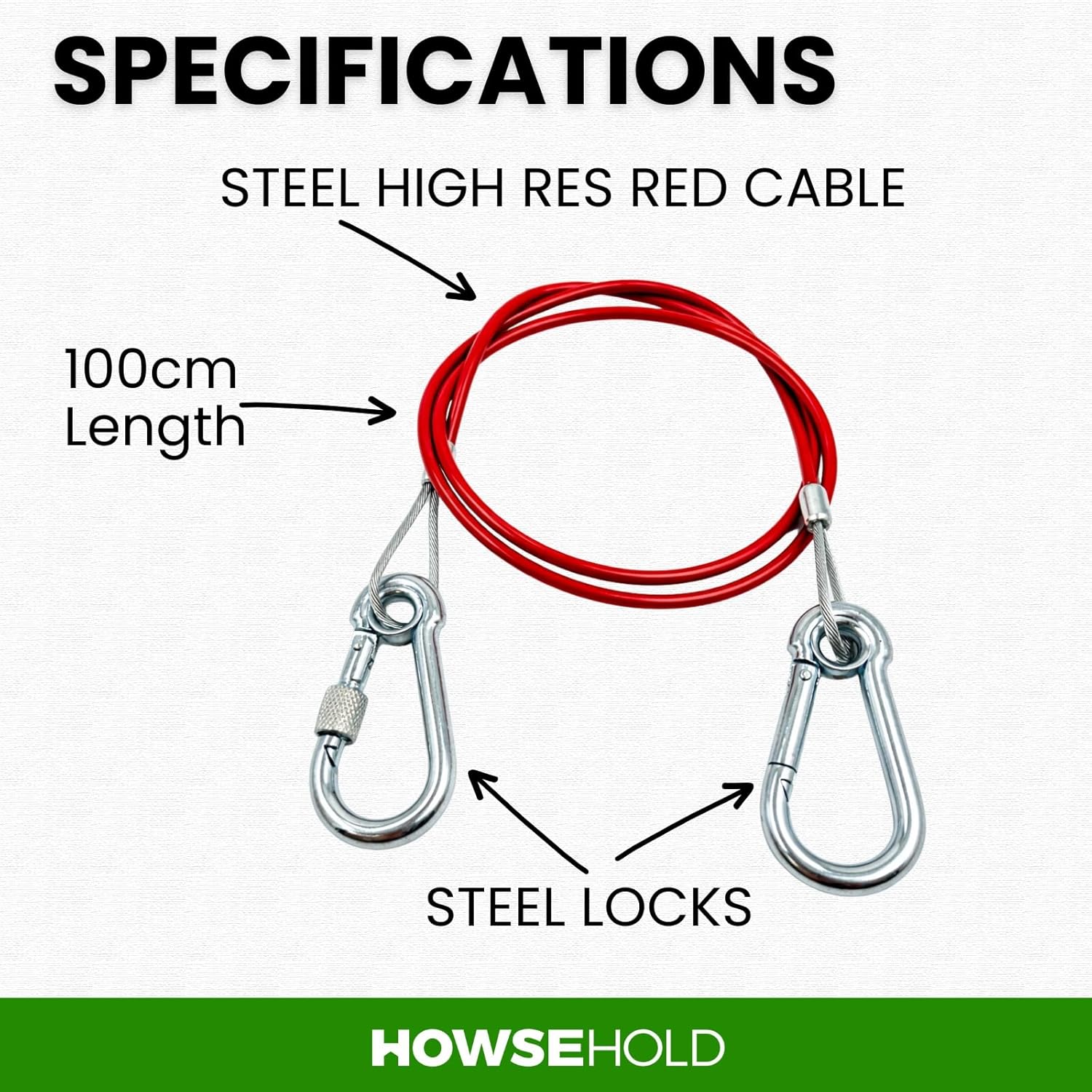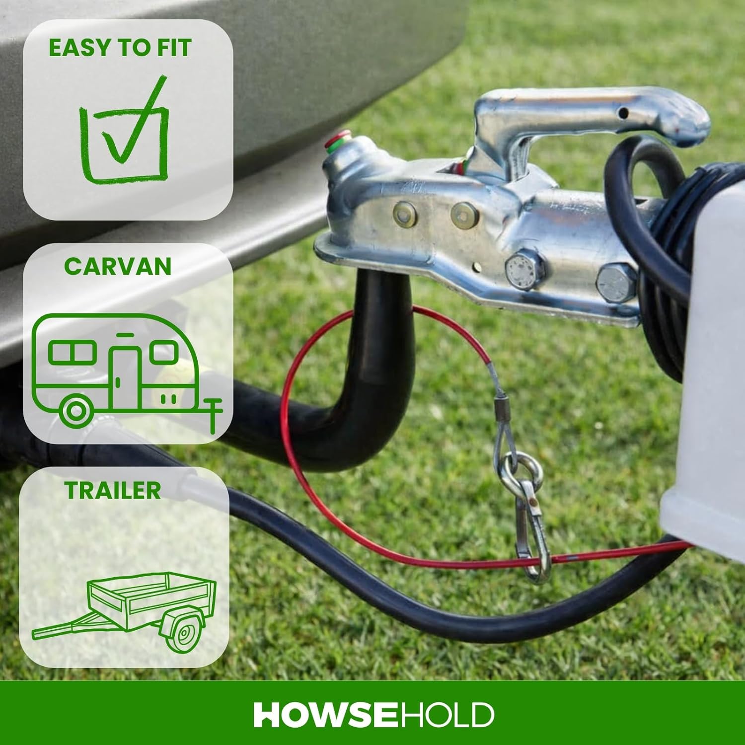 HowseHold Caravan Breakaway Cable – 1m x 3mm Heavy-Duty Trailer Breakaway Cable with Carabiner, Quick Fit Break Away Safety Cables, Quick Fit Emergency for Trailers and Caravan Accessories