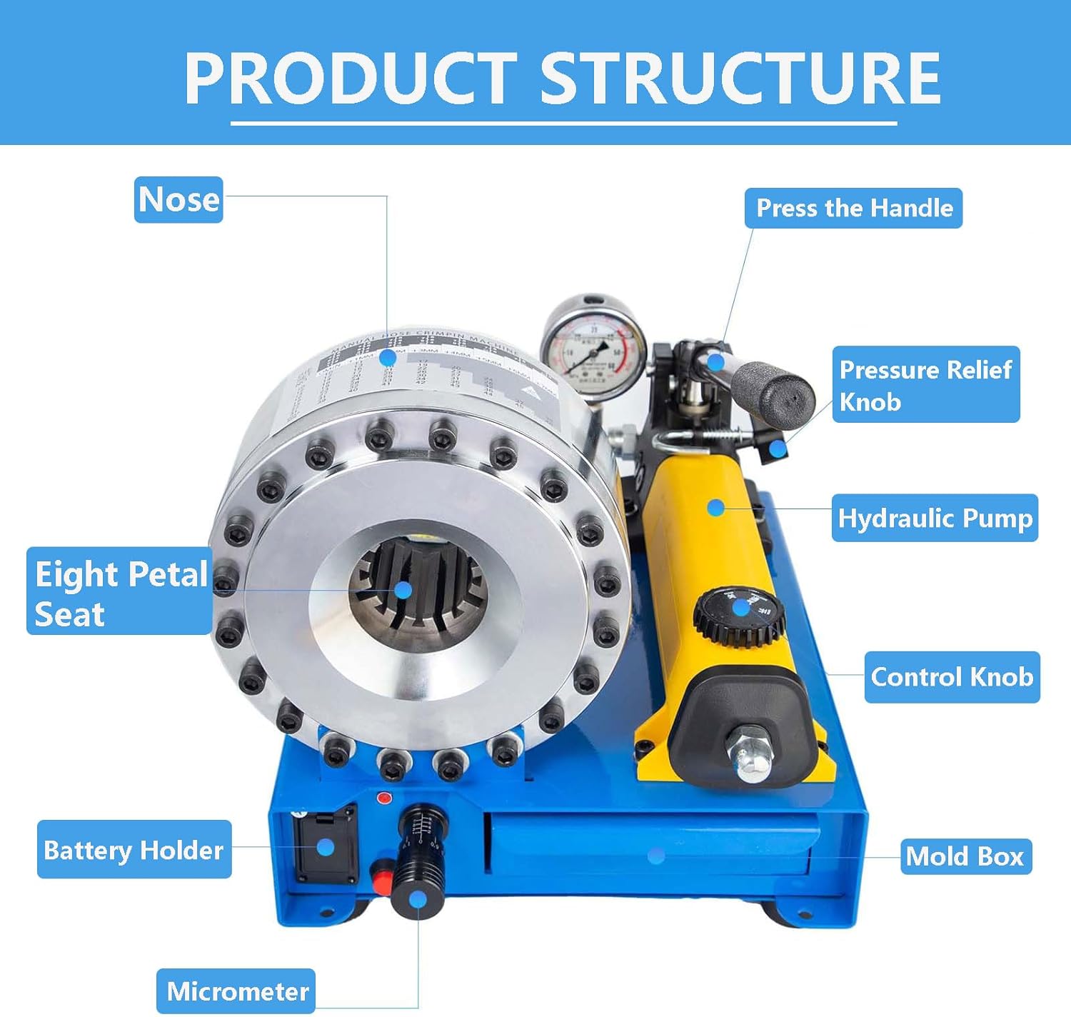 Hydraulic Hose Crimping Tool: Portable 6-25mm & 10-31mm Hose Crimping Machine with 8 Sets of Dies