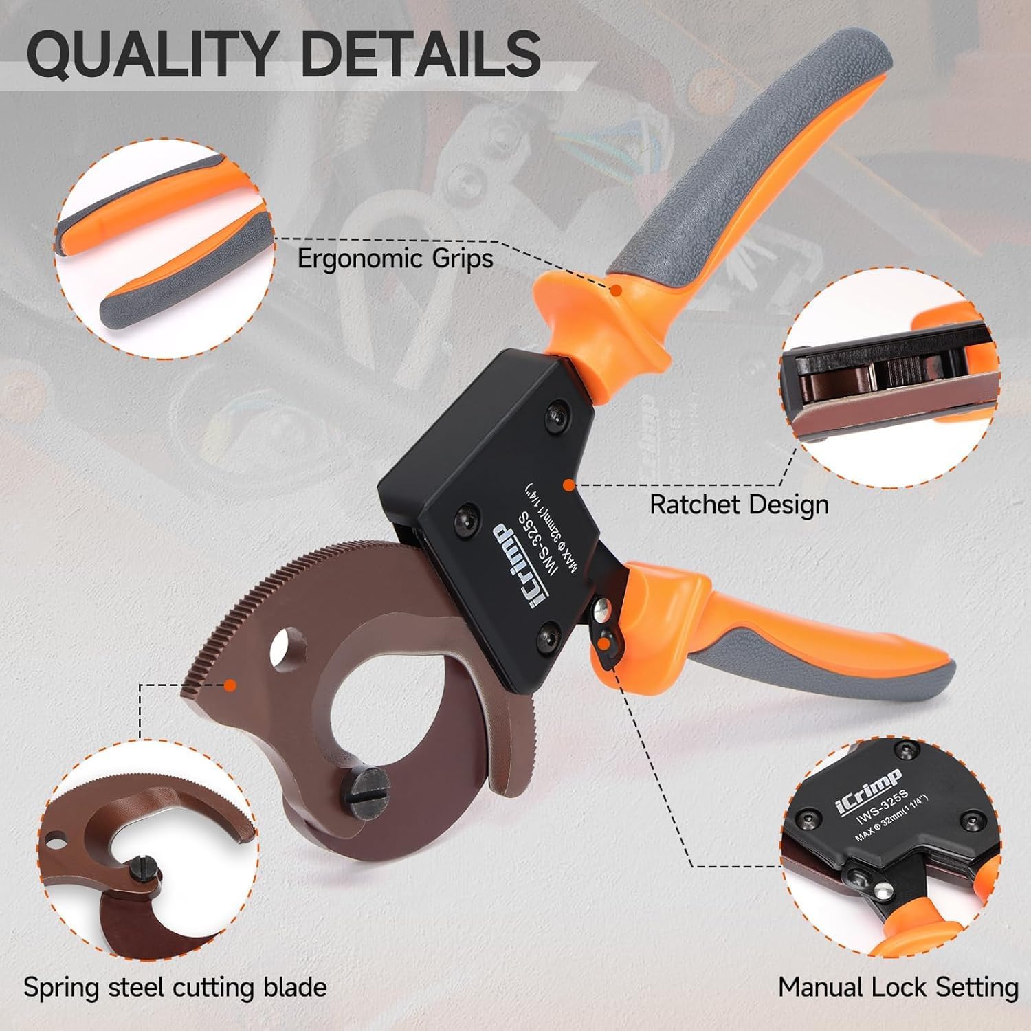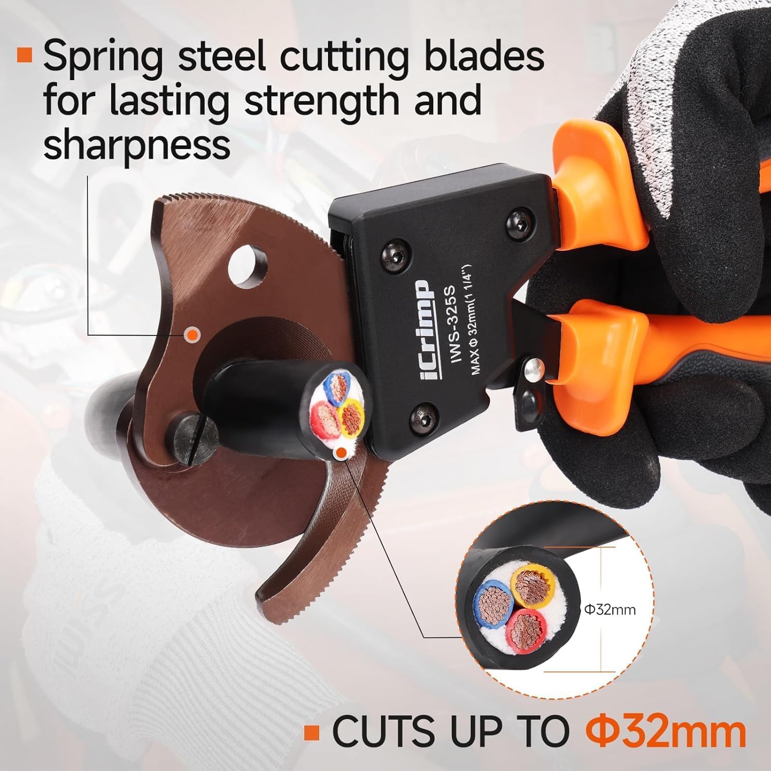 iCrimp Ratchet Cable Cutter, Cuts up to 32mm Diameter, High Performance Cable Cutter for Cutting Electric Aluminum Copper and Multi-Core Cables IWS-325S