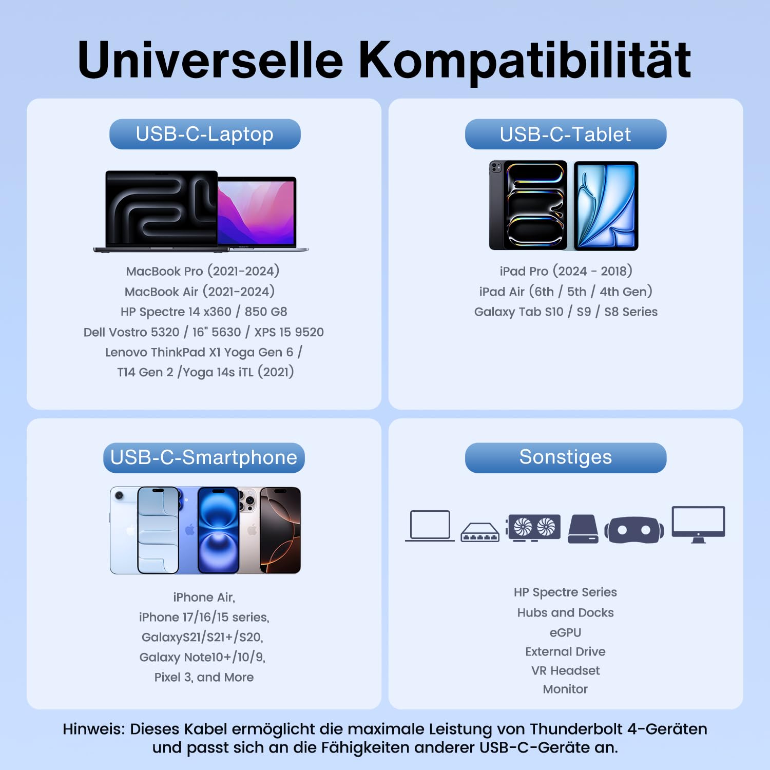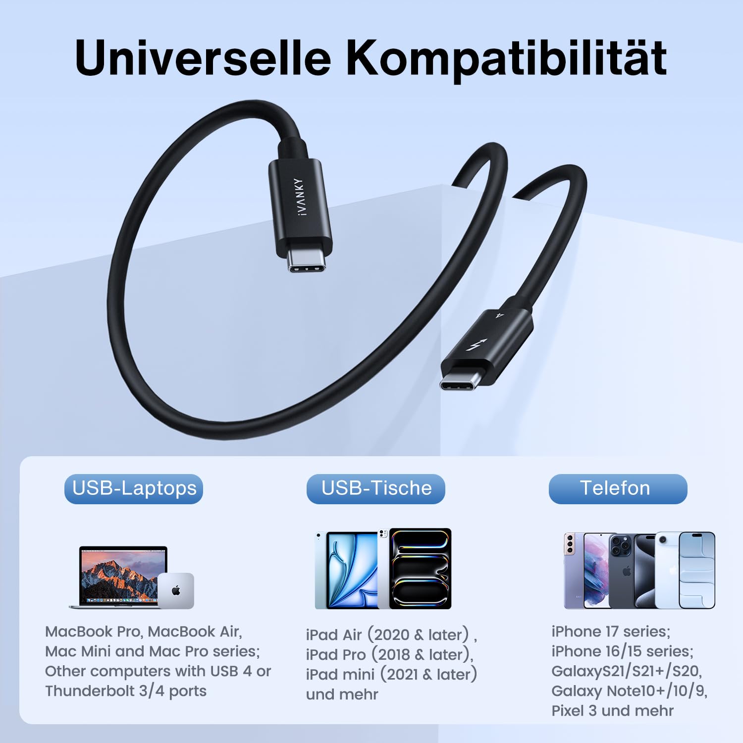 IVANKY Thunderbolt 4 Cable, USB-C to USB-C Cable 240W, Supports 8K Display and 40 Gbps Data Transfer, for iPhone 17/16/Air, MacBook, iPad, Samsung Galaxy S23, and More – 1.5M