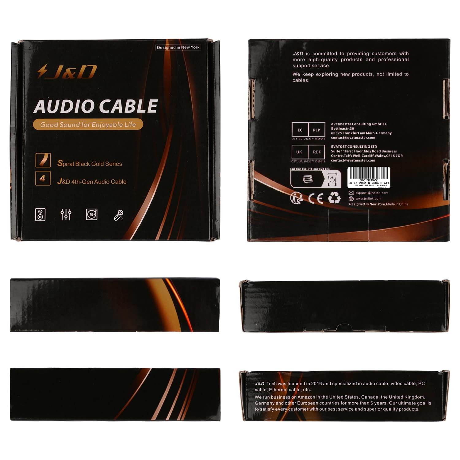 J&D RCA Stereo Cable, 24 AWG Gold Plated Male-to-Male Phono to Phono Cable, 2RCA to 2RCA Stereo Audio Cable, Subwoofer Cable for Home Theater, HDTV, Amplifiers, Hi-Fi Systems, Speakers, 1.8 Meter