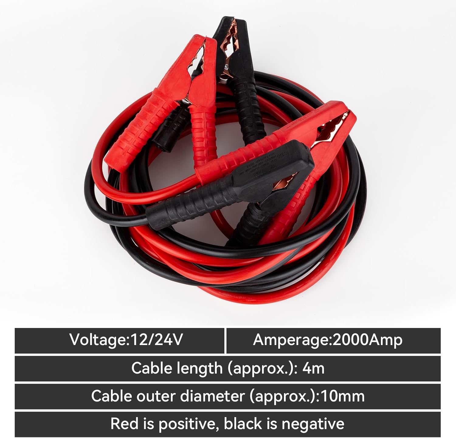 Jumper Cables for Car Battery,Heavy Duty Jumper Cables with PVC CASE, 4m 2000AMP Jump Starting Dead or Weak Batteries Emergency Roadside Assistance, Works in Every Weather