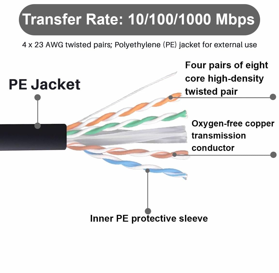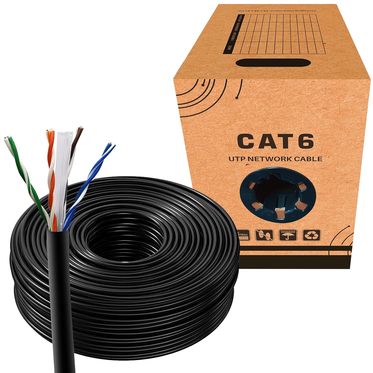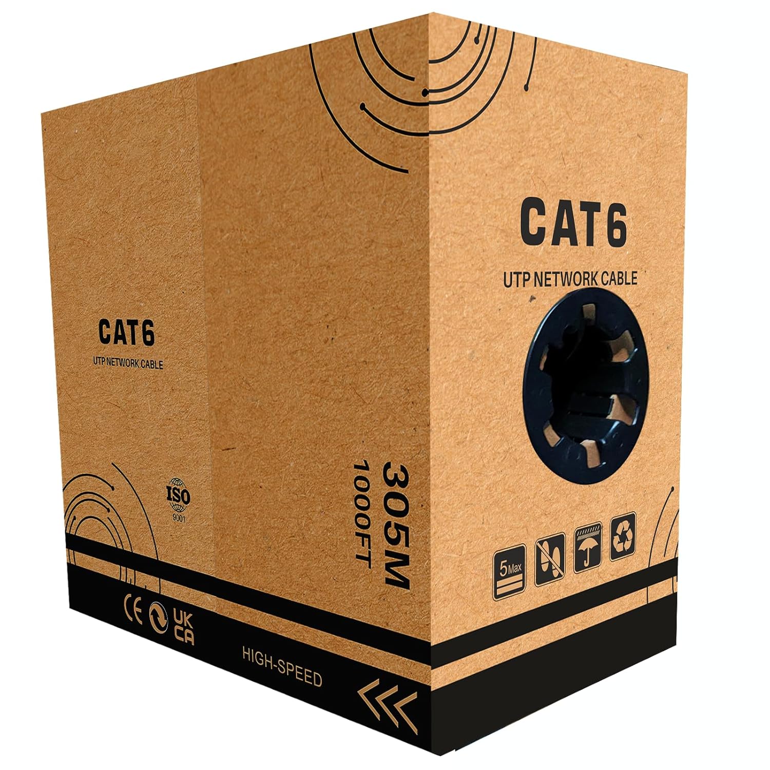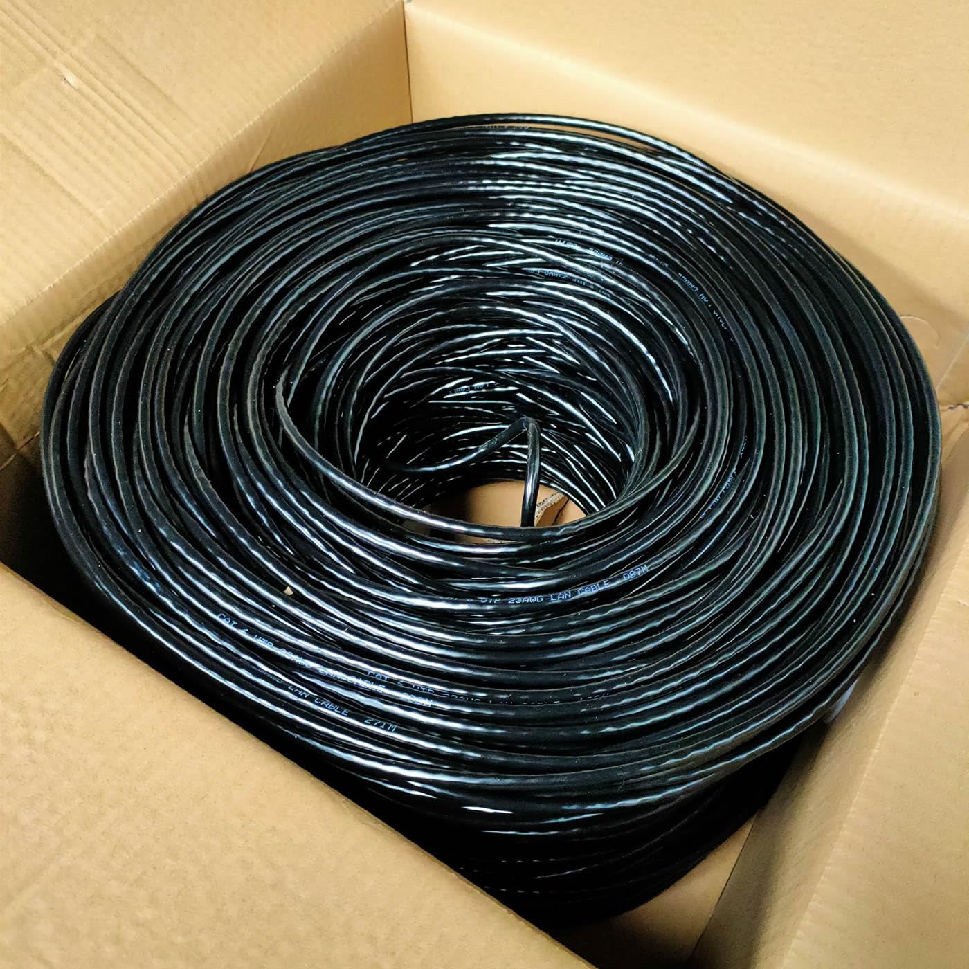 JUSTOP 305M CAT6 Ethernet LAN UTP Roll Bulk Cable – AWG23, Indoor & Outdoor External Grade PE Jacket, 1000ft Networking Reel (Black)