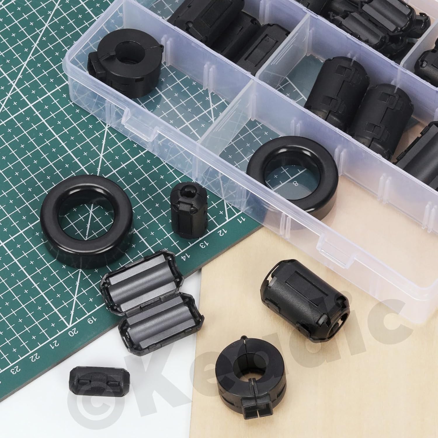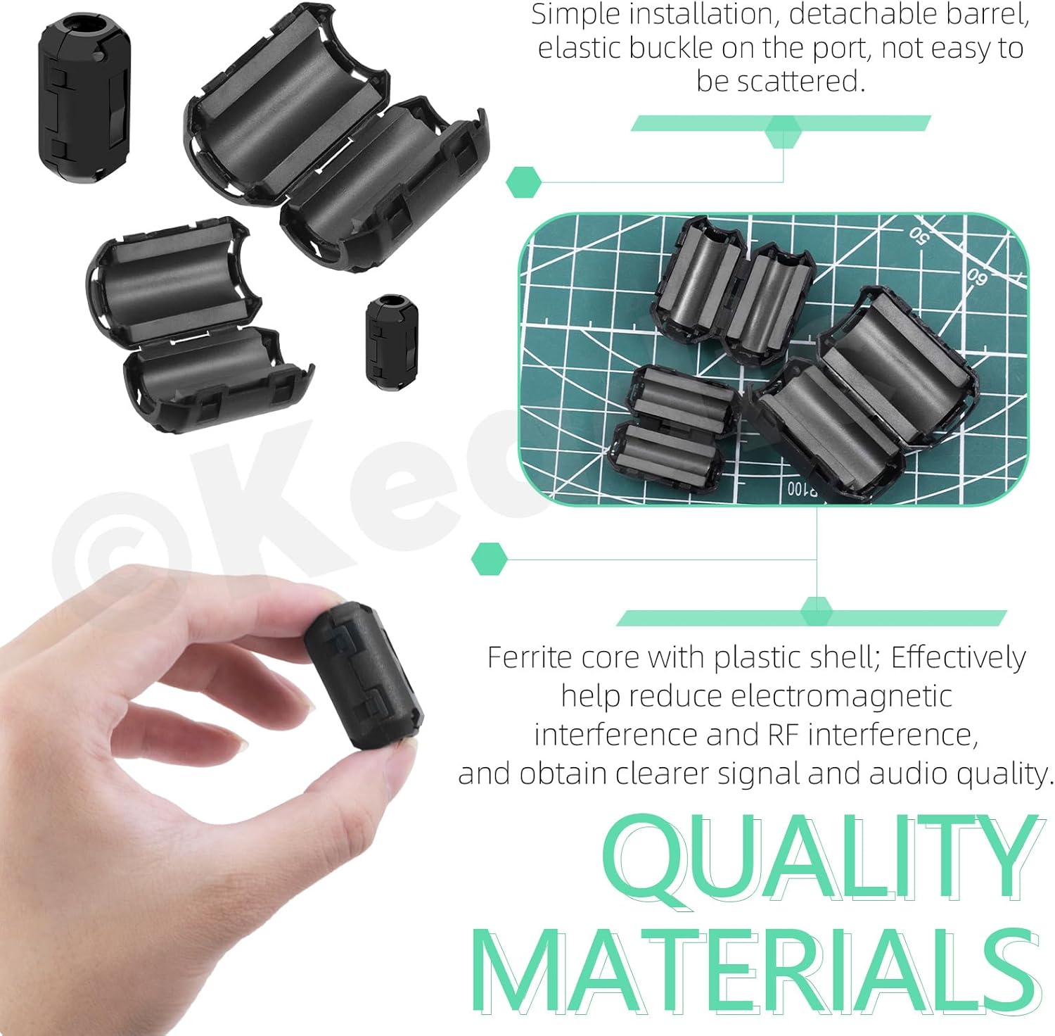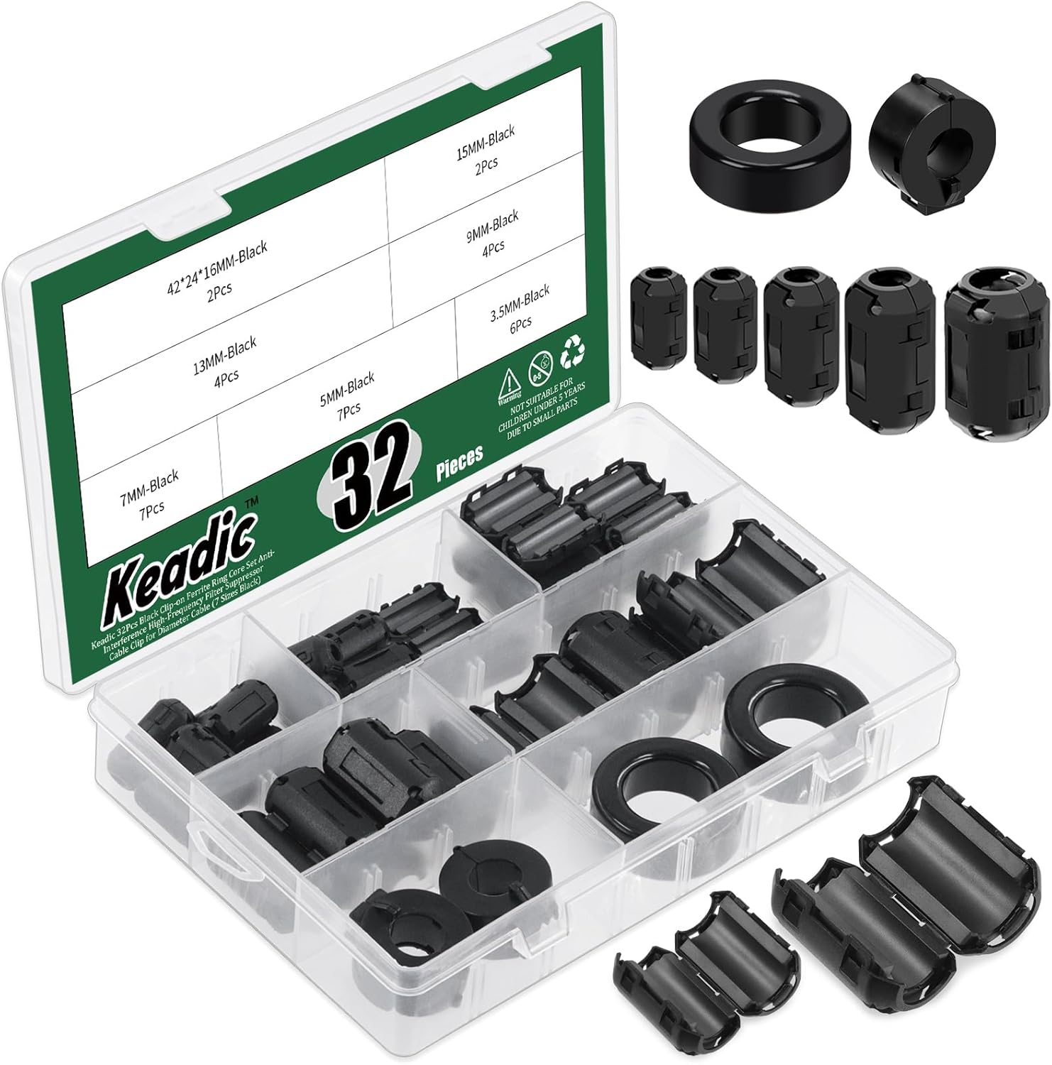 Keadic 32Pcs Clip-on Ferrite Ring Core RFI EMI Noise Suppressor Cable Clip Set, Anti-Interference Cable Clip for 3.5/5/7/9/13/15/16mm Inner Diameter Telephones Tvs Speakers Radio Audio