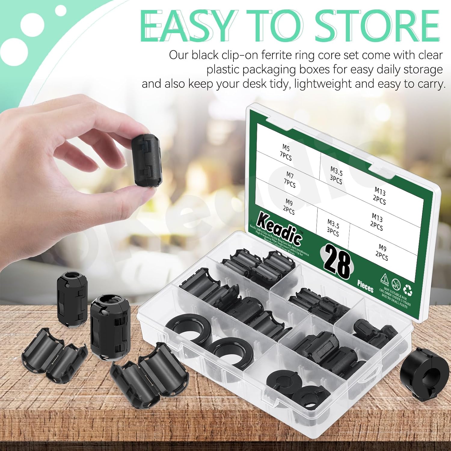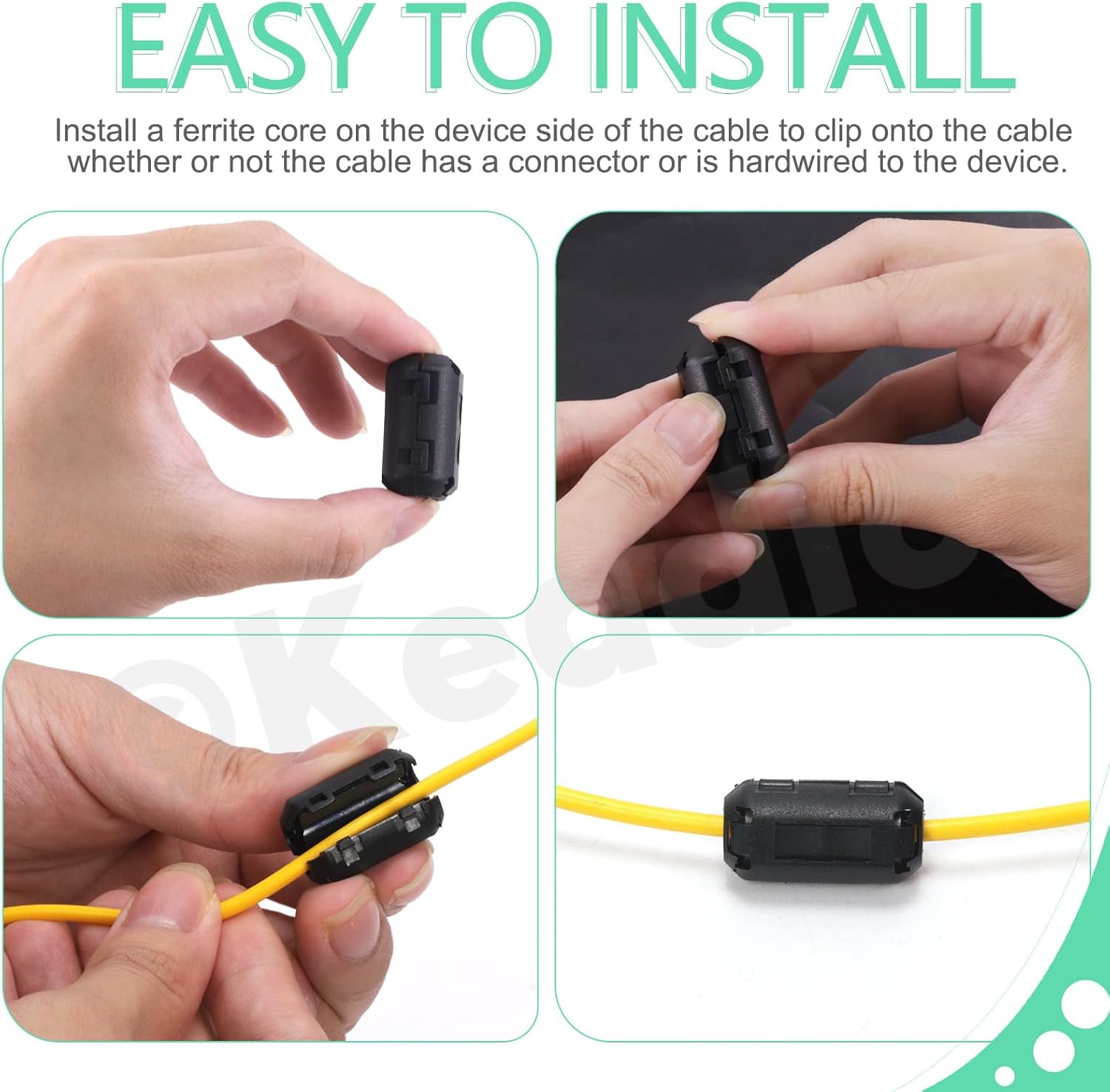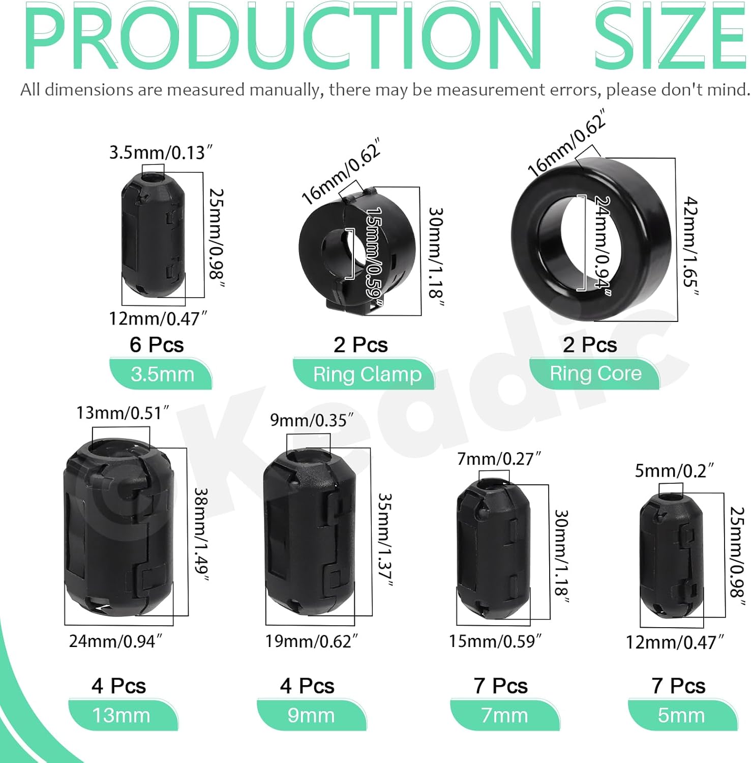 Keadic 32Pcs Clip-on Ferrite Ring Core RFI EMI Noise Suppressor Cable Clip Set, Anti-Interference Cable Clip for 3.5/5/7/9/13/15/16mm Inner Diameter Telephones Tvs Speakers Radio Audio