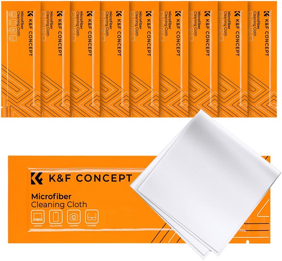 K&F CONCEPT Microfiber Cleaning Cloths – 10 Pack Lens Cleaning Cloth for Cleaning Camera Lenses, Glasses, Screens, Camera, Eyeglasses, Tablets Washable