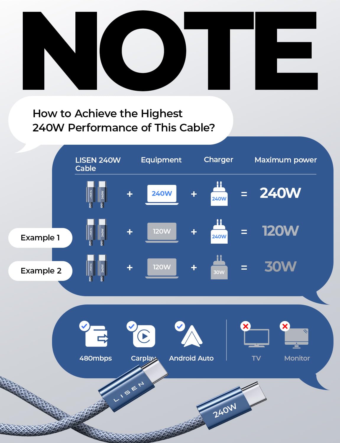 LISEN 240W USB C to USB C Cable [2-Pack 2m] USB C Charger Cable, Nylon Type C Charger Cable Fast Charging for iPhone 17 16 15 Pro Max, MacBook Pro/Air, iPad Pro, Galaxy S25 S24, Switch 2, Steam Deck