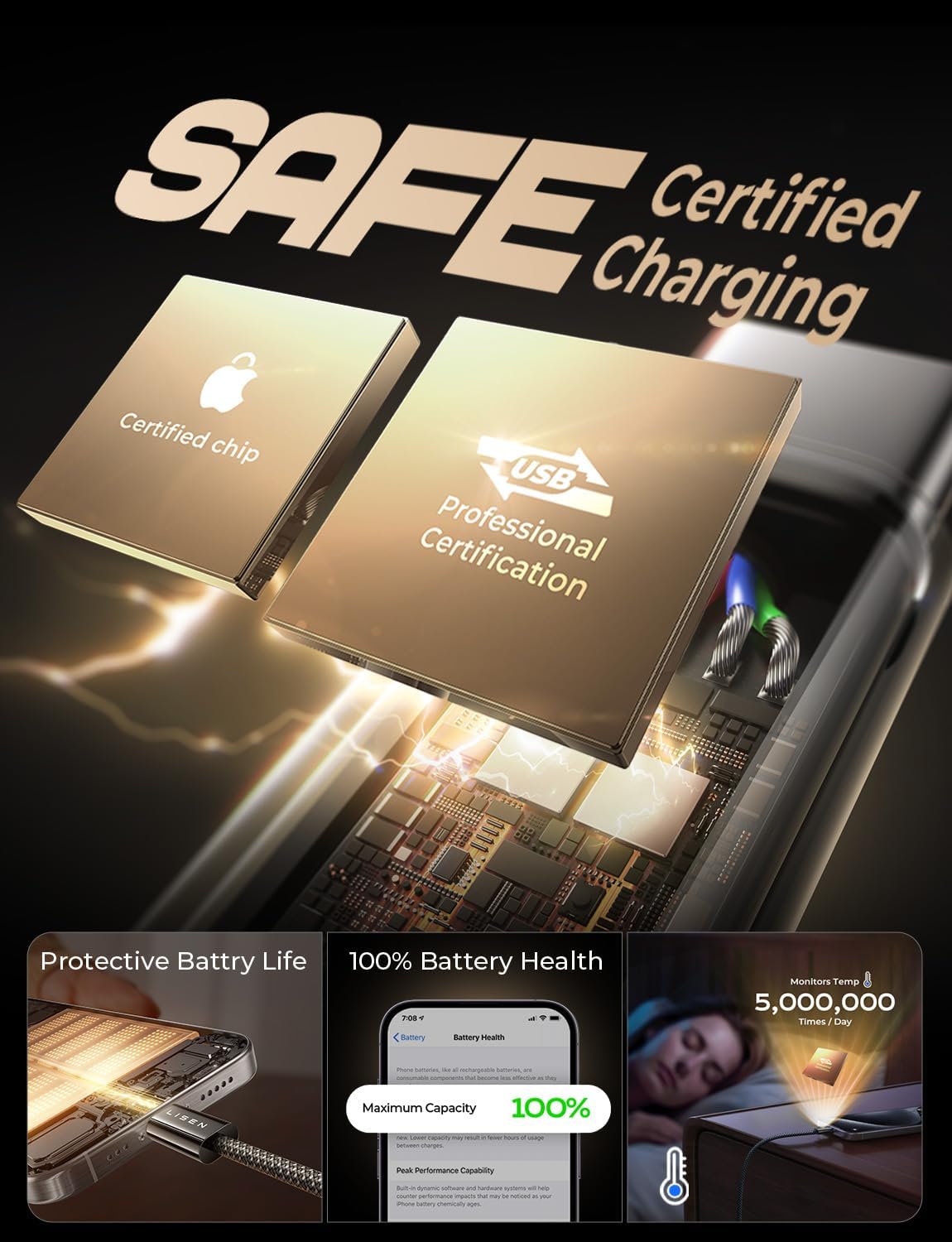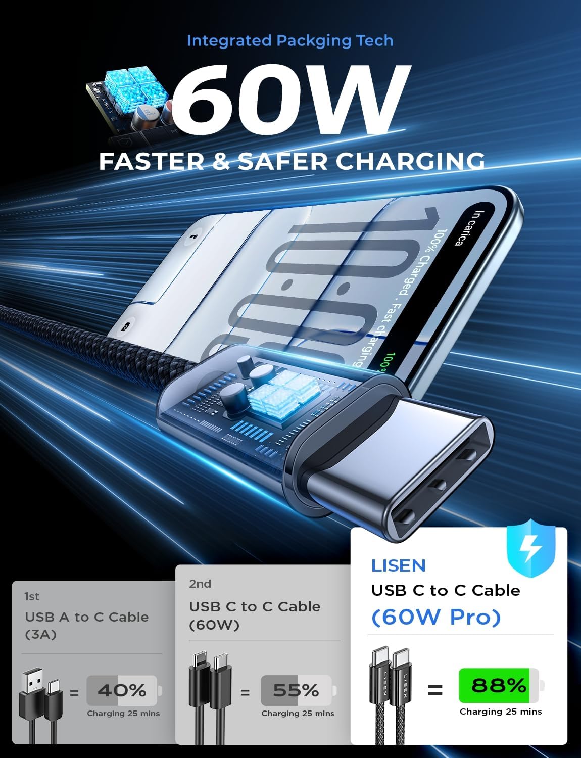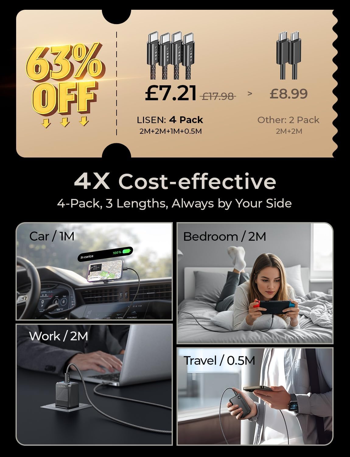 LISEN USB C to USB C Cable Charger 4-Pack [0.5/1/2/2M] for USBC to USBC Cable 60W C to Type C Charger Cables Fast Charging for iPhone 17 Pro Max 16 15 iPad Pro Air Samsung Galaxy S25 S24 Pixel Switch