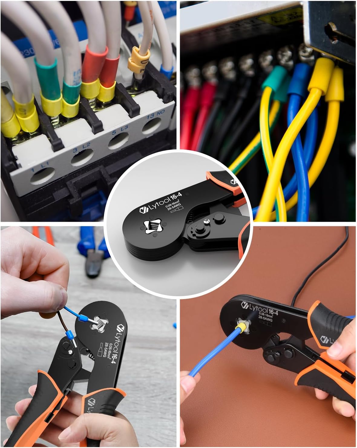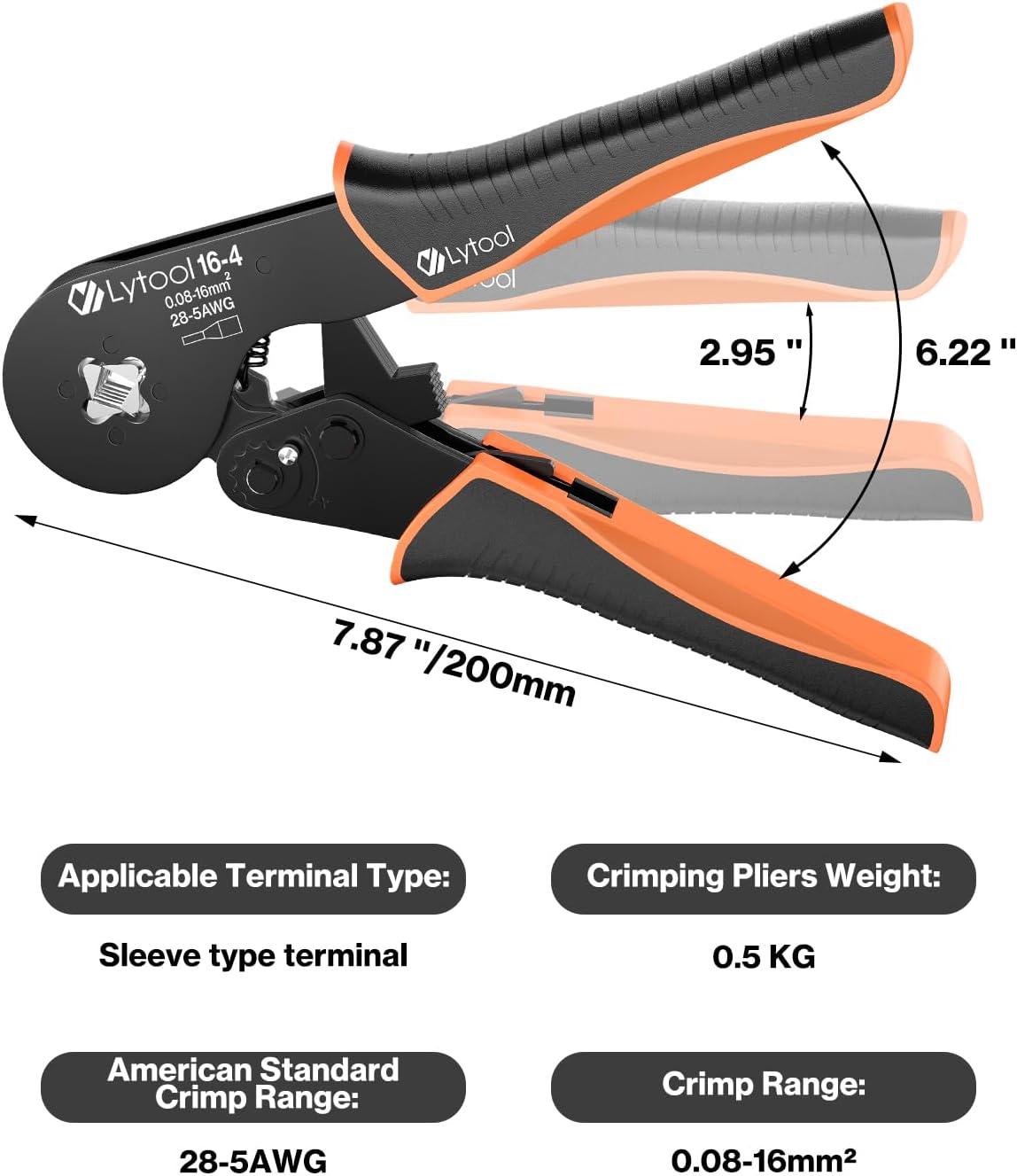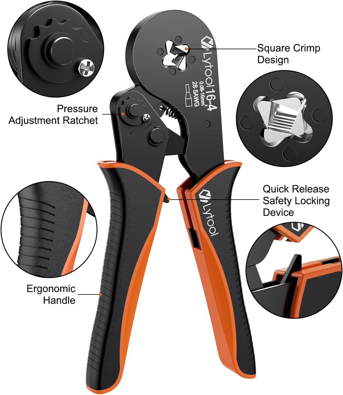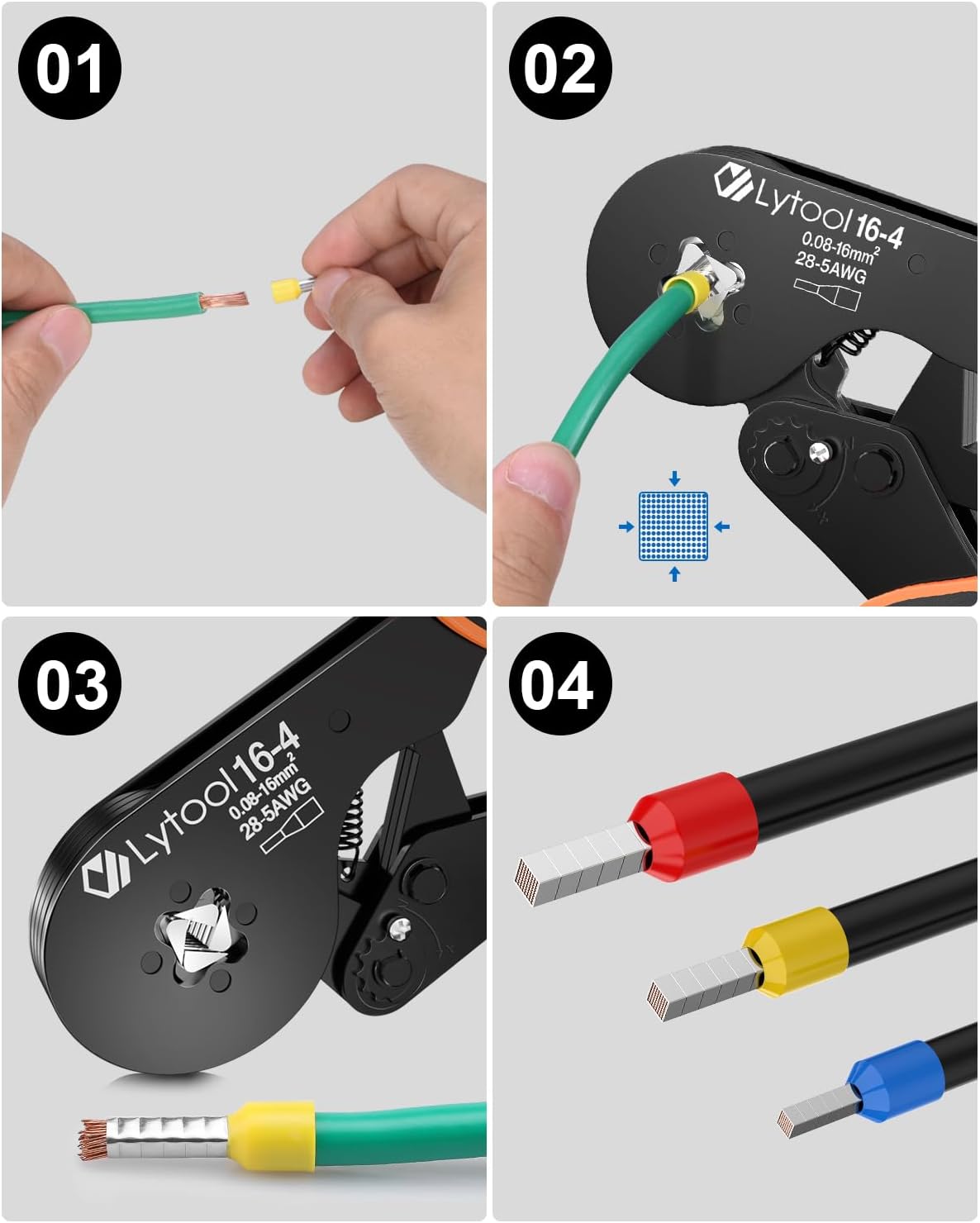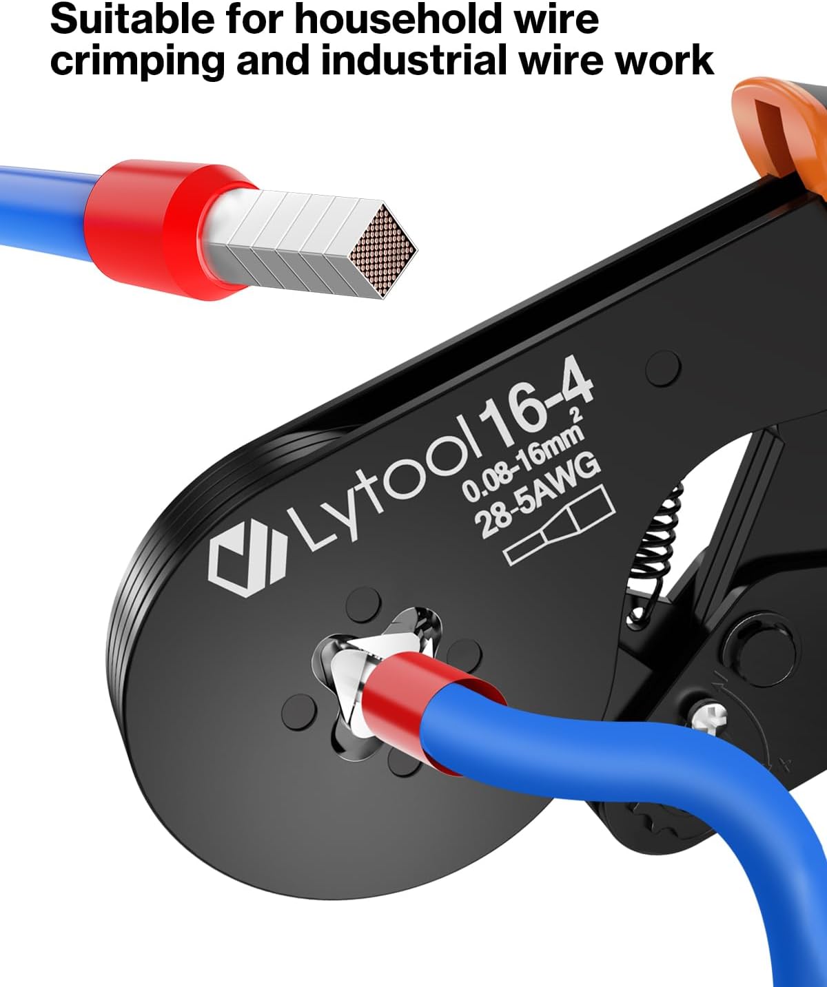Lytool 0.08-16mm² Ferrule Crimping Tools, Bootlace Ferrule Crimping Tool Wire Ferrule Crimper, Self-Adjustable Ratchet Wire Square Jaw Crimping Pliers for Wire Ferrules Terminals