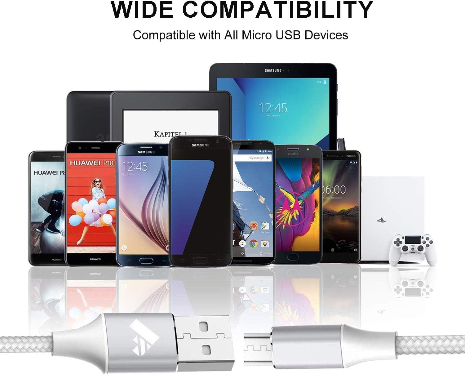 Micro USB Cable,Aioneus Android Charger Cable 2M Fast Charging Cable Nylon Braided USB Charger Cable for Samsung Galaxy S7 Edge S6 S5 J7 J5 J6 J3 Note A6 A10,Sony,LG,Kindle,Xbox,PS4,Tablets,Nexus,Sony