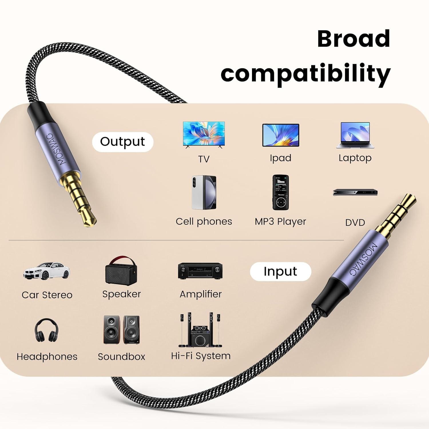 MOSWAG 3.28FT/1Meter 3.5mm Audio Cable TRRS Male to Male Audio Cable 4 Pole Stereo Aux Cable Auxiliary Cable Aux Cord for Headphones,PS4,Smartphone,Tablets,Headset,PC,Laptop and More