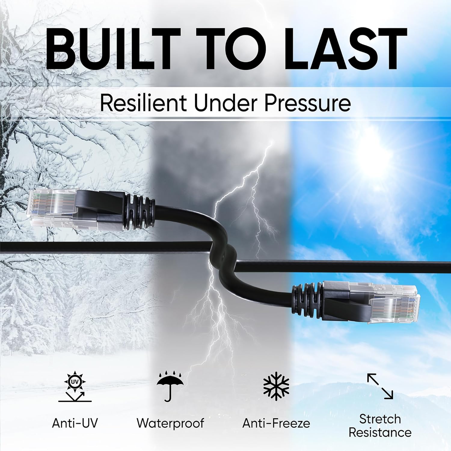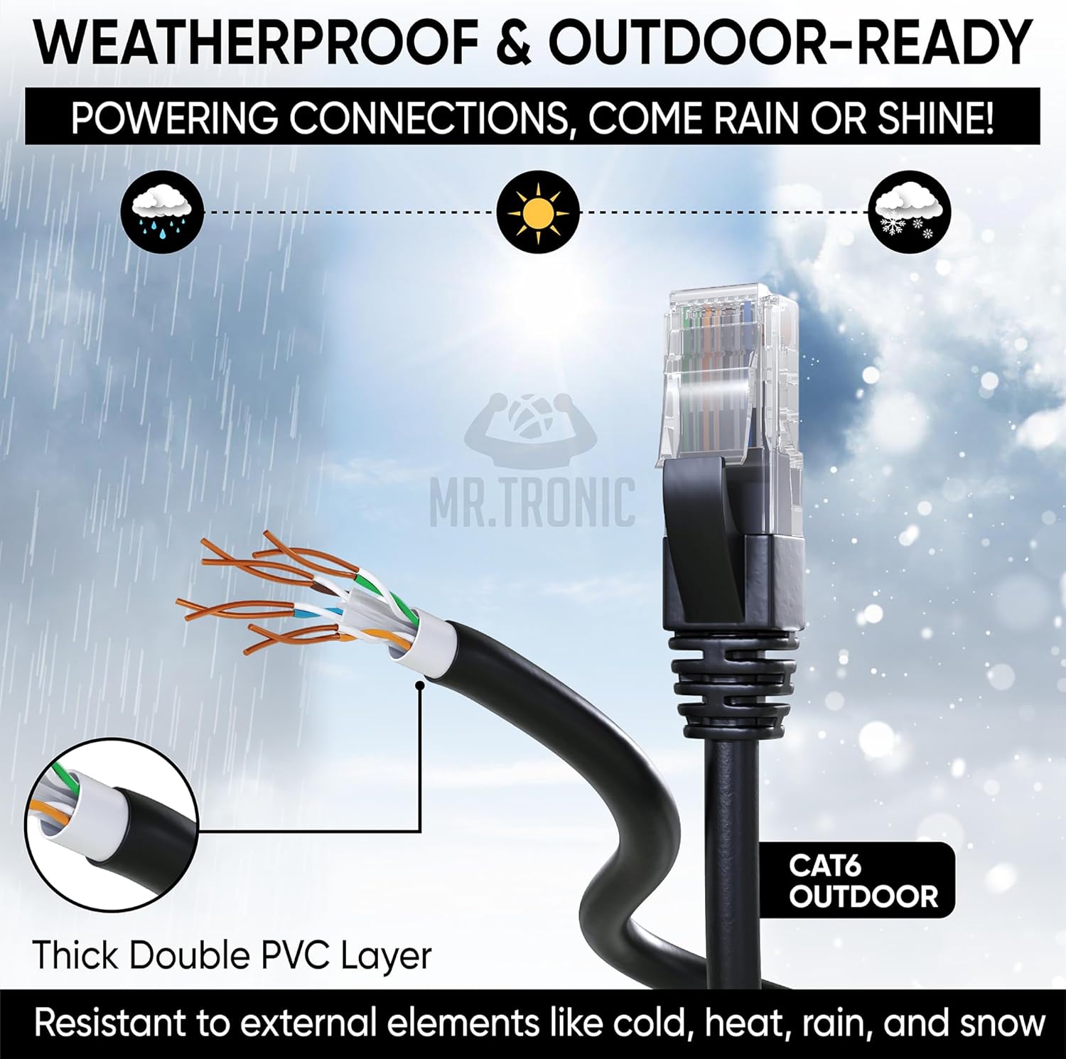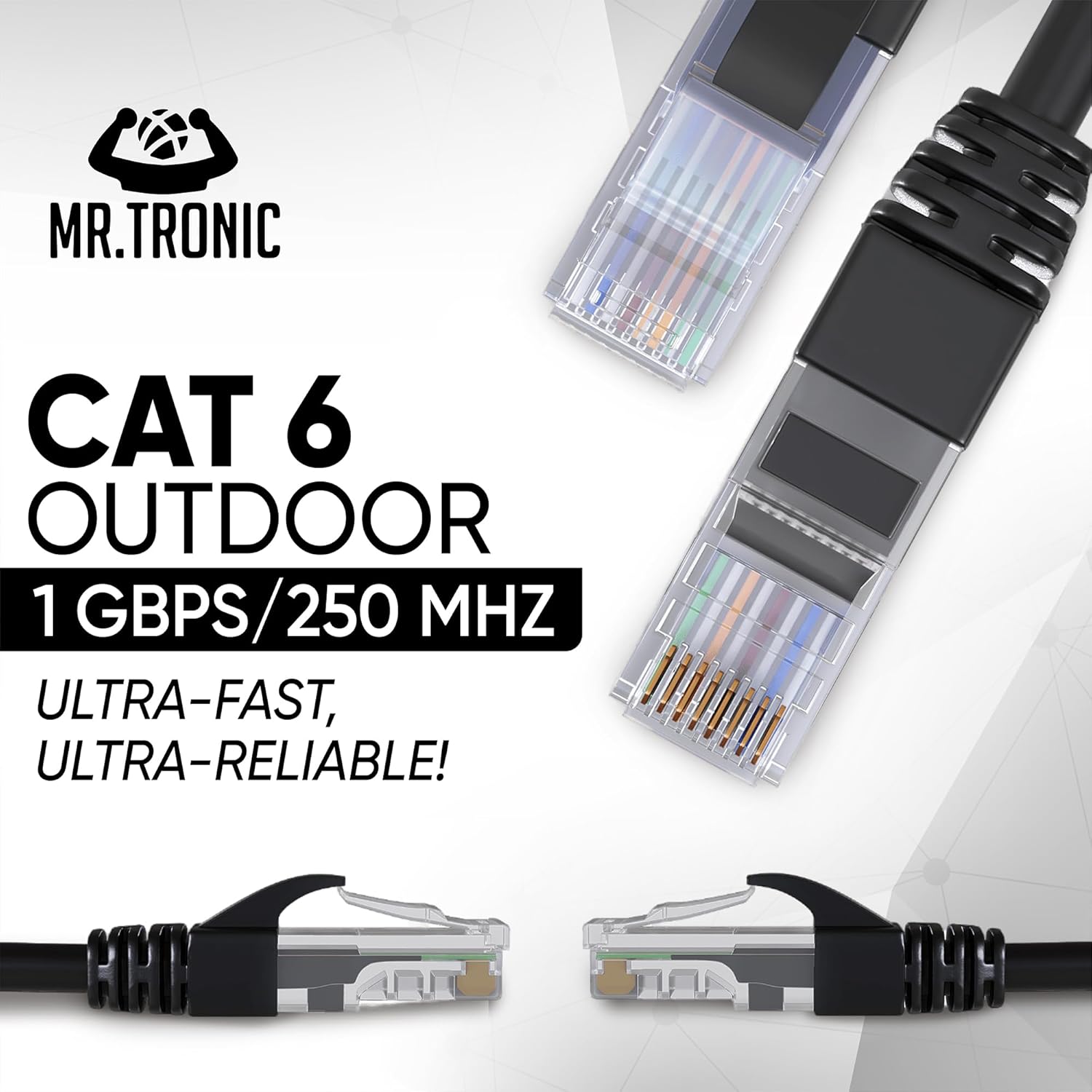 Mr. Tronic Outdoor Waterproof Cat 6 Ethernet Cable 20m, High Speed LAN Ethernet Network Cable with RJ45 Connectors Cat6 Internet, ADSL AWG24 Patch, UTP CCA (20 Meter, Black)