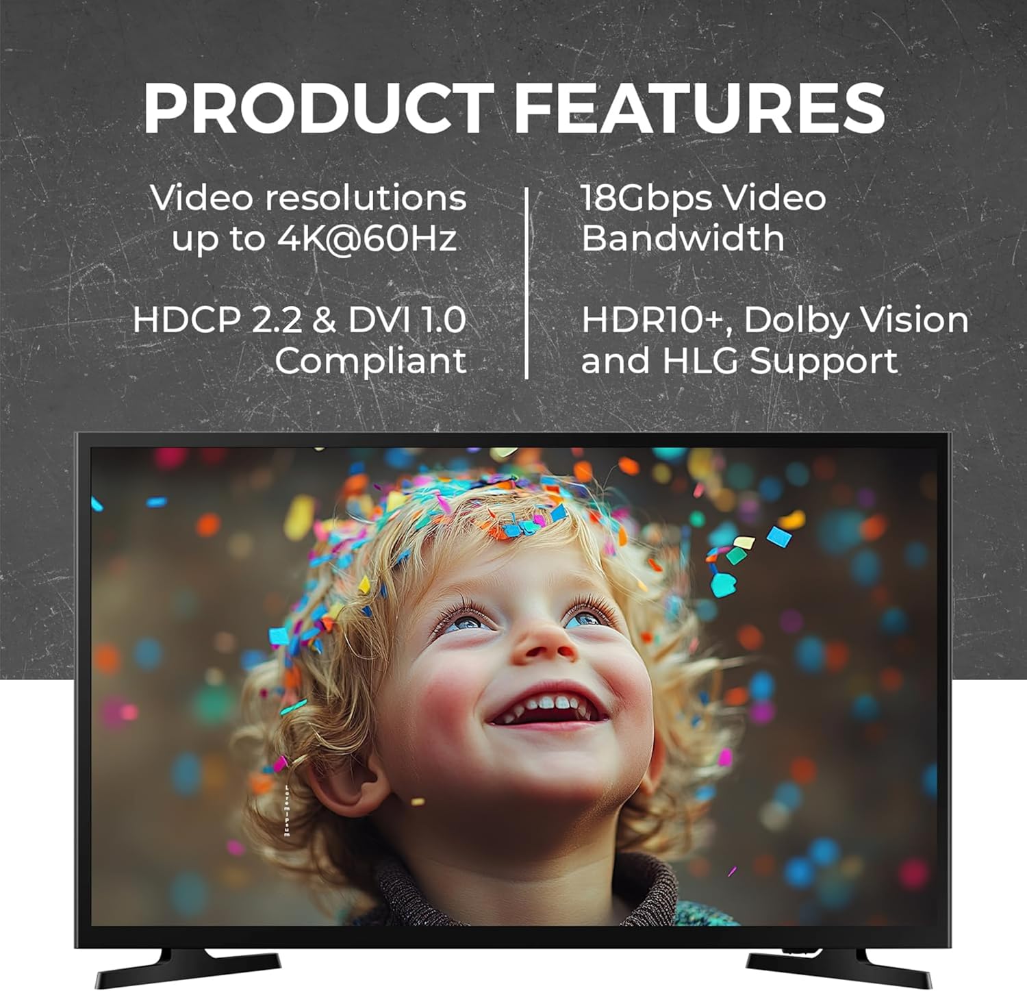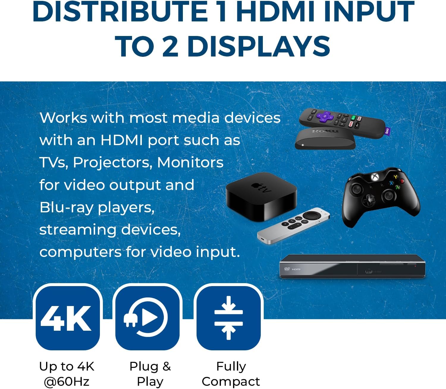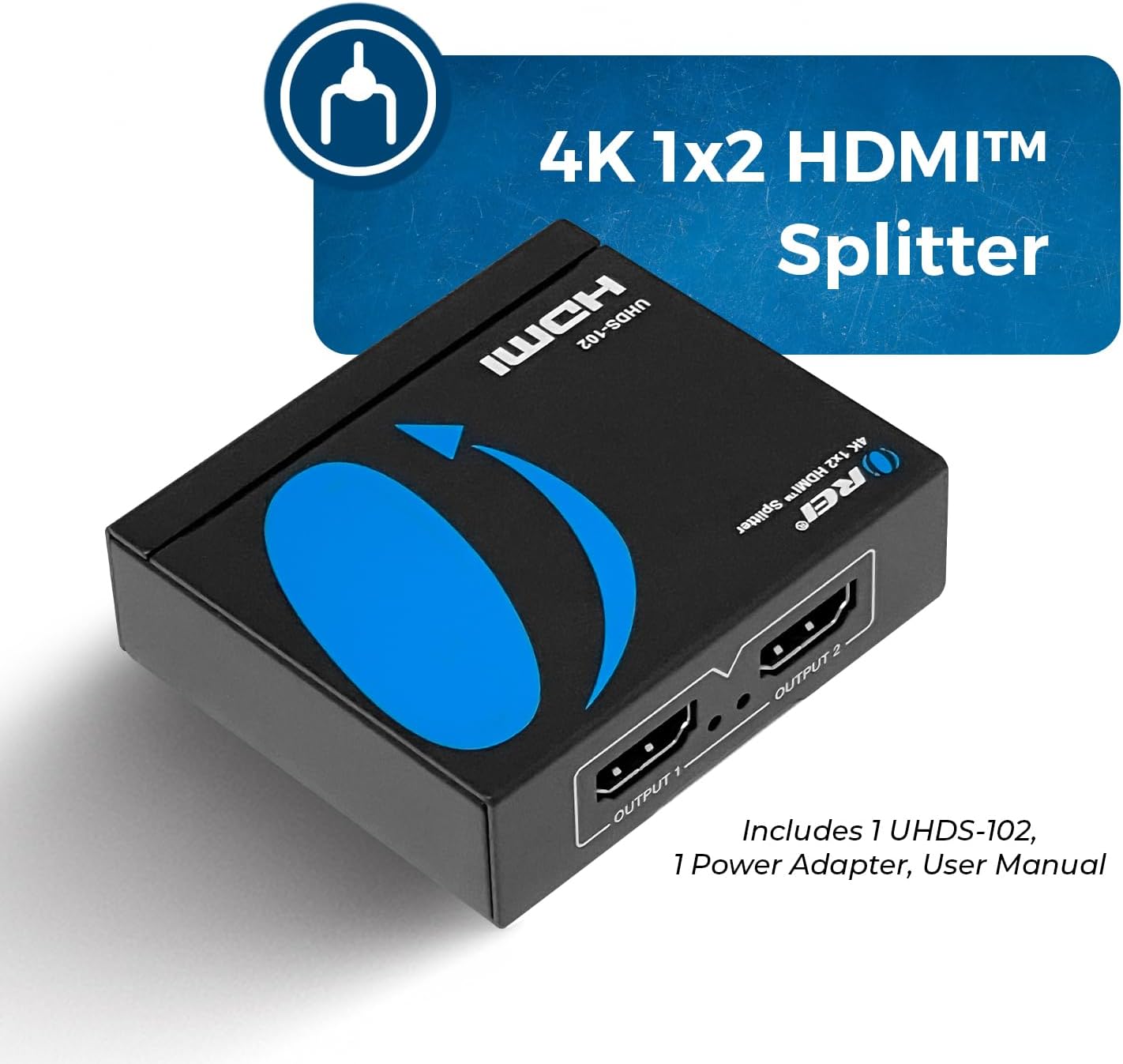 OREI UltraHD 4K @ 60 Hz 1 X 2 HDMI Splitter 1 in 2 Out 2 Port 2: 8-Bit – HDMI 2.0, HDCP 2.0, 18 Gbps, EDID, Duplicate/Mirror 4K Screens – UHDS-102