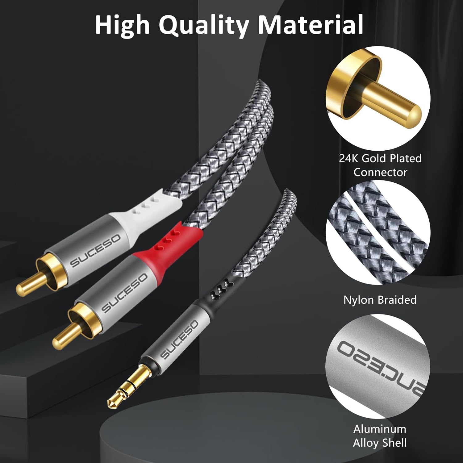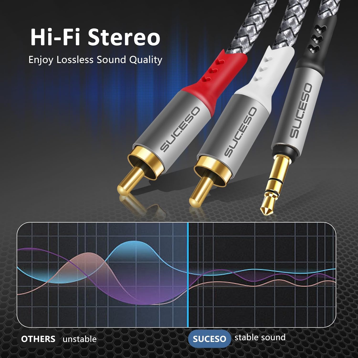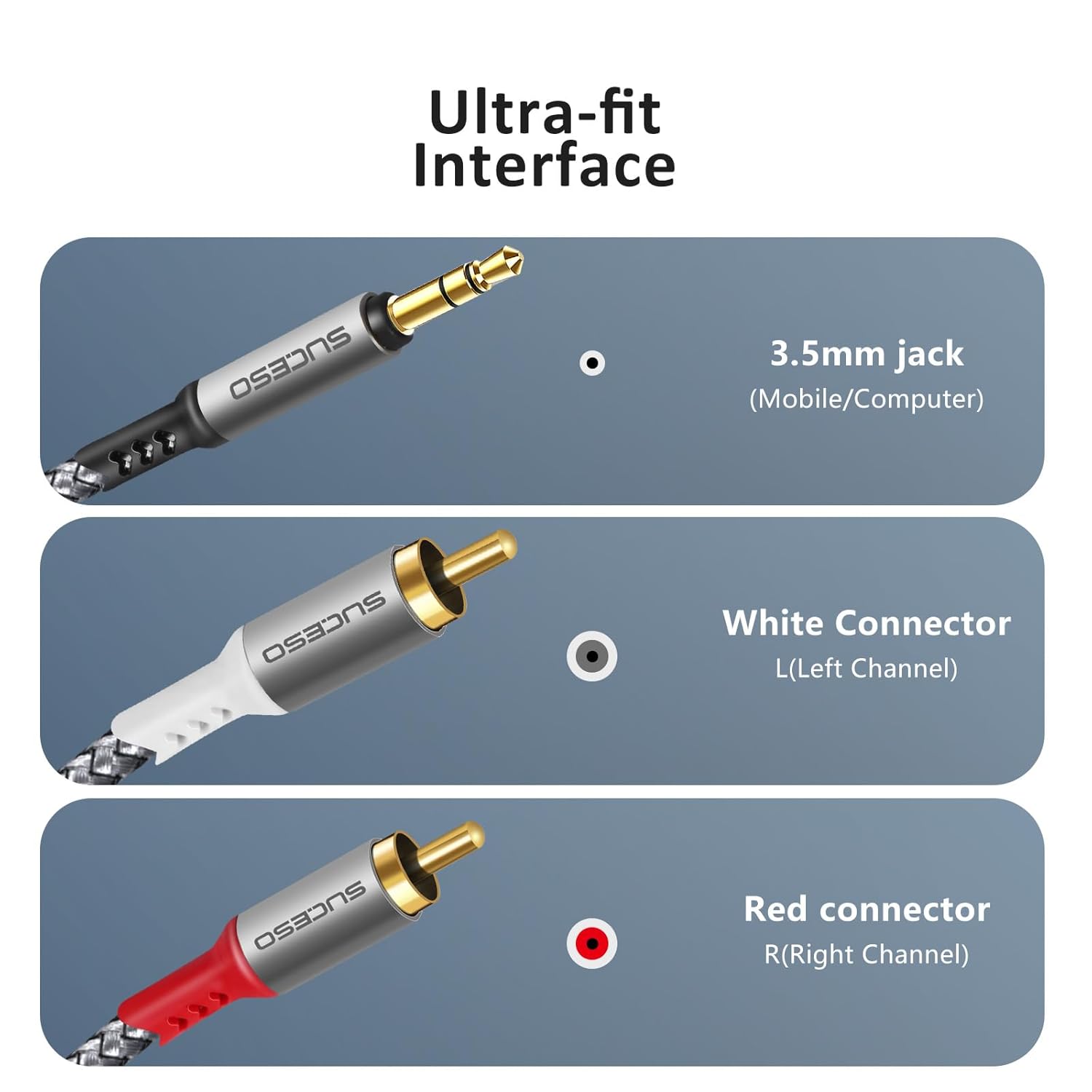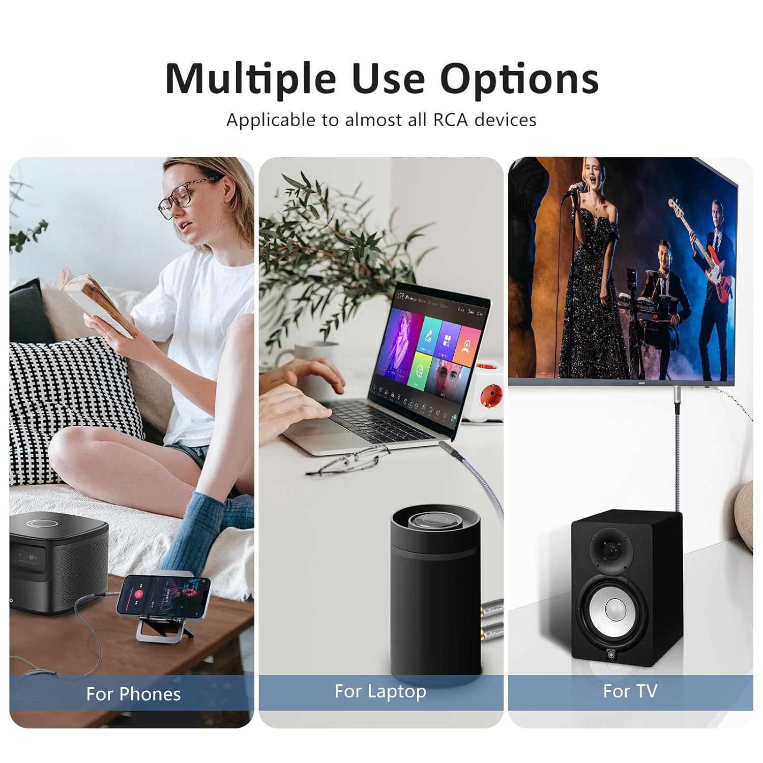 Phono to 3.5mm Jack Cable 2x RCA to 3.5mm Male Headphone Mini Jack Stereo Audio Y Splitter Red & White Aux Cord Compatible with Hi-Fi Amplifier Speaker Car DJ Controller TV Phone Turntable – 2M
