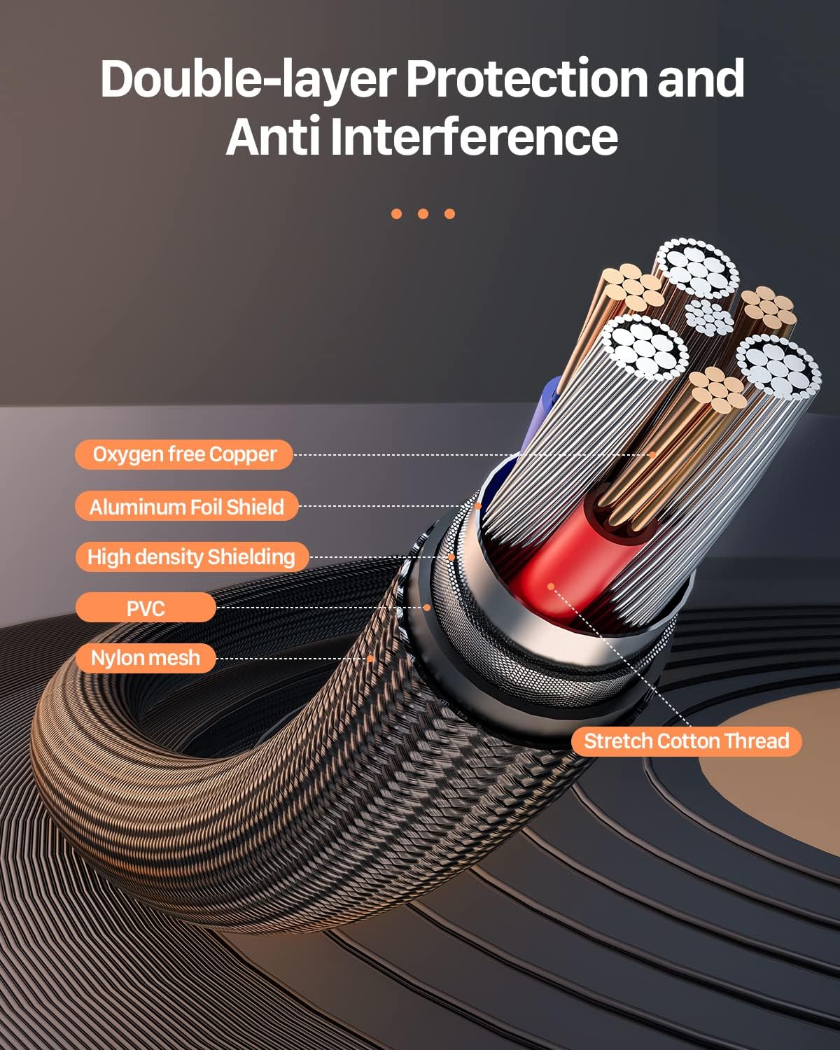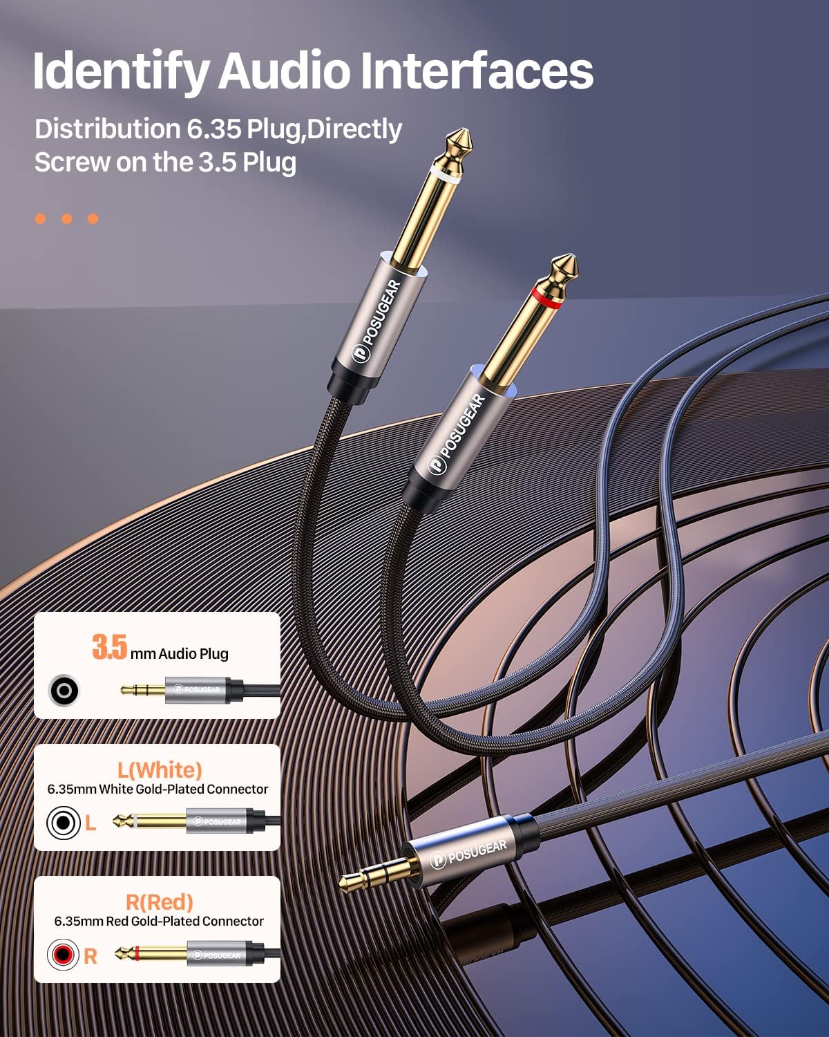 POSUGEAR 2m 3.5mm to 6.3mm Mono Audio Splitter, Nylon Braid Gold-Plated Cable for Mixer, Audio Recorder, Guitar, Amplifier