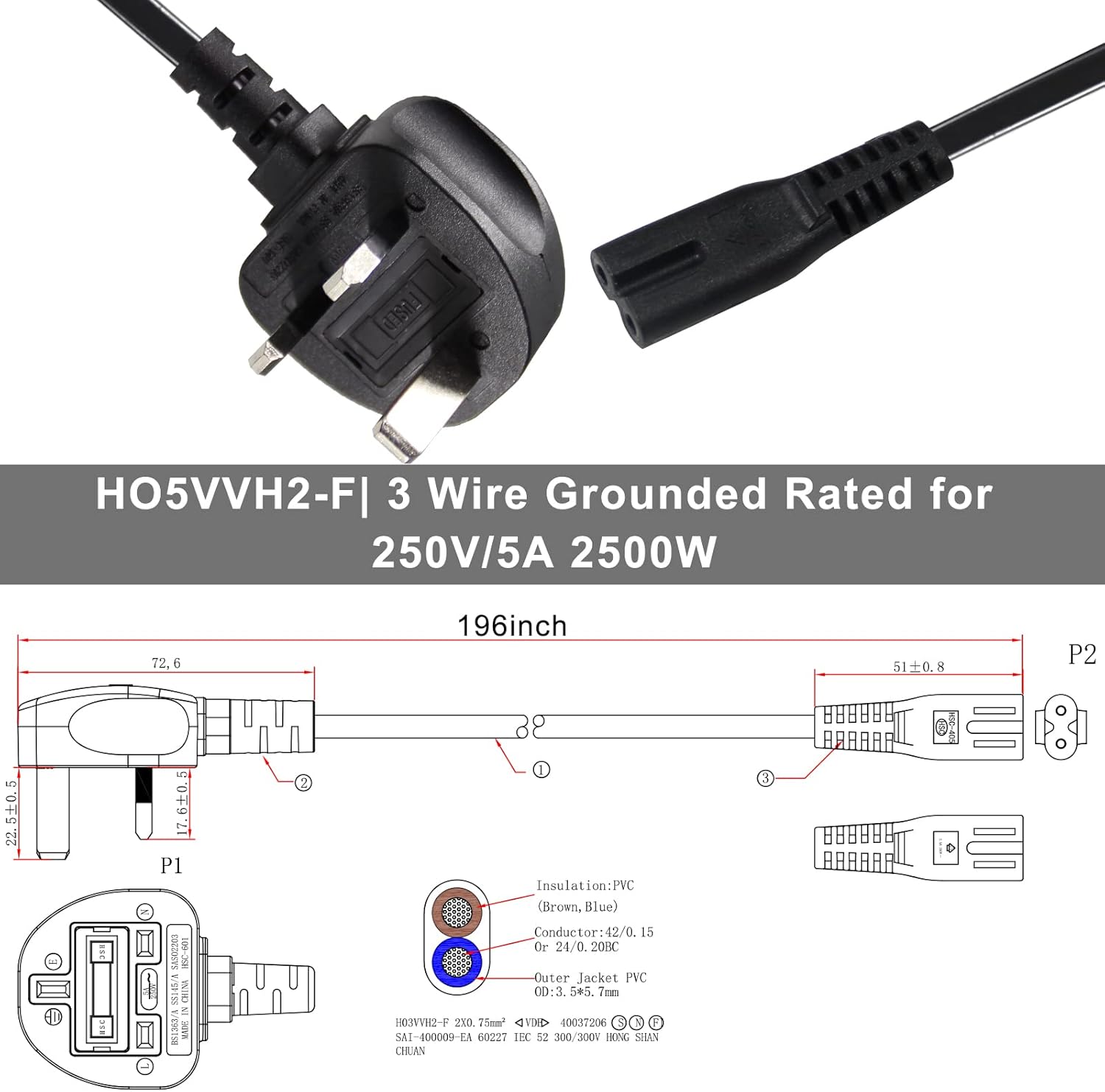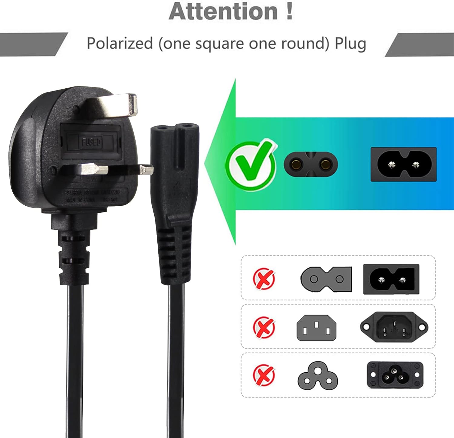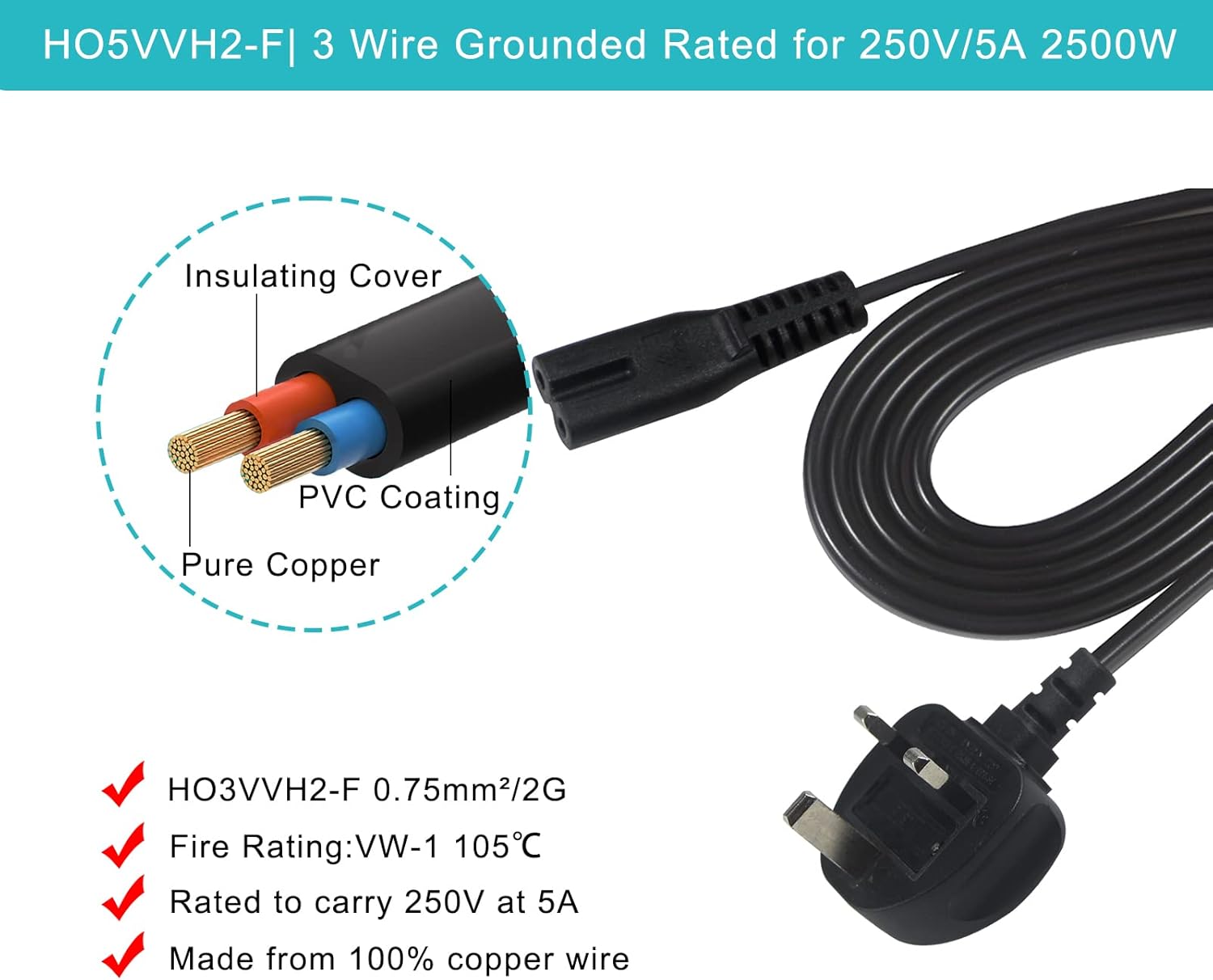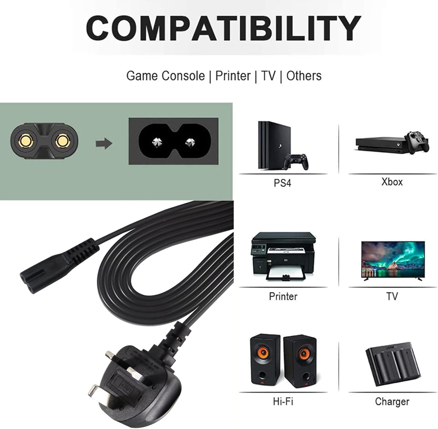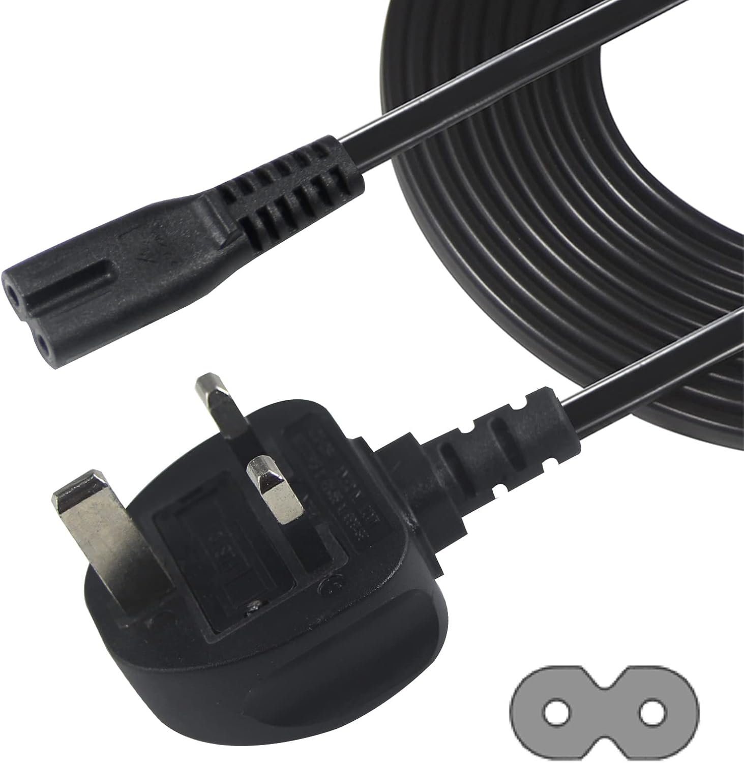 power 5M UK 3PIN Plug to IEC C7 Figure 8 Replacement Mains Cable Compatible with PS5, Xbox Series X, tv, Samsung, LG, Sony