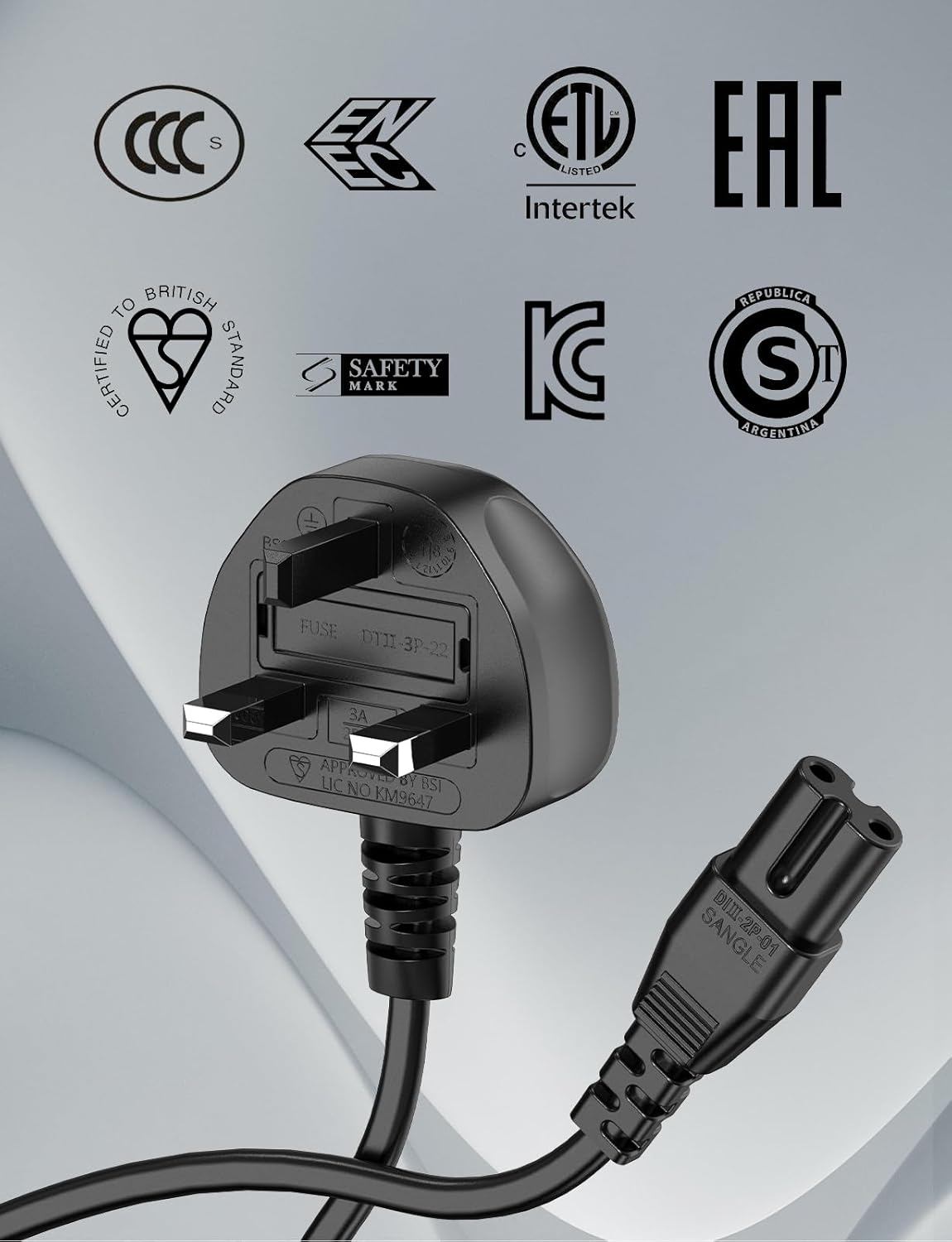 Power Cable Compatible with LG TV 2M Black, Ancable 2 Pin Figure 8 Power Lead Compatible with LG, Sumsang TV, PS4, PS5,Xbox etc.