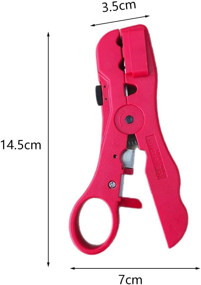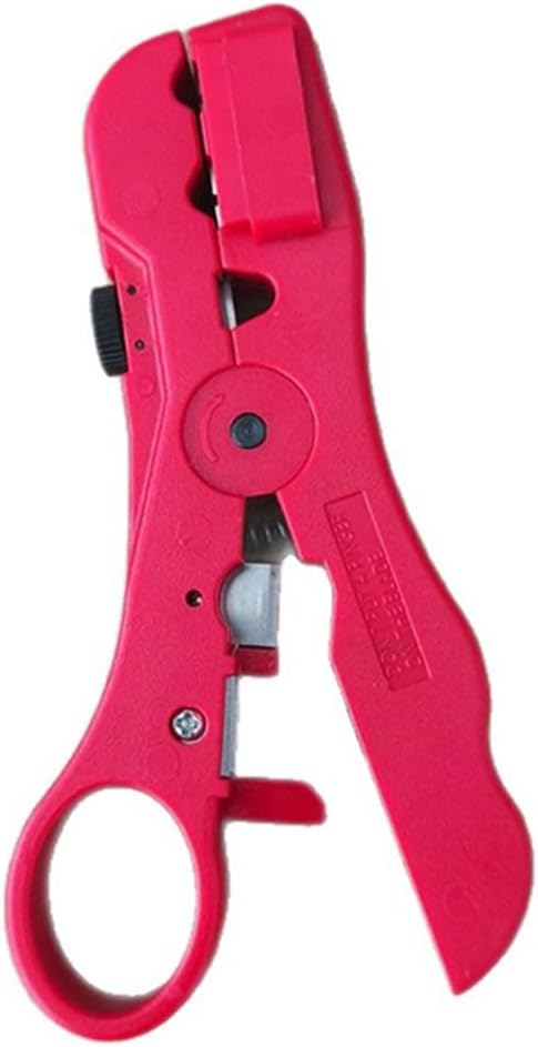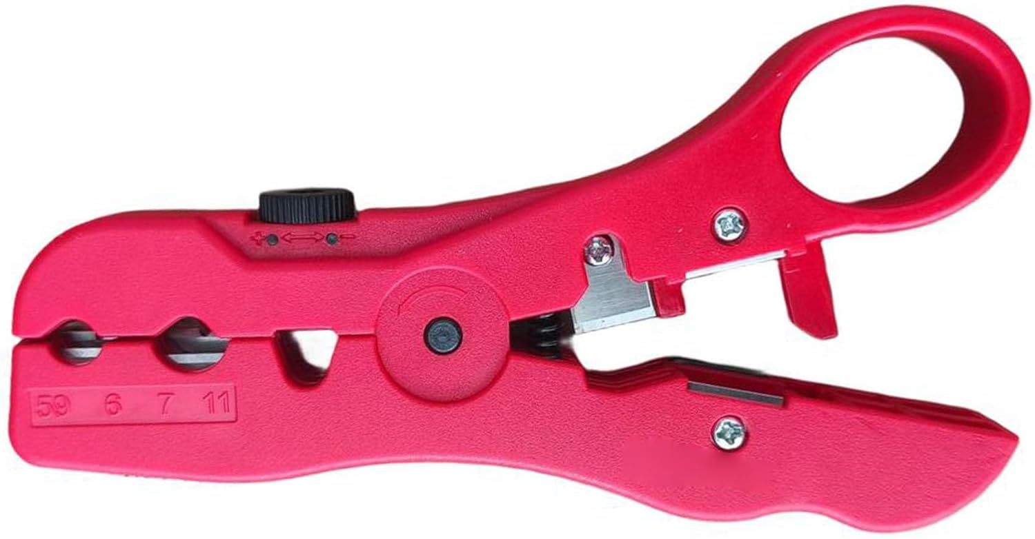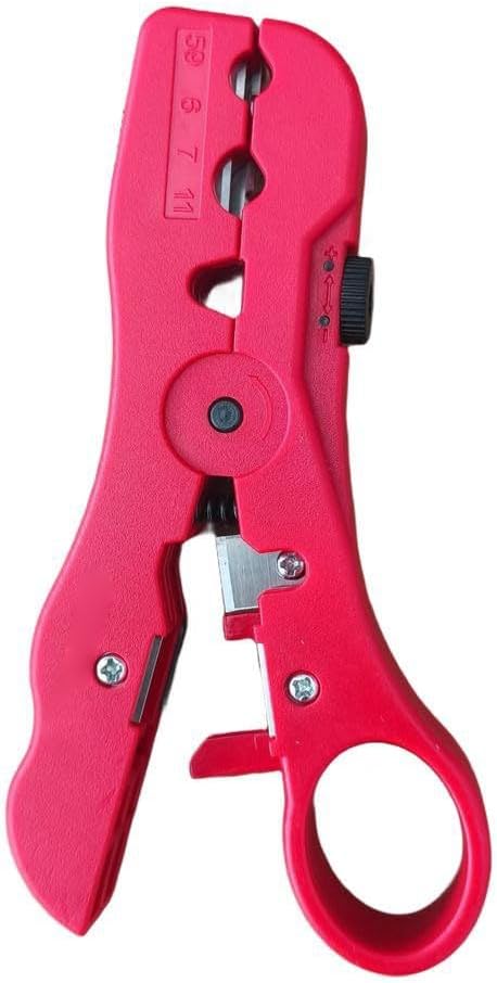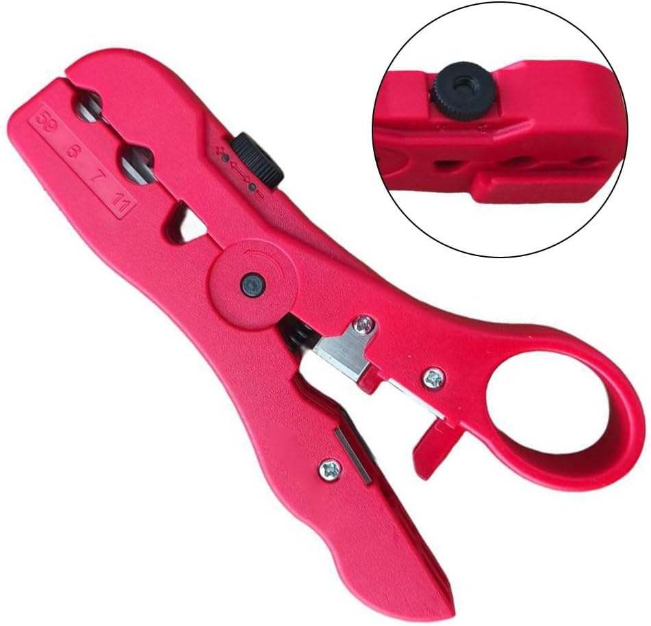 Precision Wire Stripper for RG6 RG7 RG11 RG59 Coaxial and Ribbon Cables 4P6P8P with Adjustable Knurled Nut and Dual Blade System for Cable Cutting and Stripping (red)