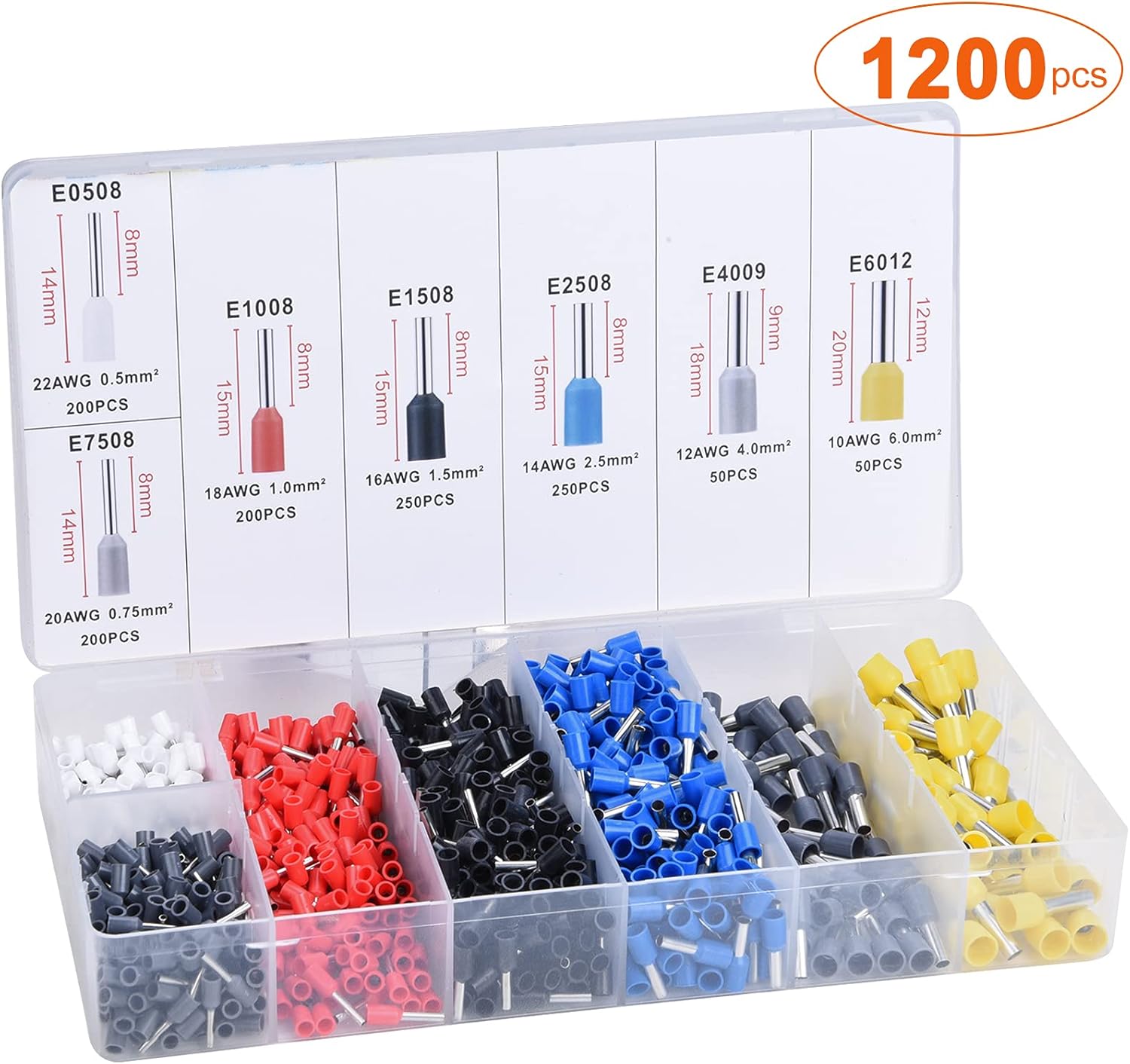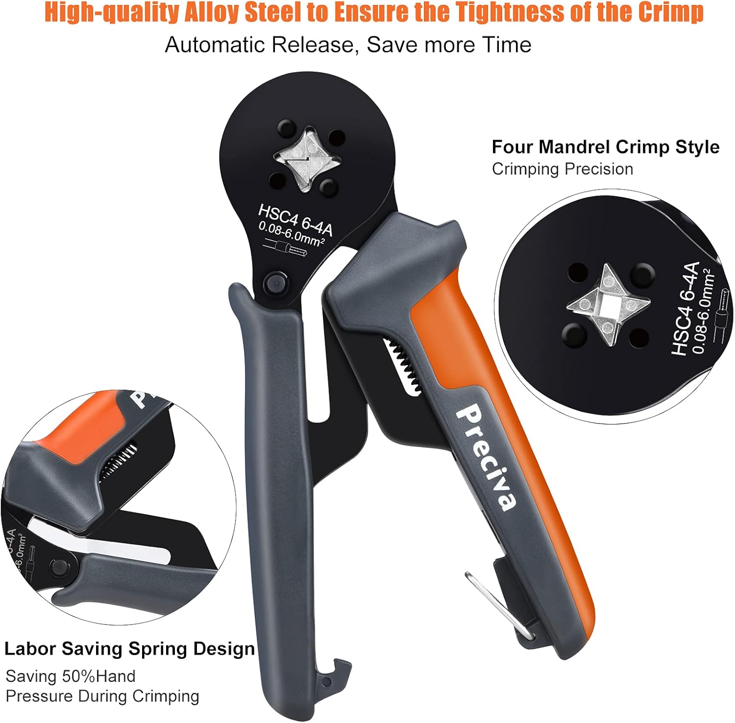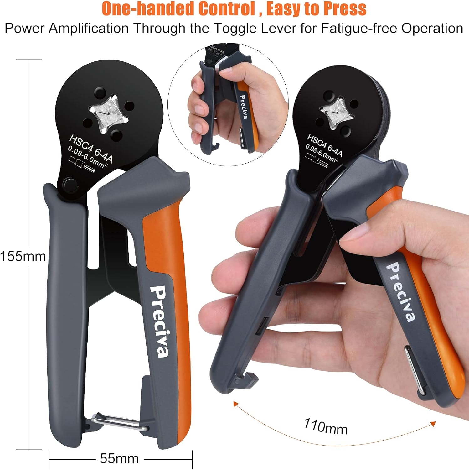 Preciva Ferrule Crimper Plier Kit, AWG28-10/0.08-6mm² Ferrule Crimping Toolkit, Wire Crimp Tool with 1200 Terminal Connectors and End Ferrules(1200Pcs)