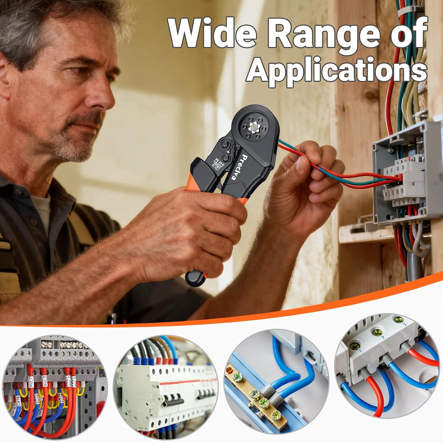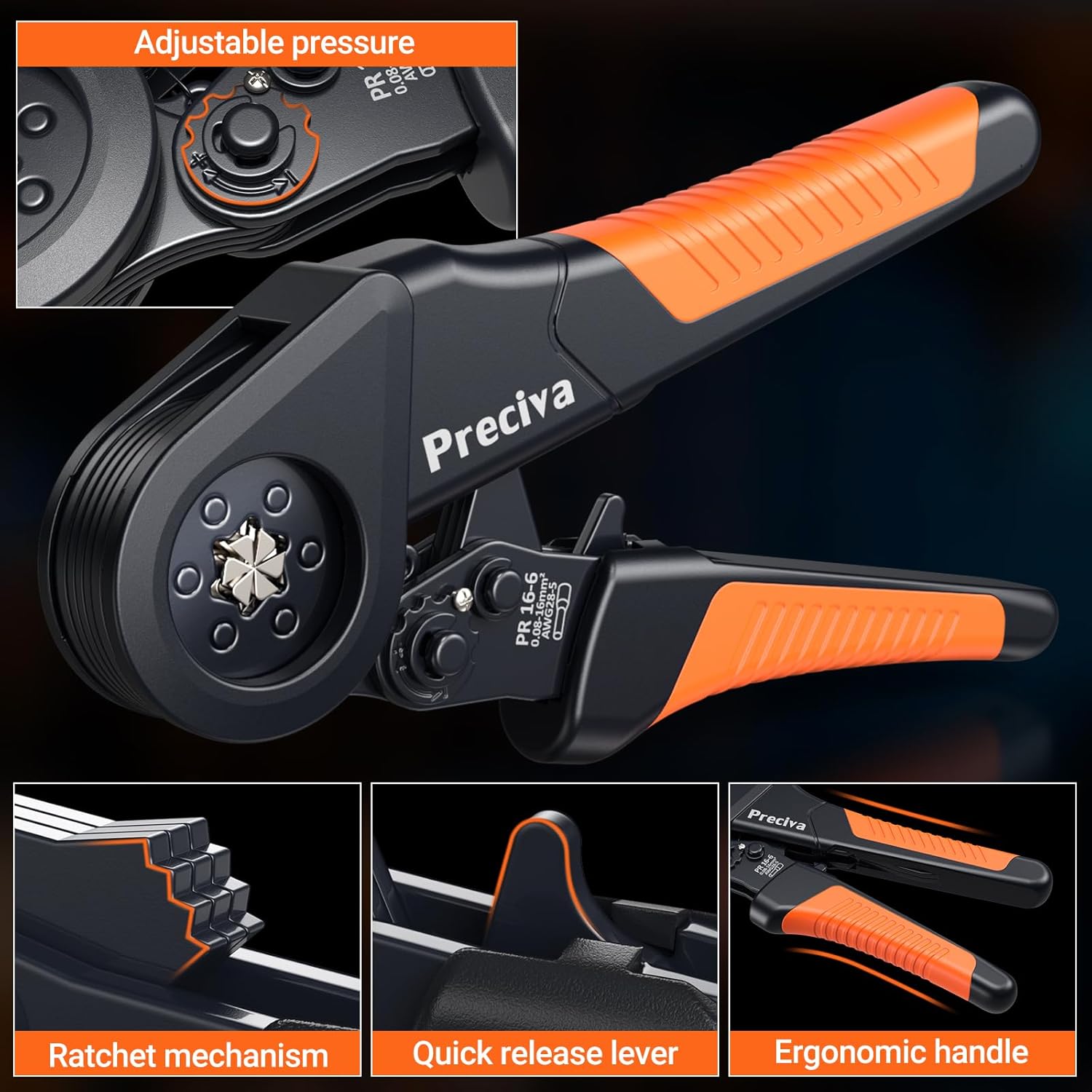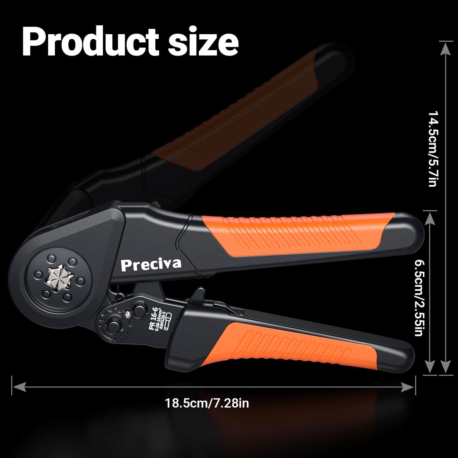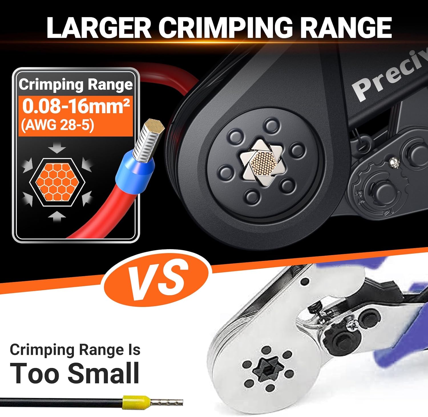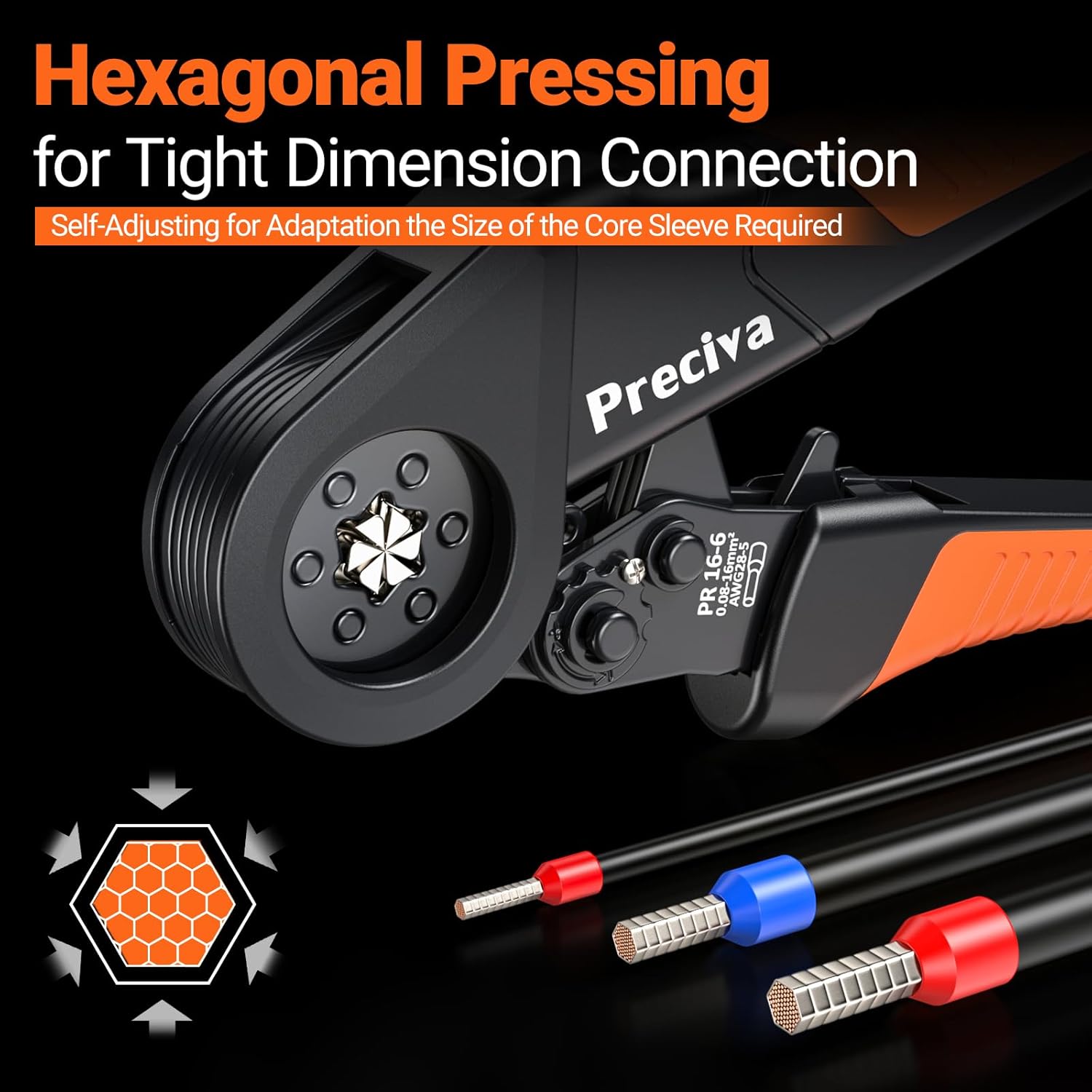 Preciva Hexagonal Ferrules Crimping Tool, 0.08-16mm²/AWG28-5 Wire Crimps Tools, Self-Adjustable Ratchet Crimper Pliers for Household Electrical and Vehicle Repairs