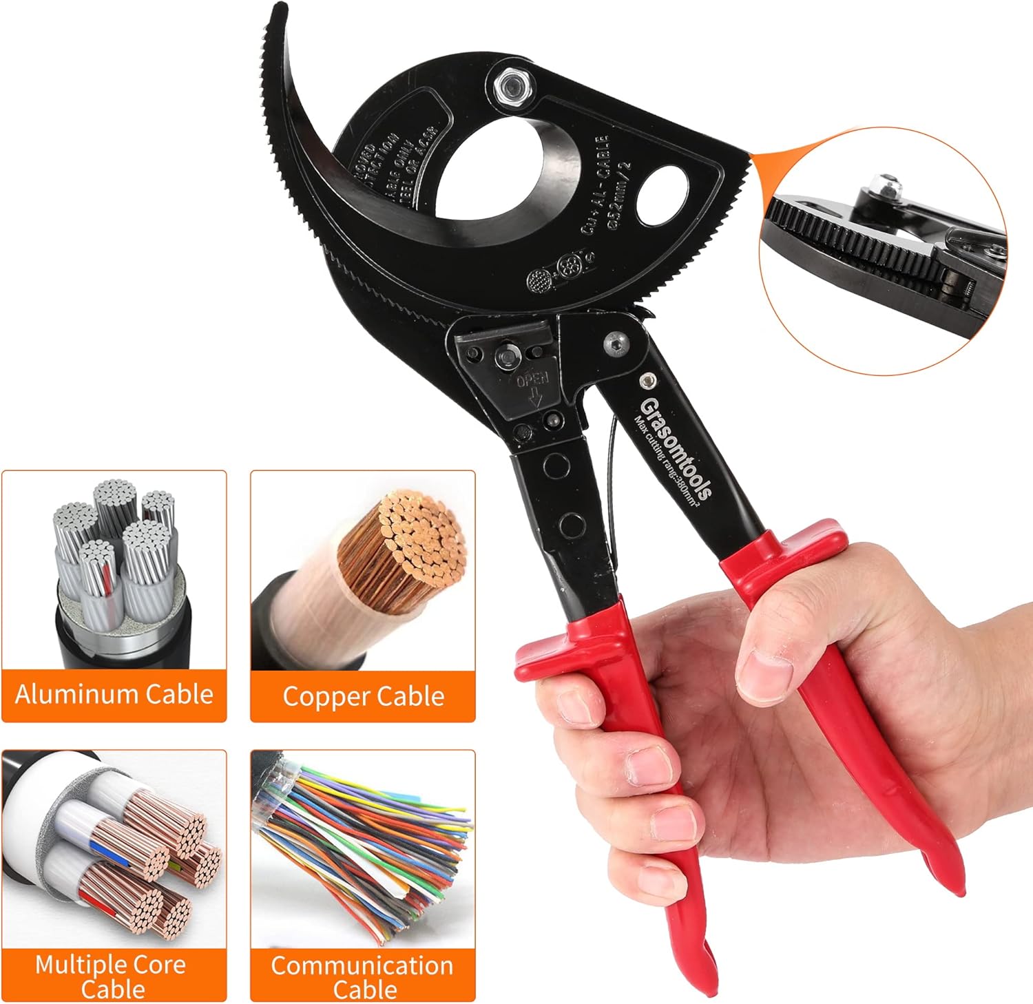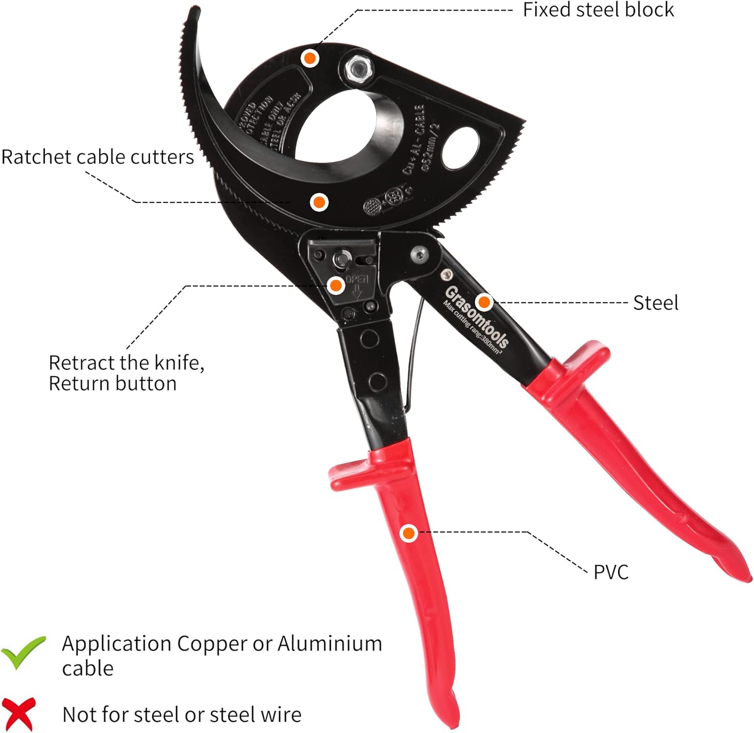 Ratchet Cable Cutter,Ratcheting Cutter and Wire Cable Cutter Cut up to400 mm², HS520A Heavy Duty Aluminum and Copper Ratchet Cable Cutter,