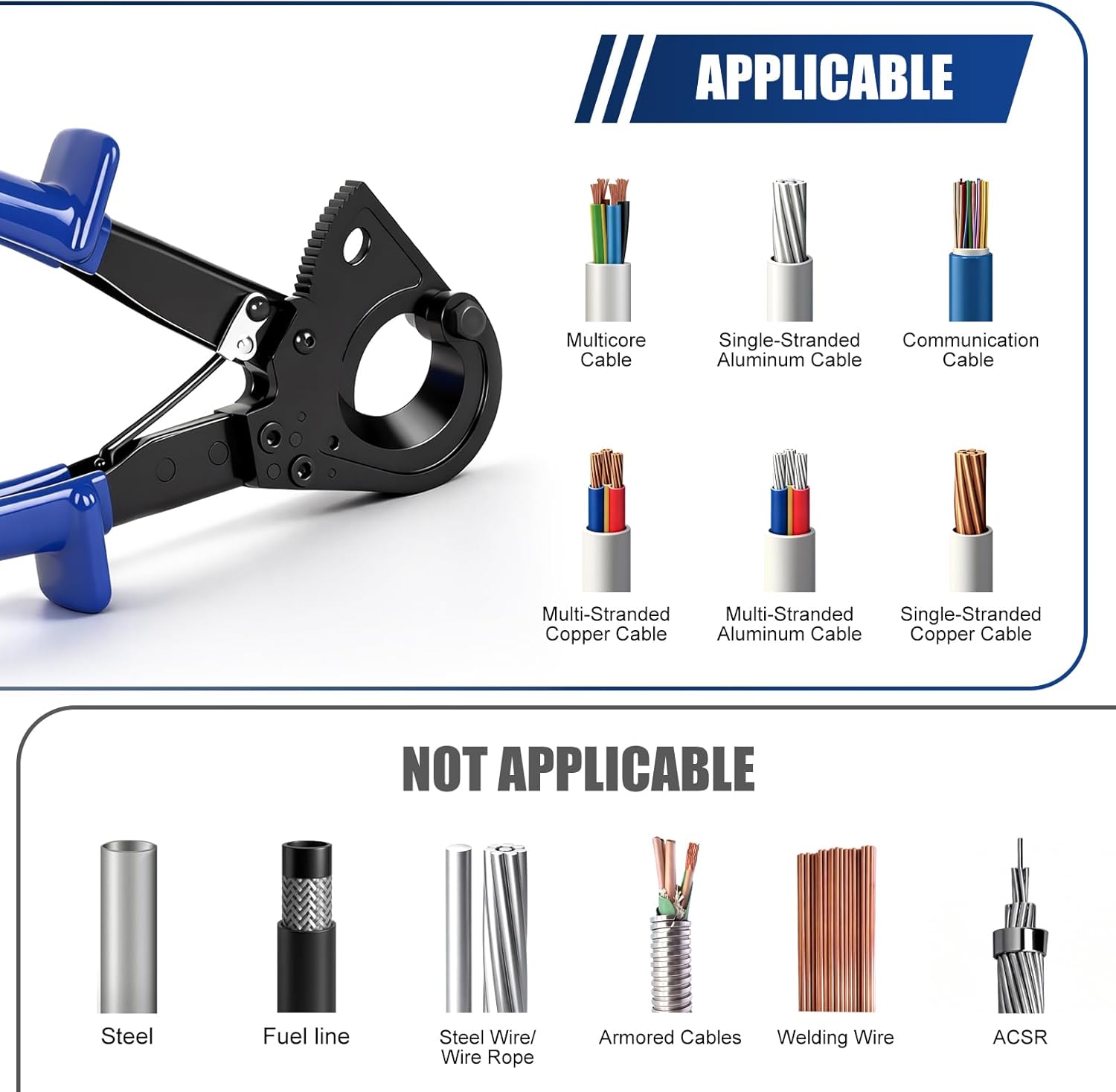 - Versatile for cutting both aluminum and copper cables.