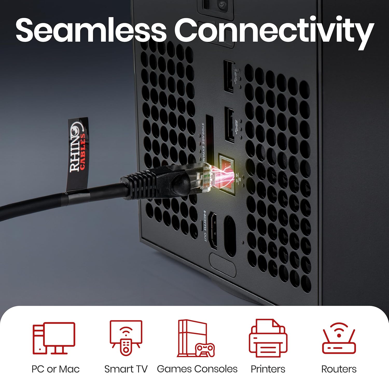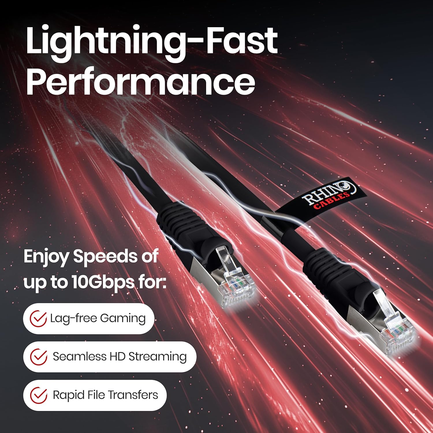 rhinocables CAT 6a Ethernet Cable | 10Gbps S/FT High-Speed & Large Bandwidth Data Transfer | Reliable LAN Network RJ45 Cable | Wi-Fi Broadband Cable for Seamless Gaming & Streaming (5m, Black)