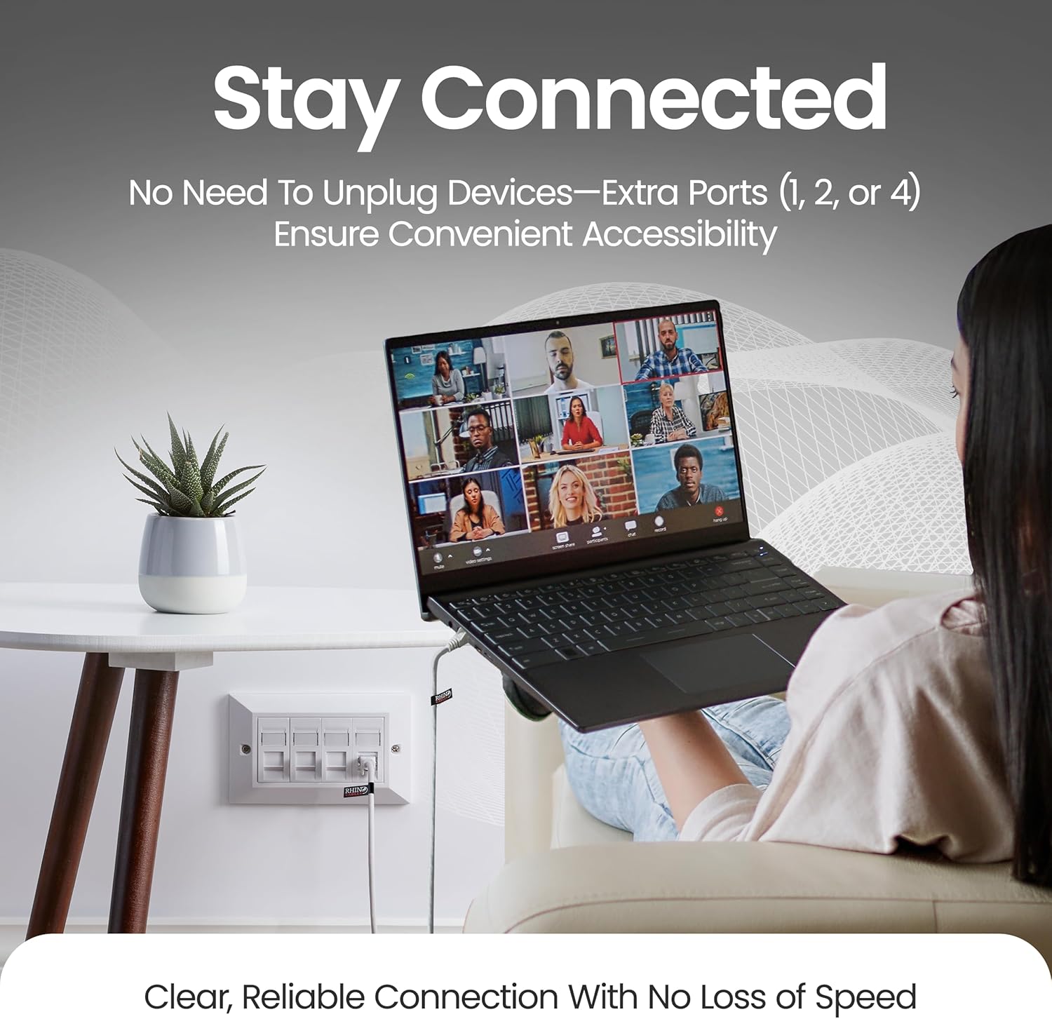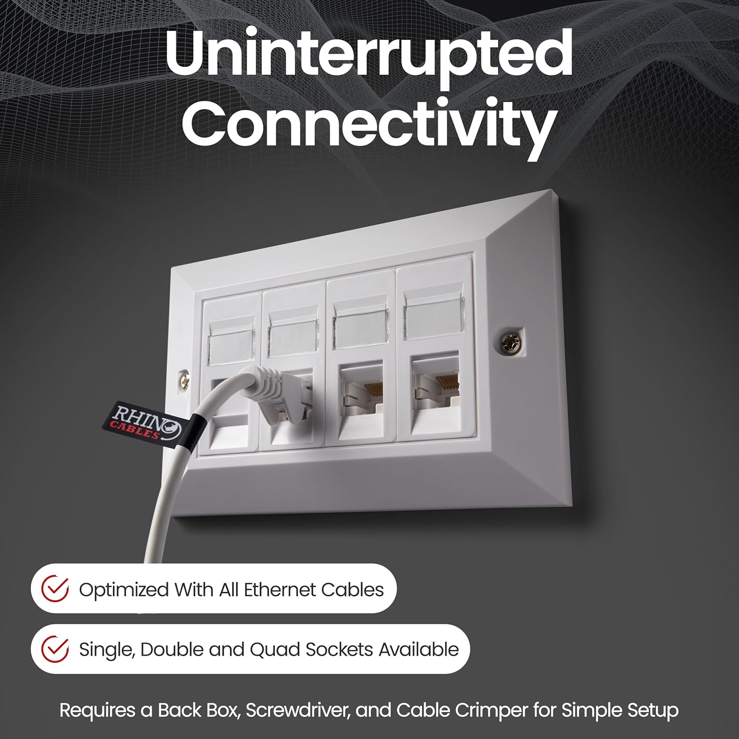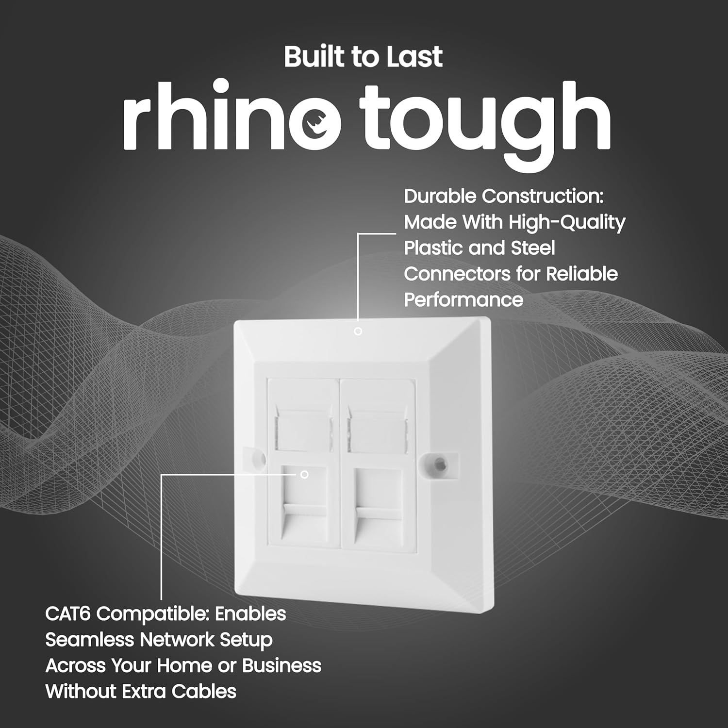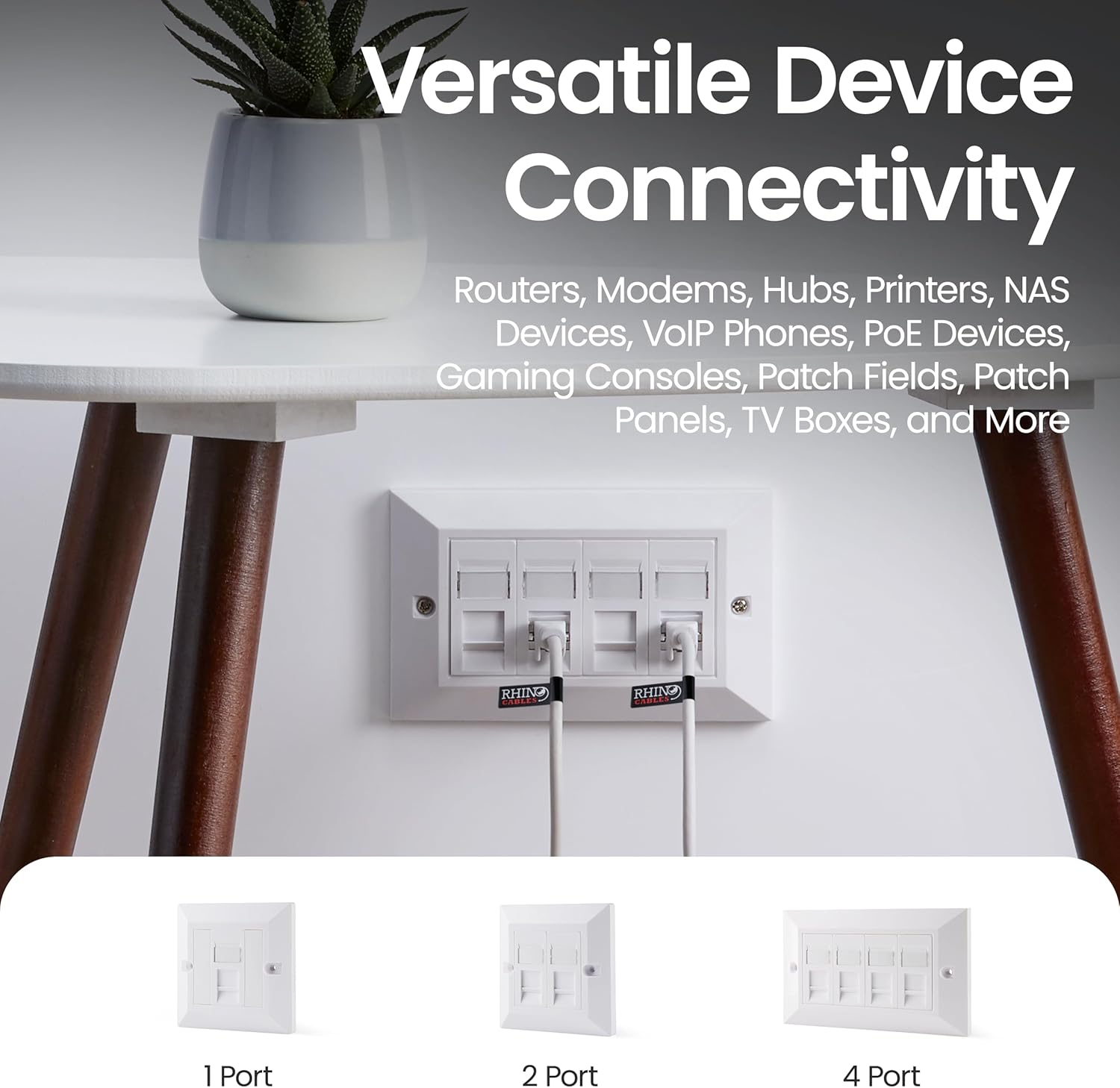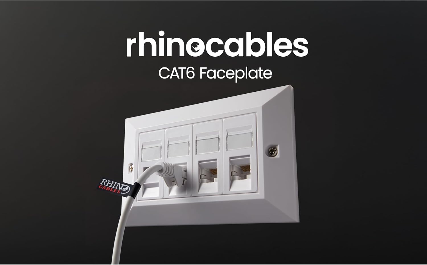 rhinocables CAT6 Ethernet Faceplate | Single 1, Double 2 & Quad 4 RJ45 Gang Wall Sockets | CAT 6 Setup for Printers, VoIP, Phones & More | Network Expansion for Home or Business (4 Port,Pack of 1)